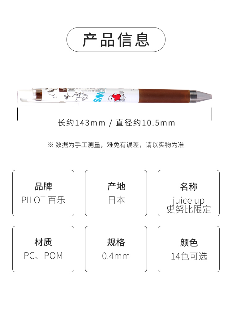 日本进口Pilot百乐太阳星sun-star juice up史努比联名限定彩色果汁笔中性笔水性笔0.4mm 金属色系牛奶色系3色套装