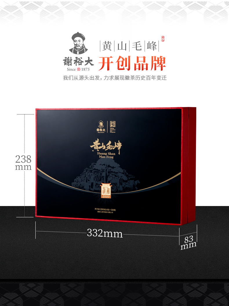 - 中华老字号谢裕大茶行,始创于清光绪元年。其创办者谢正安一生业茶,创制了名动天下的黄山毛峰。谢氏后人恪守祖业,传承发扬茶叶技艺将安徽名茶悉数纳入产品系列。潜心制茶,敬奉香茗。