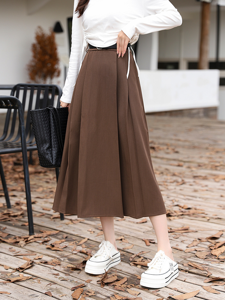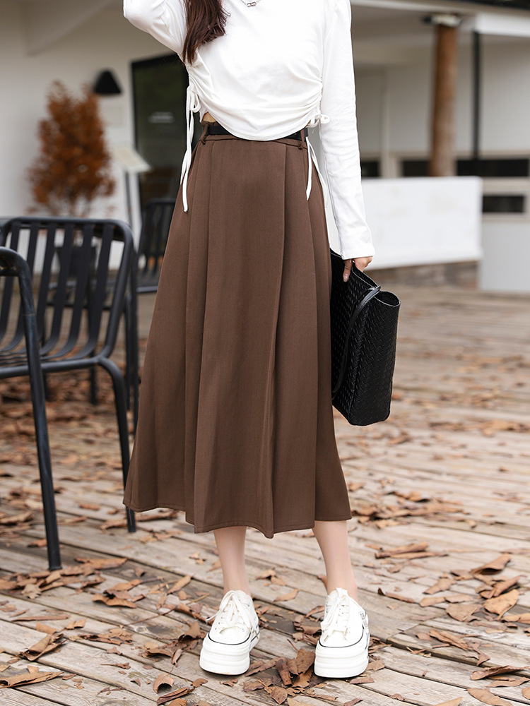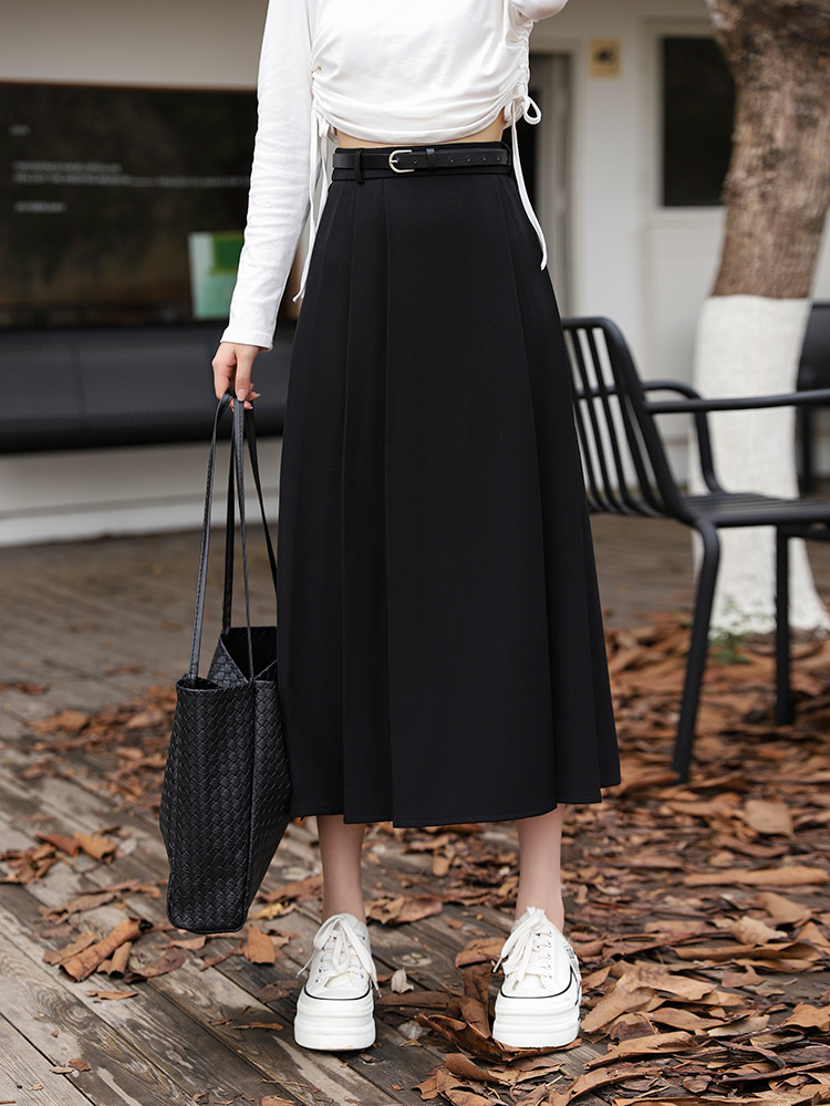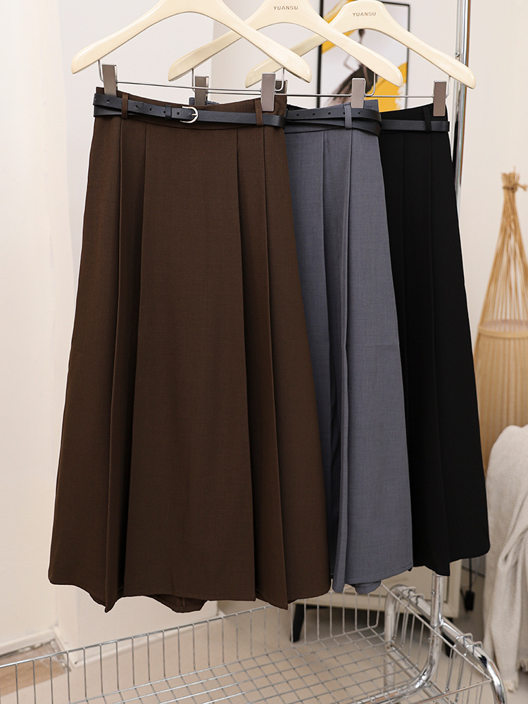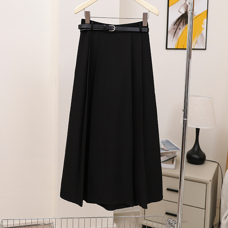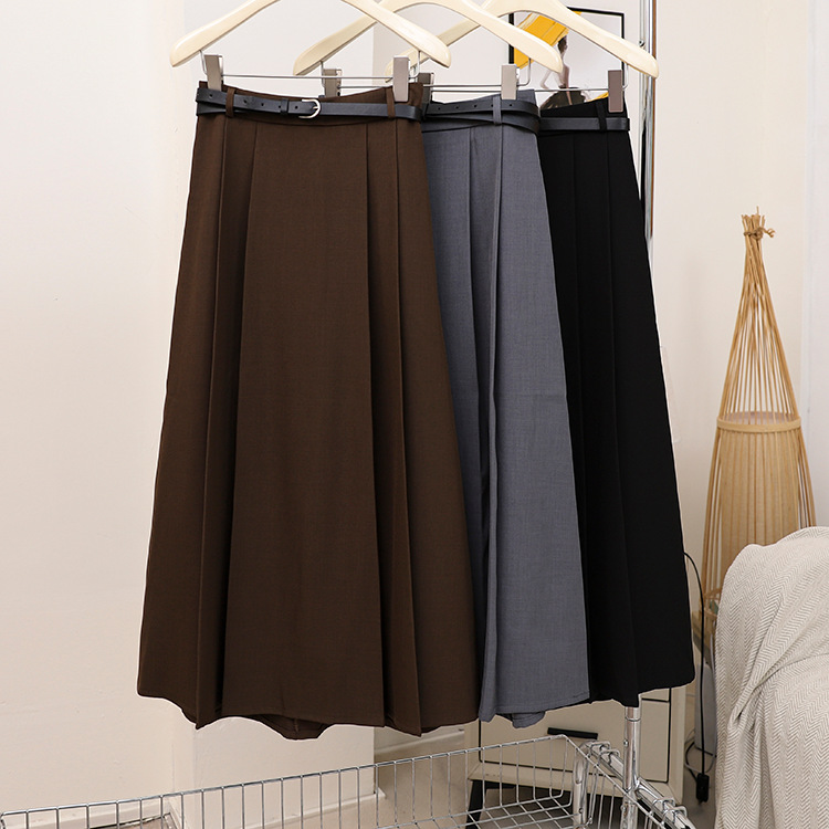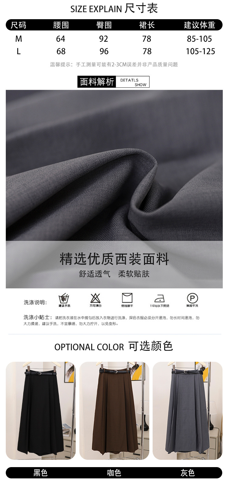 秋冬【遮跨显瘦百褶裙】 西装料半身裙配皮带 中长款A字裙 百搭单品