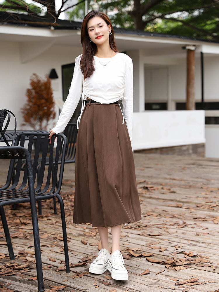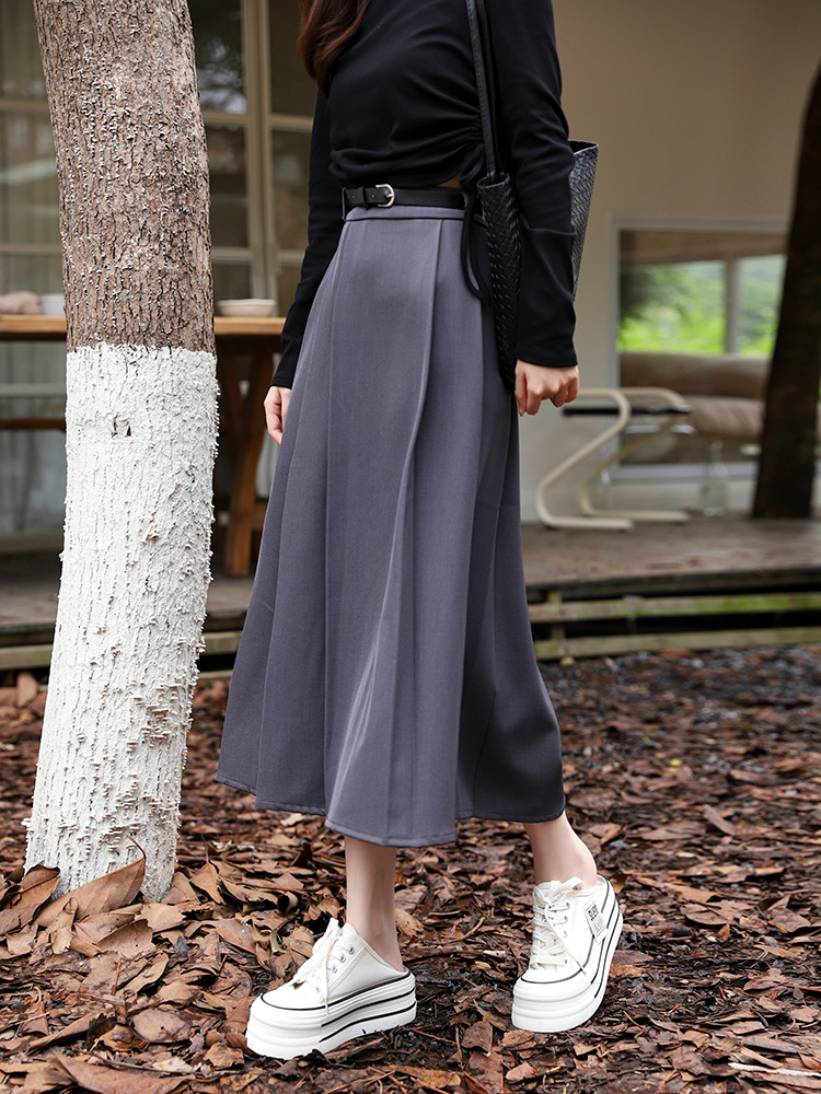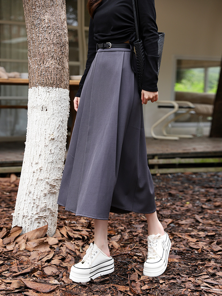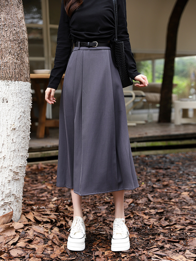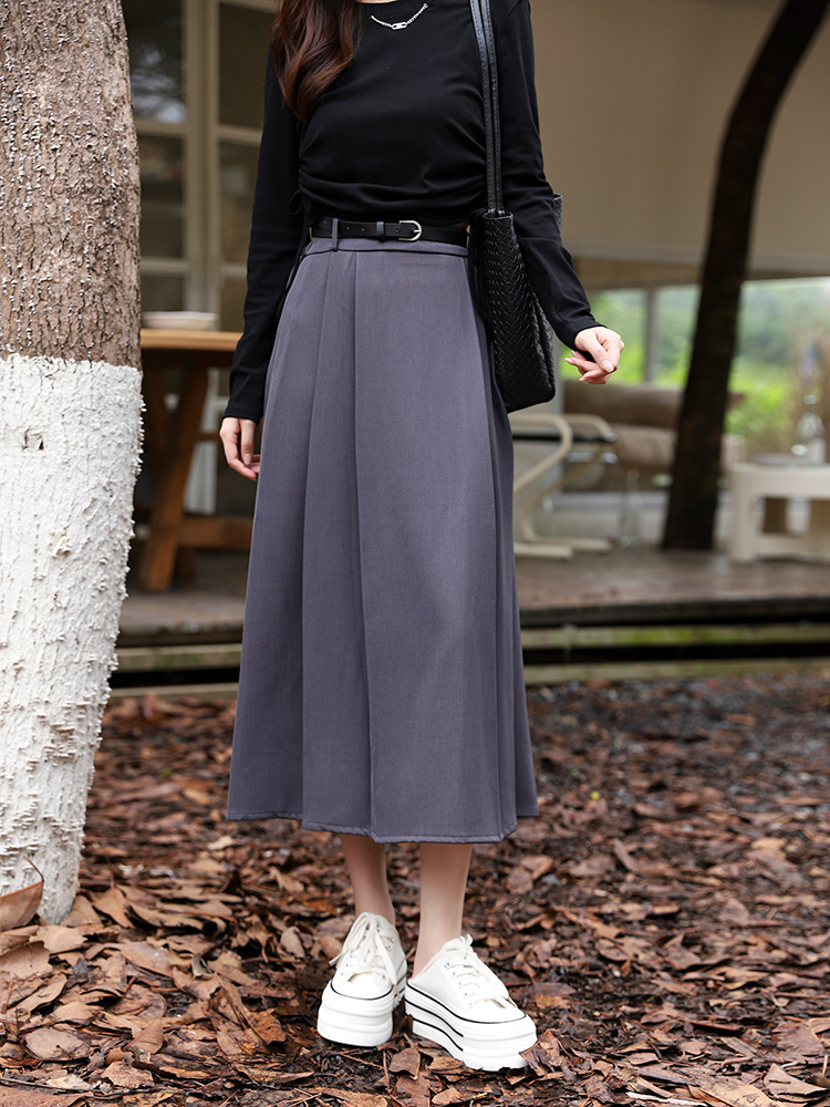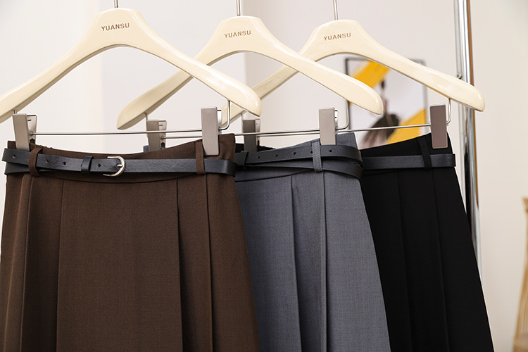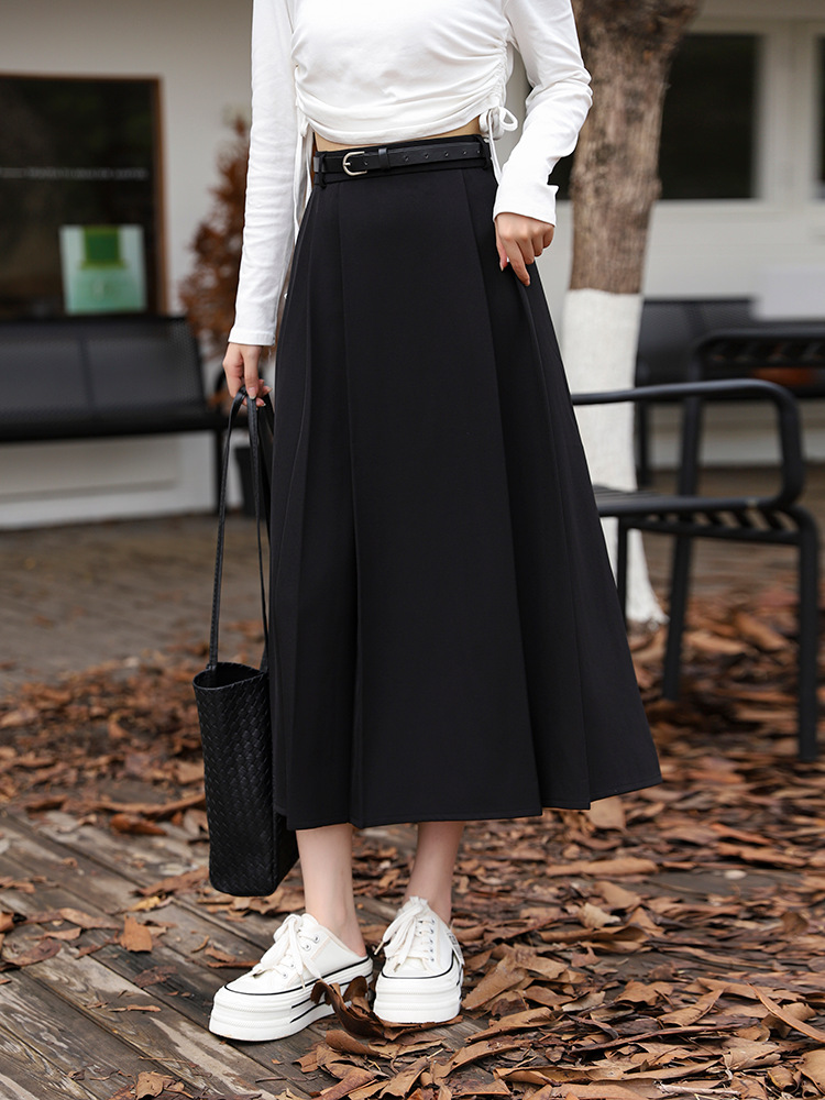 秋冬【遮跨显瘦百褶裙】 西装料半身裙配皮带 中长款A字裙 百搭单品