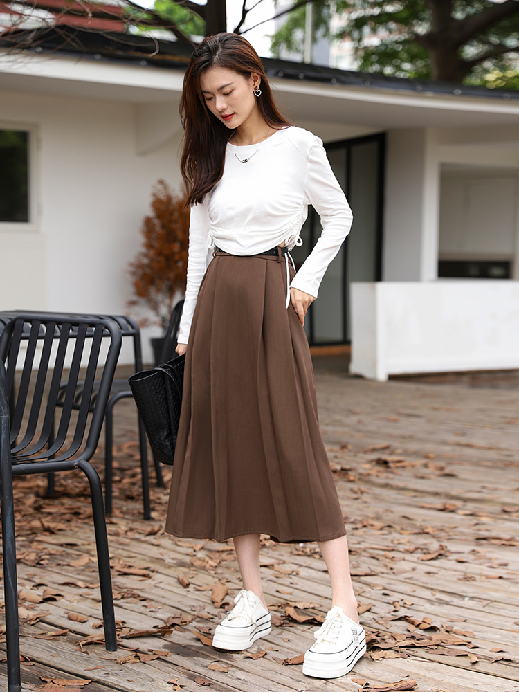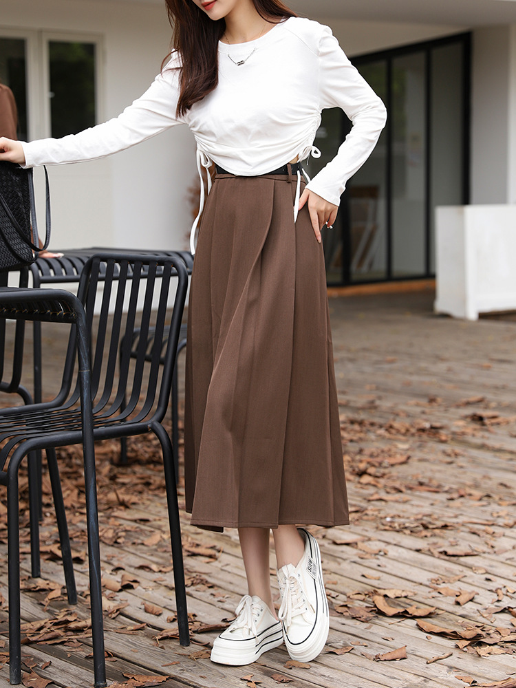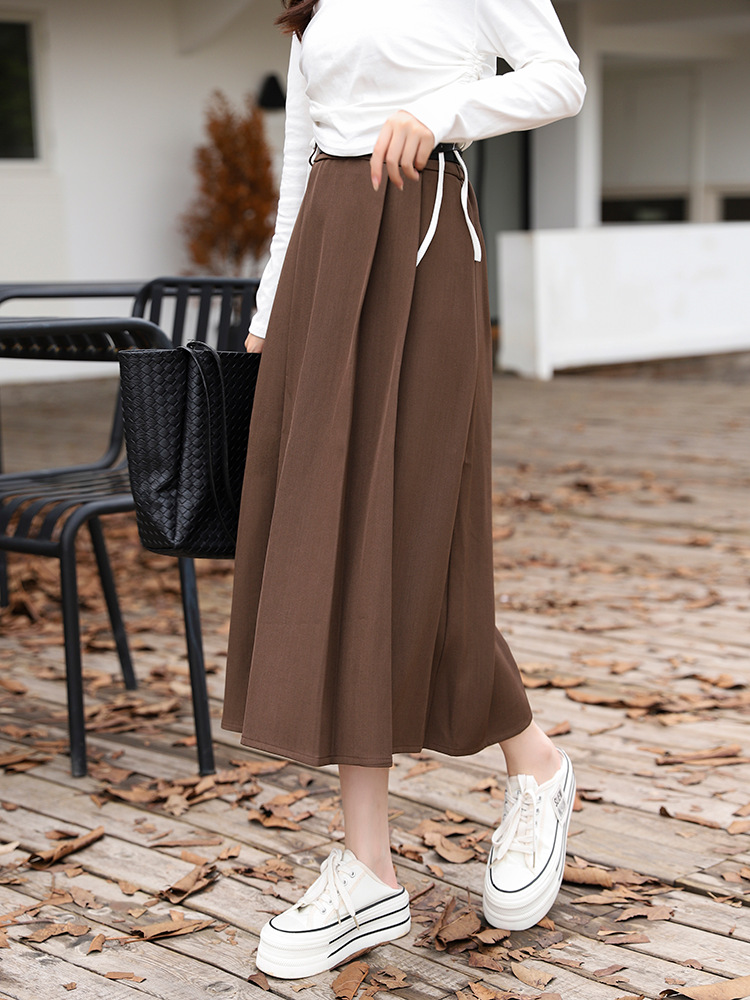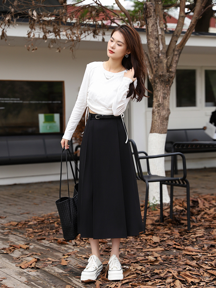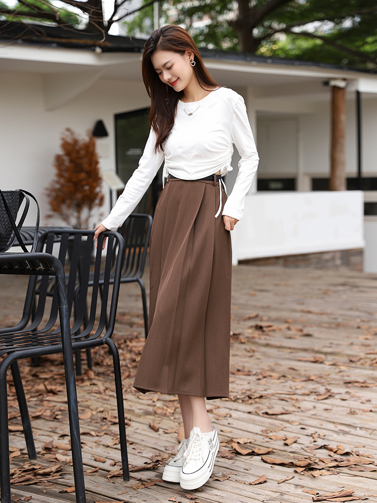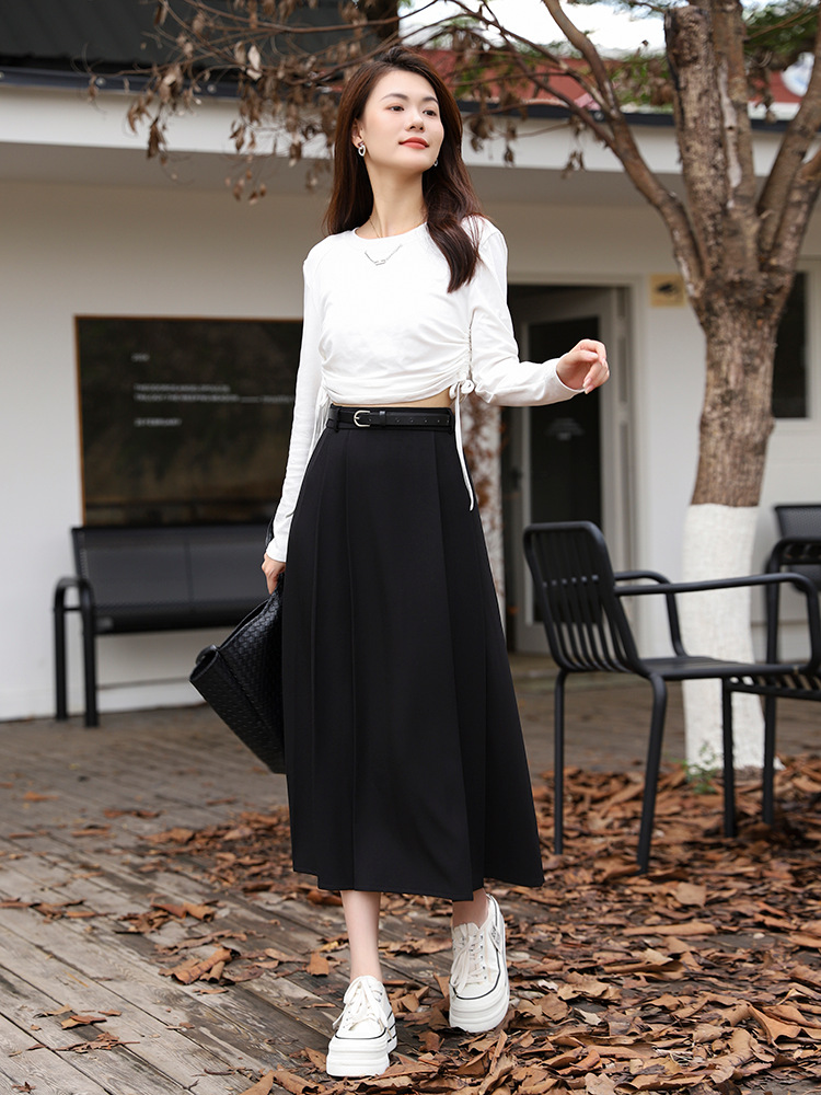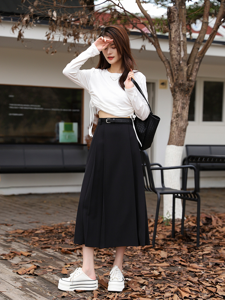 秋冬【遮跨显瘦百褶裙】 西装料半身裙配皮带 中长款A字裙 百搭单品