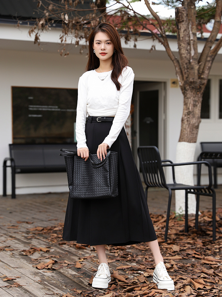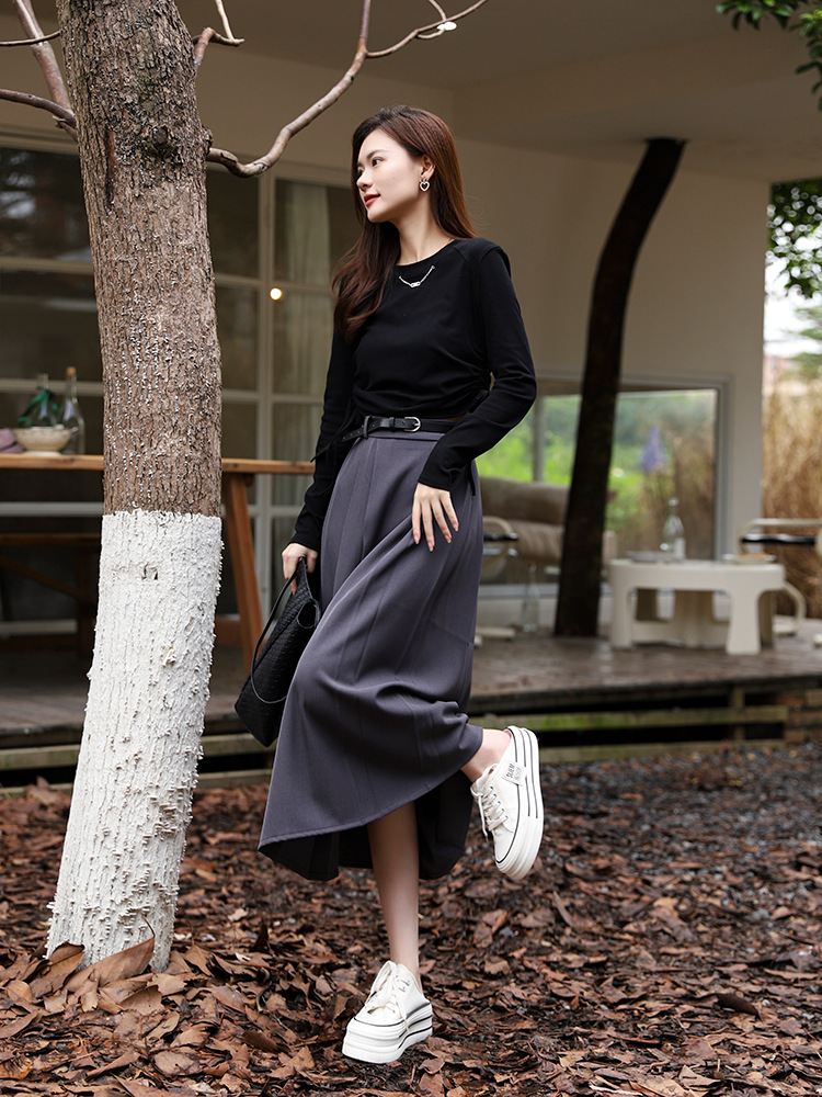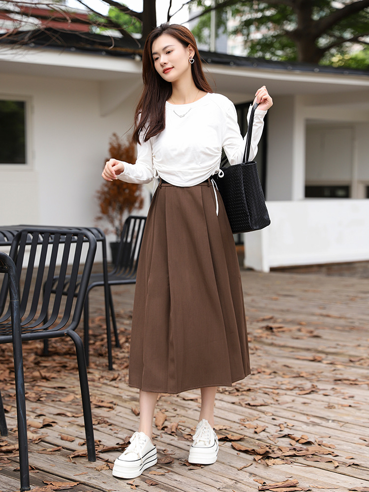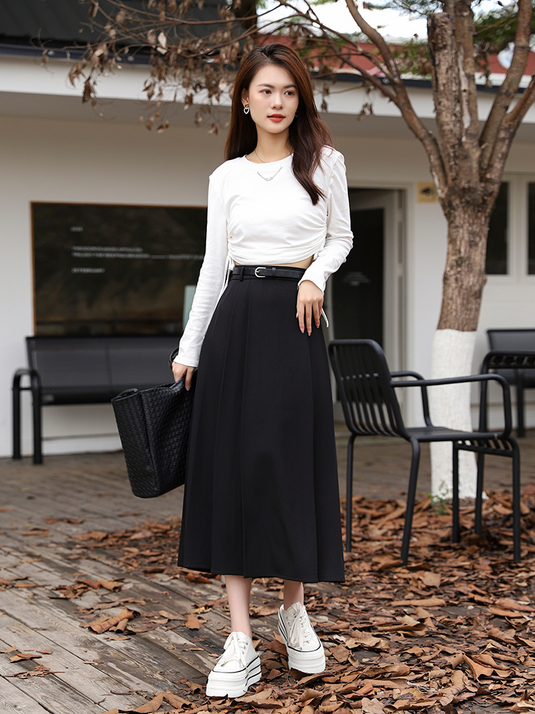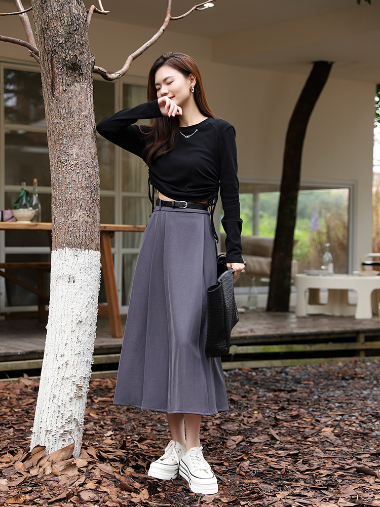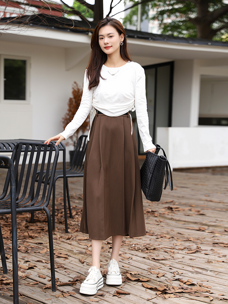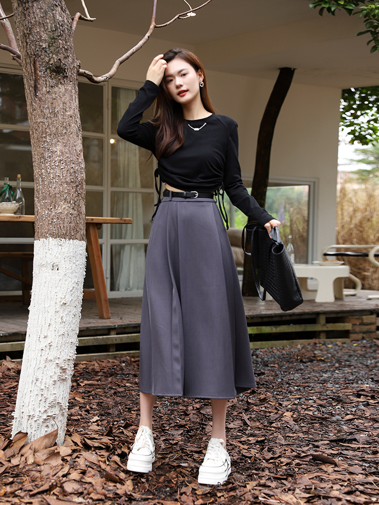 秋冬【遮跨显瘦百褶裙】 西装料半身裙配皮带 中长款A字裙 百搭单品