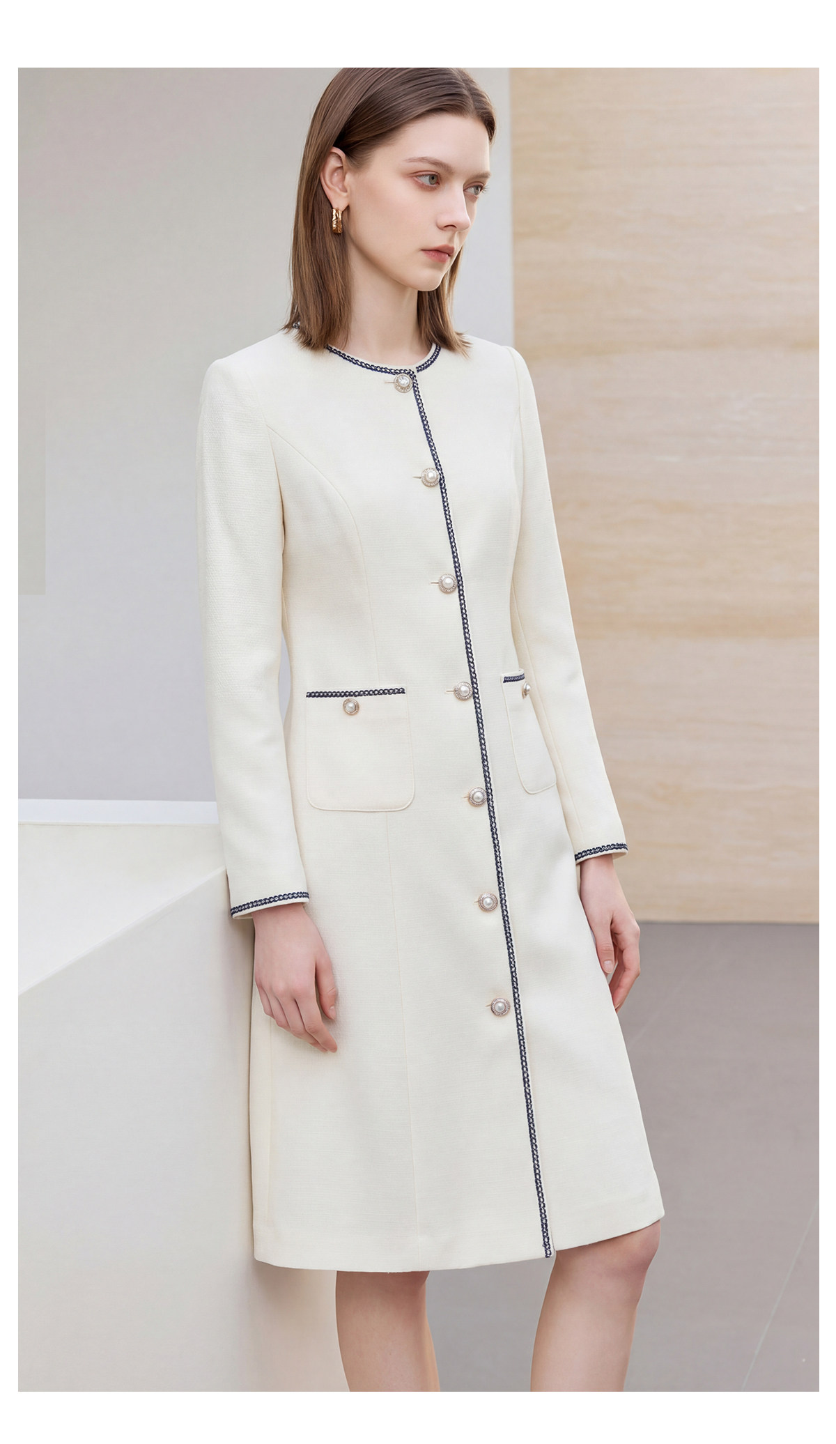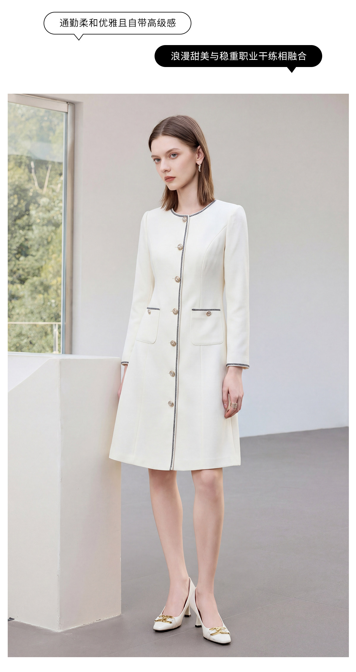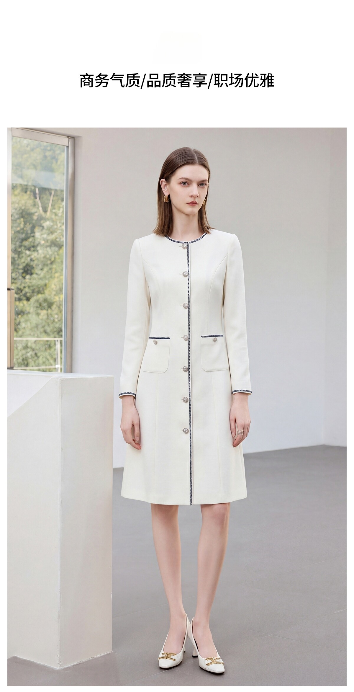 IWY/春季新款米白色西装连衣裙女气质时尚珠宝设计师正装裙Q1306