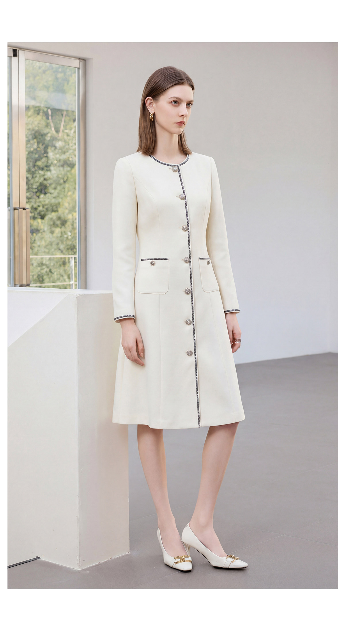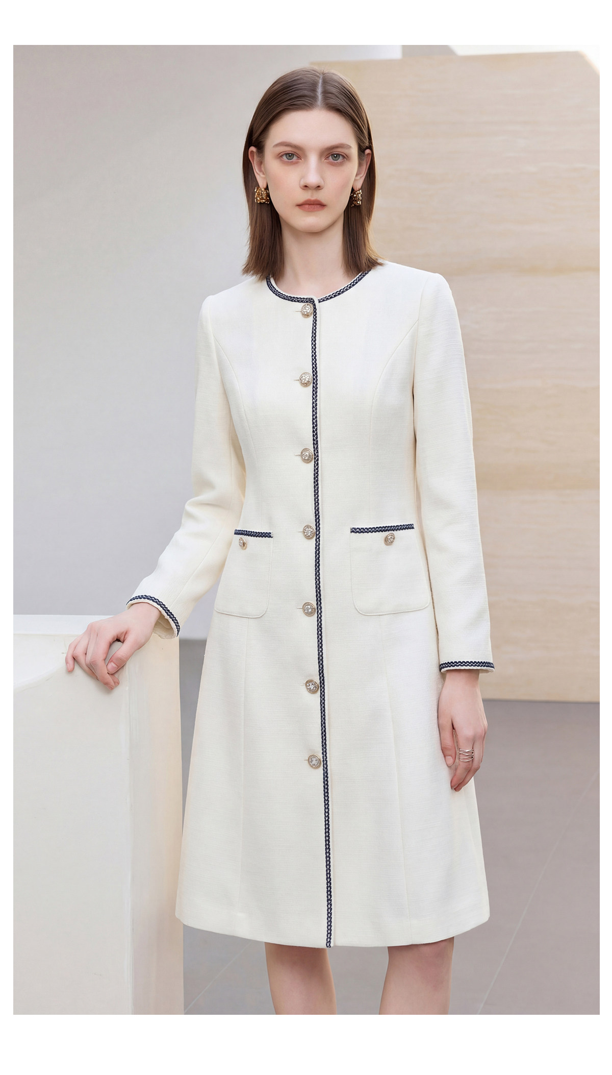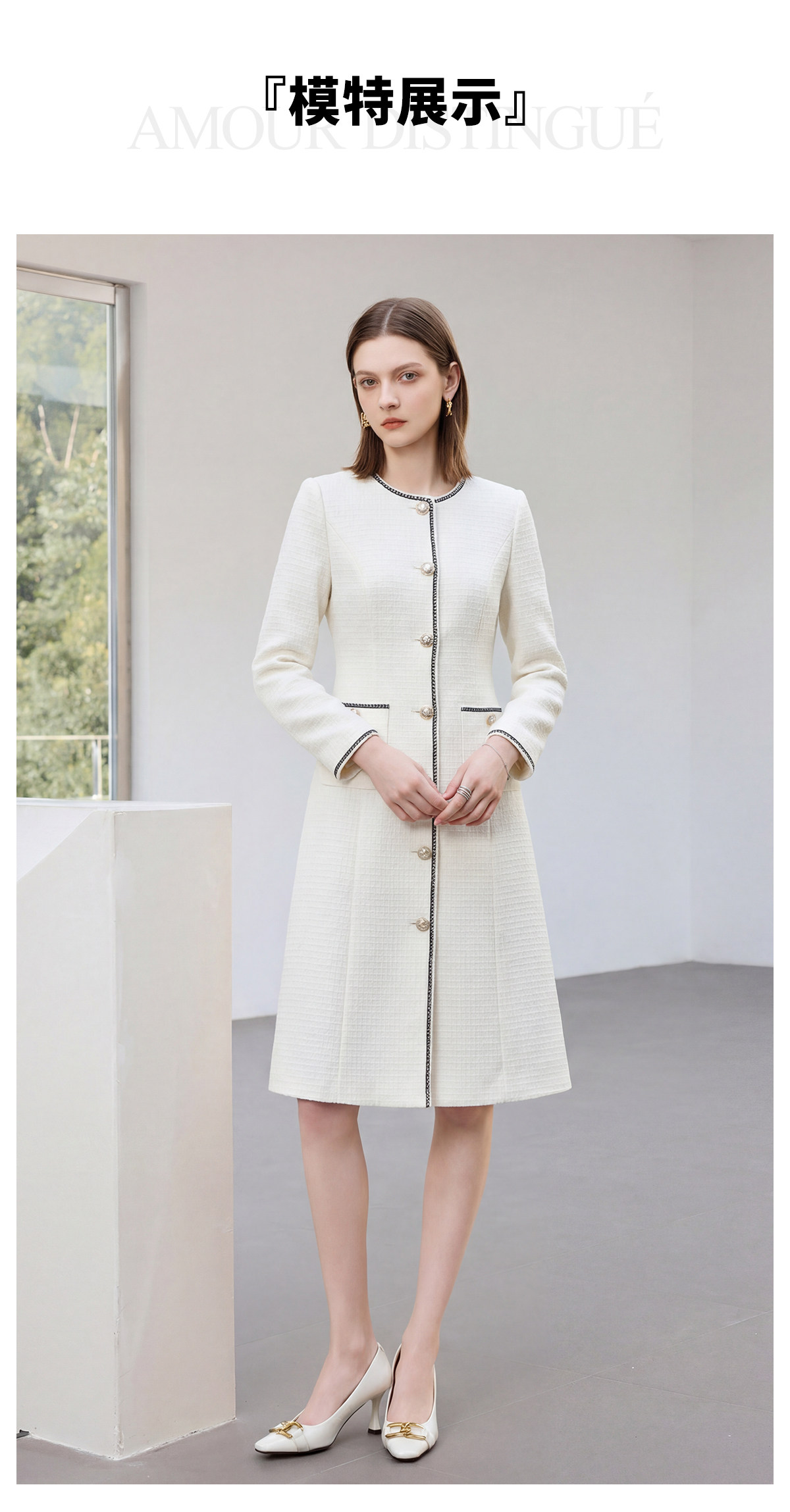 IWY/春季新款米白色西装连衣裙女气质时尚珠宝设计师正装裙Q1306