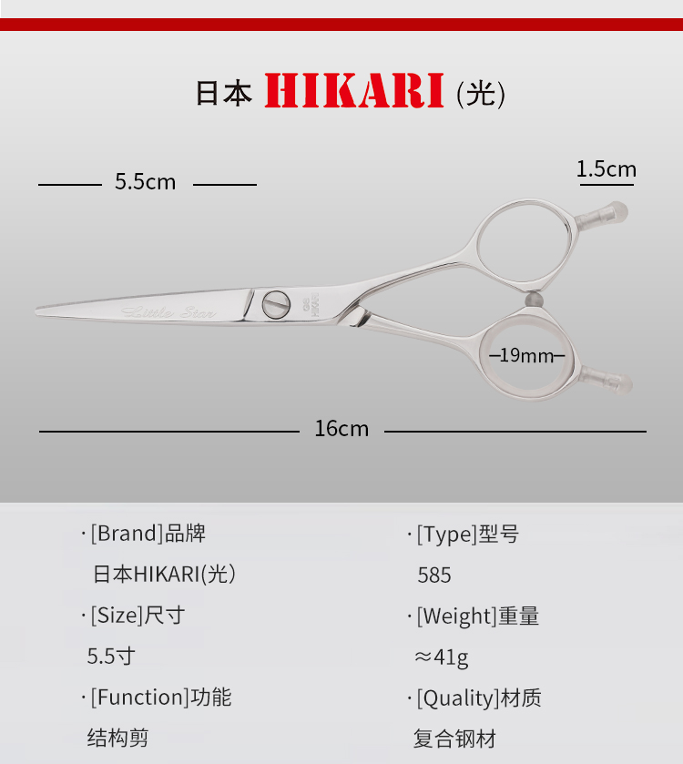 HIKARI光剪Little star 585 剪刀 锋利/A字剪/刘海/结构剪/线条剪/不跑发/平剪/5.5寸