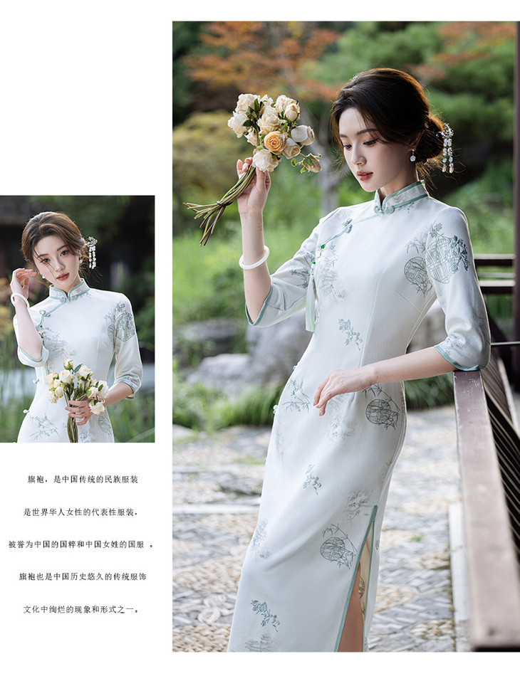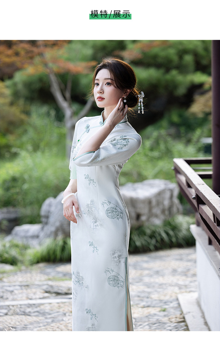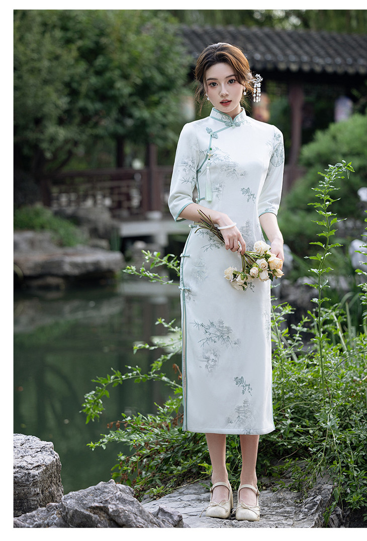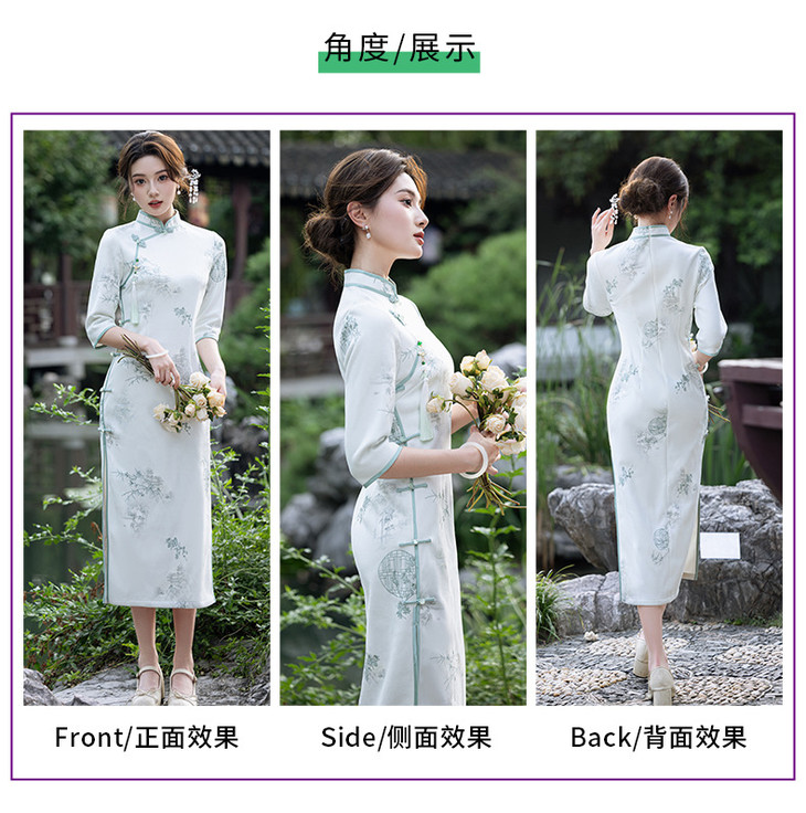 2024秋冬新款七分袖长款显瘦气质重工麂皮绒绣花旗袍MLS6973 商品图4