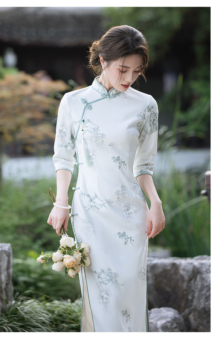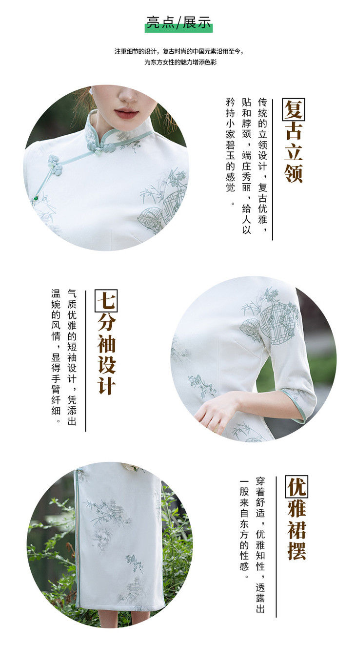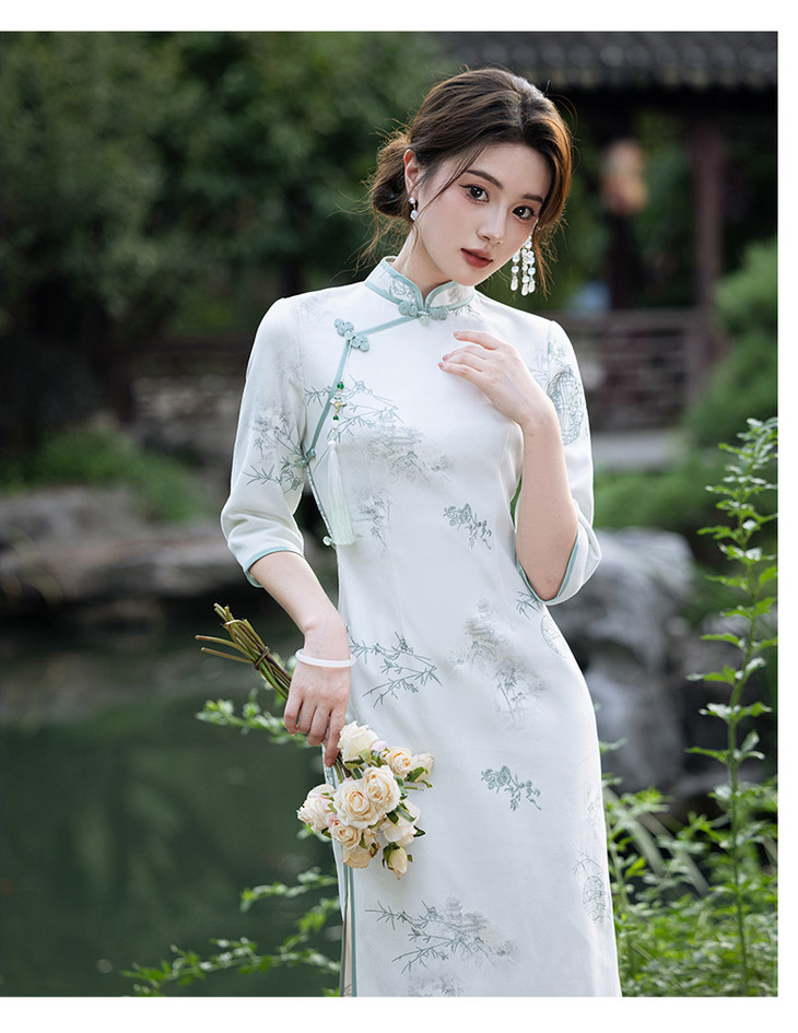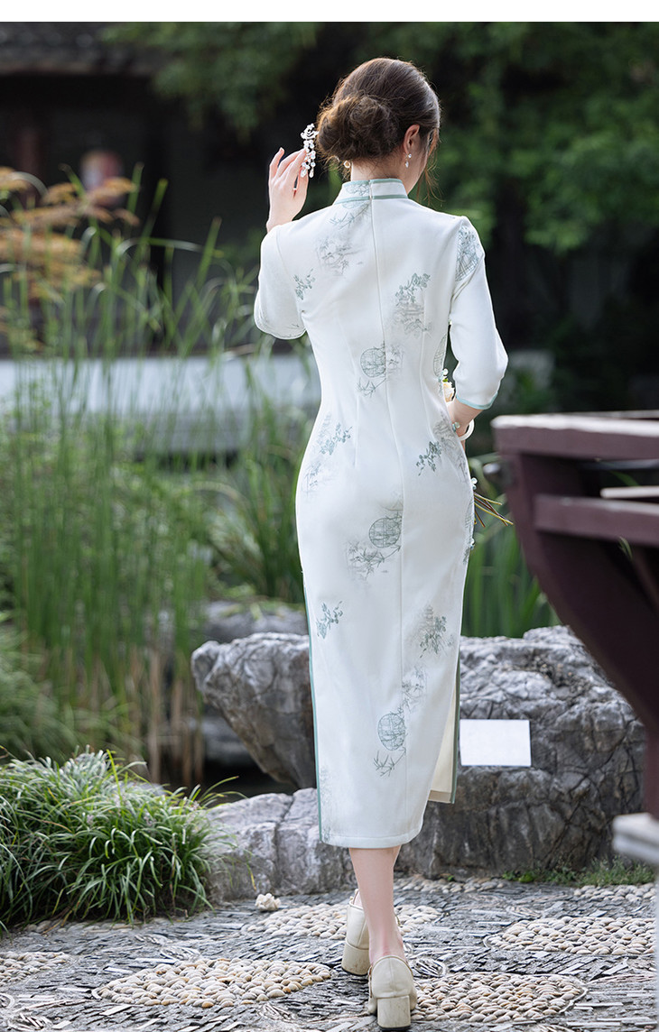 2024秋冬新款七分袖长款显瘦气质重工麂皮绒绣花旗袍MLS6973 商品图4