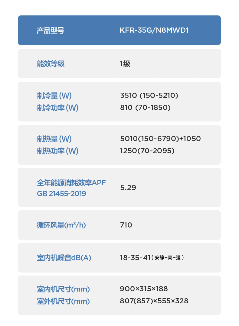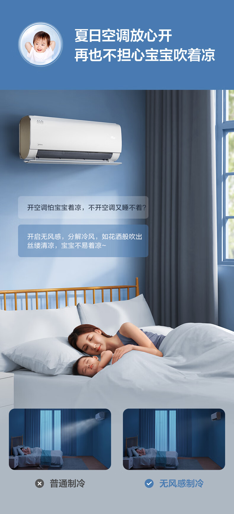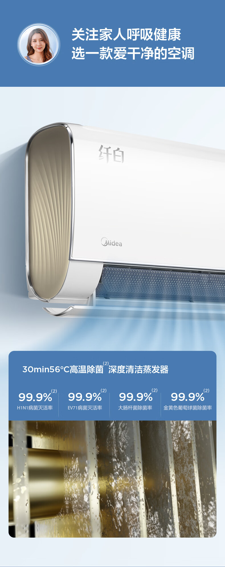 美的(Midea)1.5匹 纤白 智能家电 变频冷暖 新一级 舒适无风感 app远程控制 KFR-35GW/N8MWD1