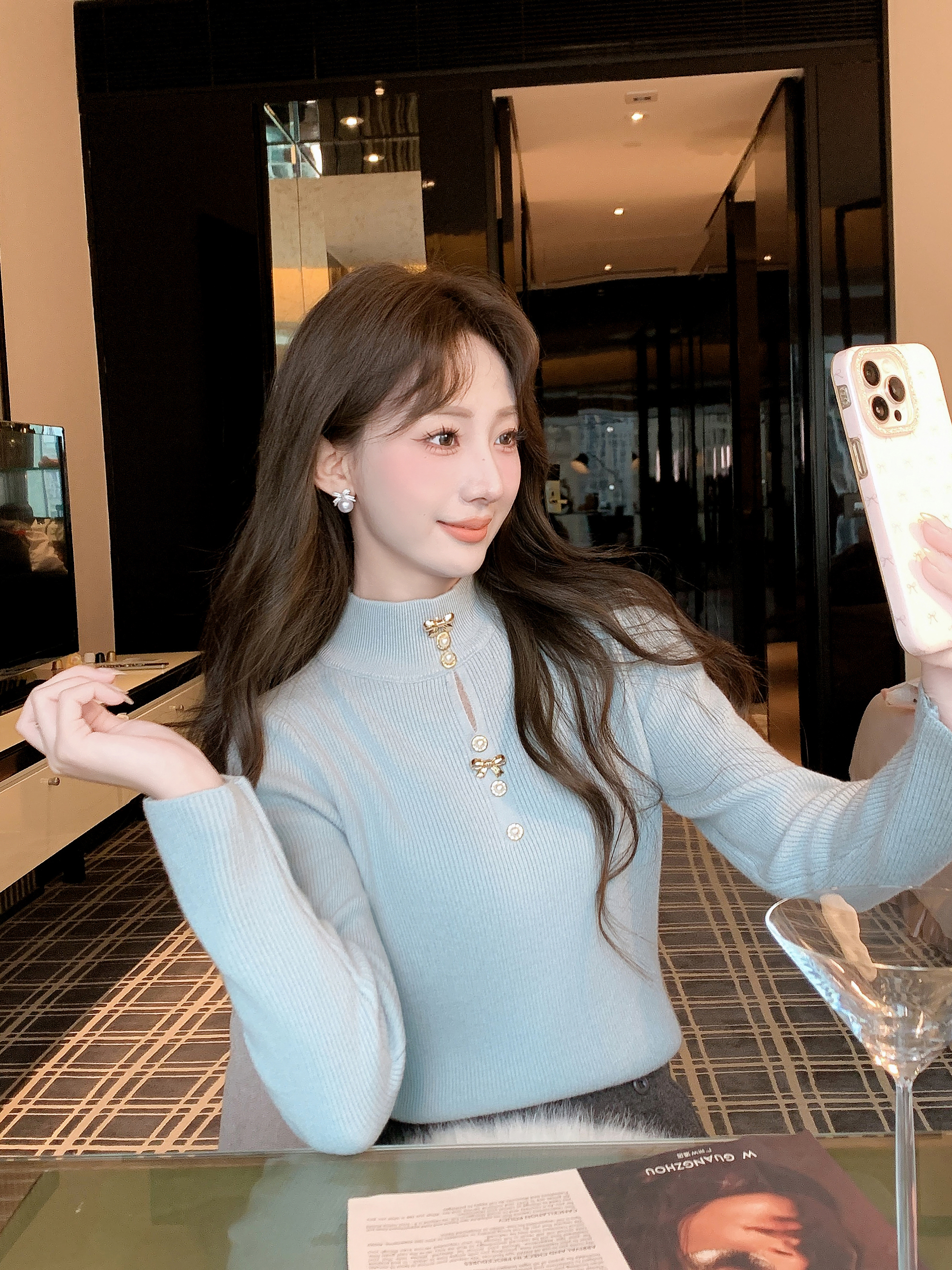 张心子【绒绒打底】半高领镂空加绒一体毛打底上衣 U2601017