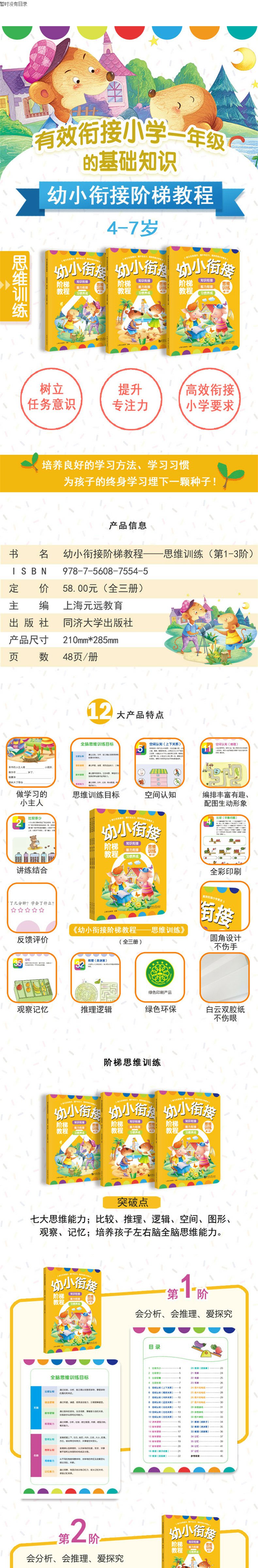 幼小衔接思维训练 幼小衔接阶梯教程 儿童全脑思维游戏大班升一年级启蒙早教教材全套3册2-3-4-5-6-7岁宝宝 数学逻辑思维训练书籍