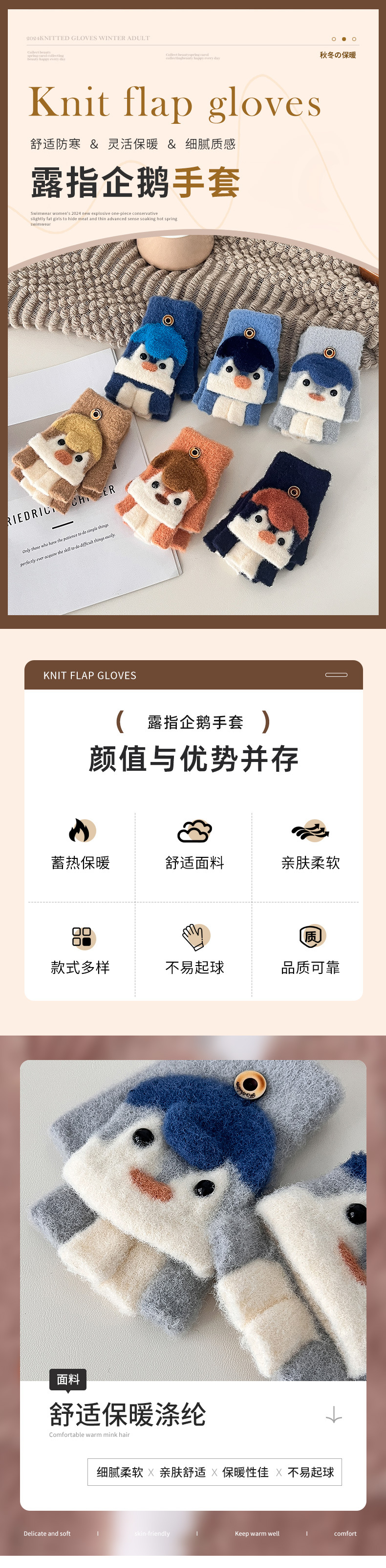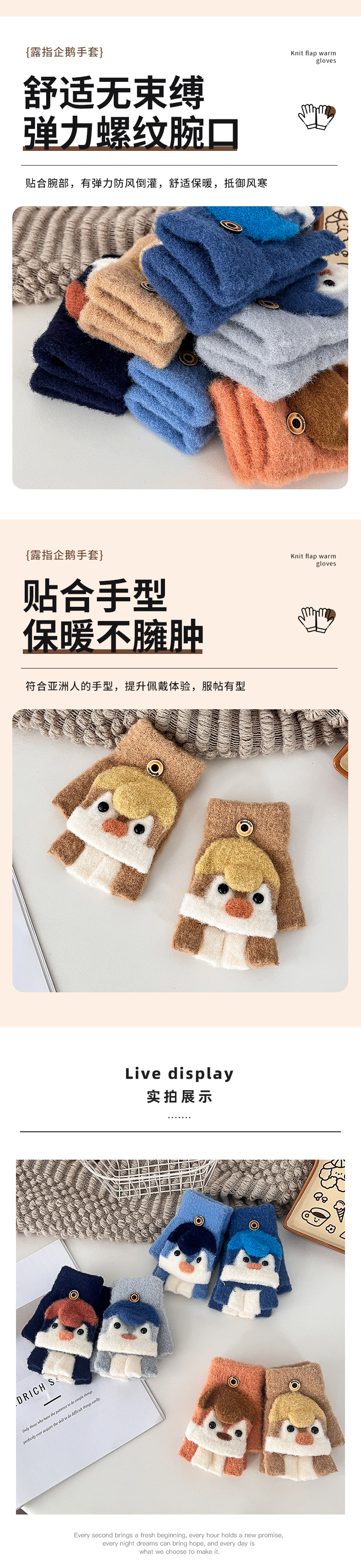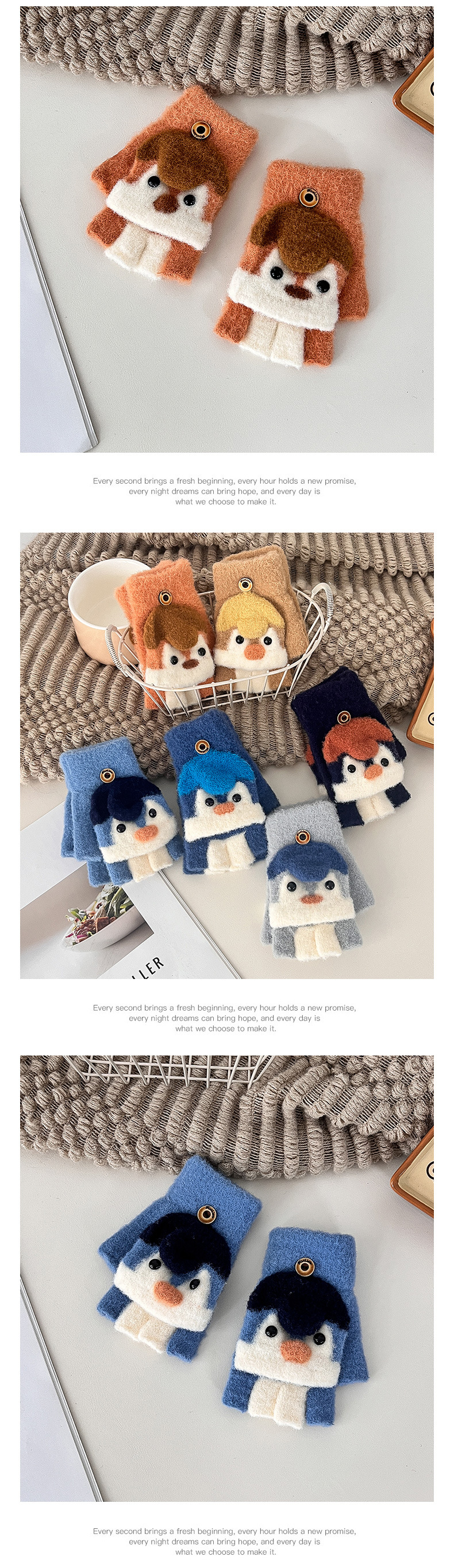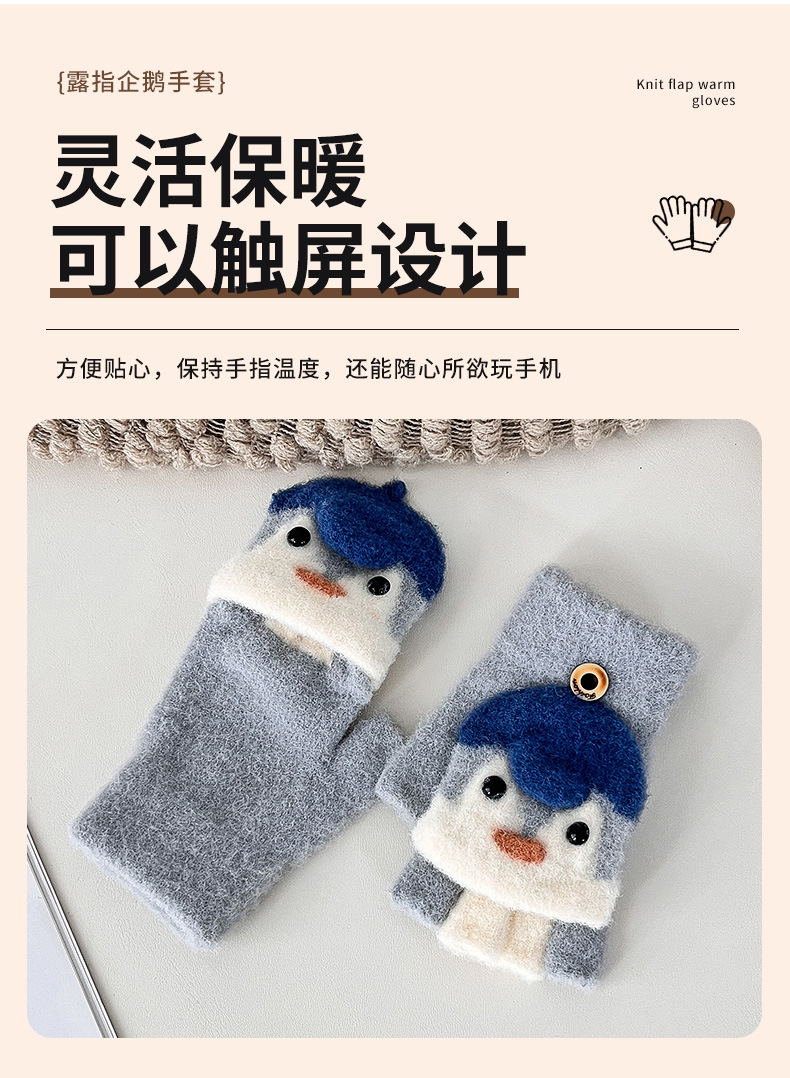 【萌趣卡通造型❗️舒适防寒灵活保暖】儿童翻盖分指手套秋冬季保暖男童宝宝可爱卡通企鹅女童防冻五指套。jb