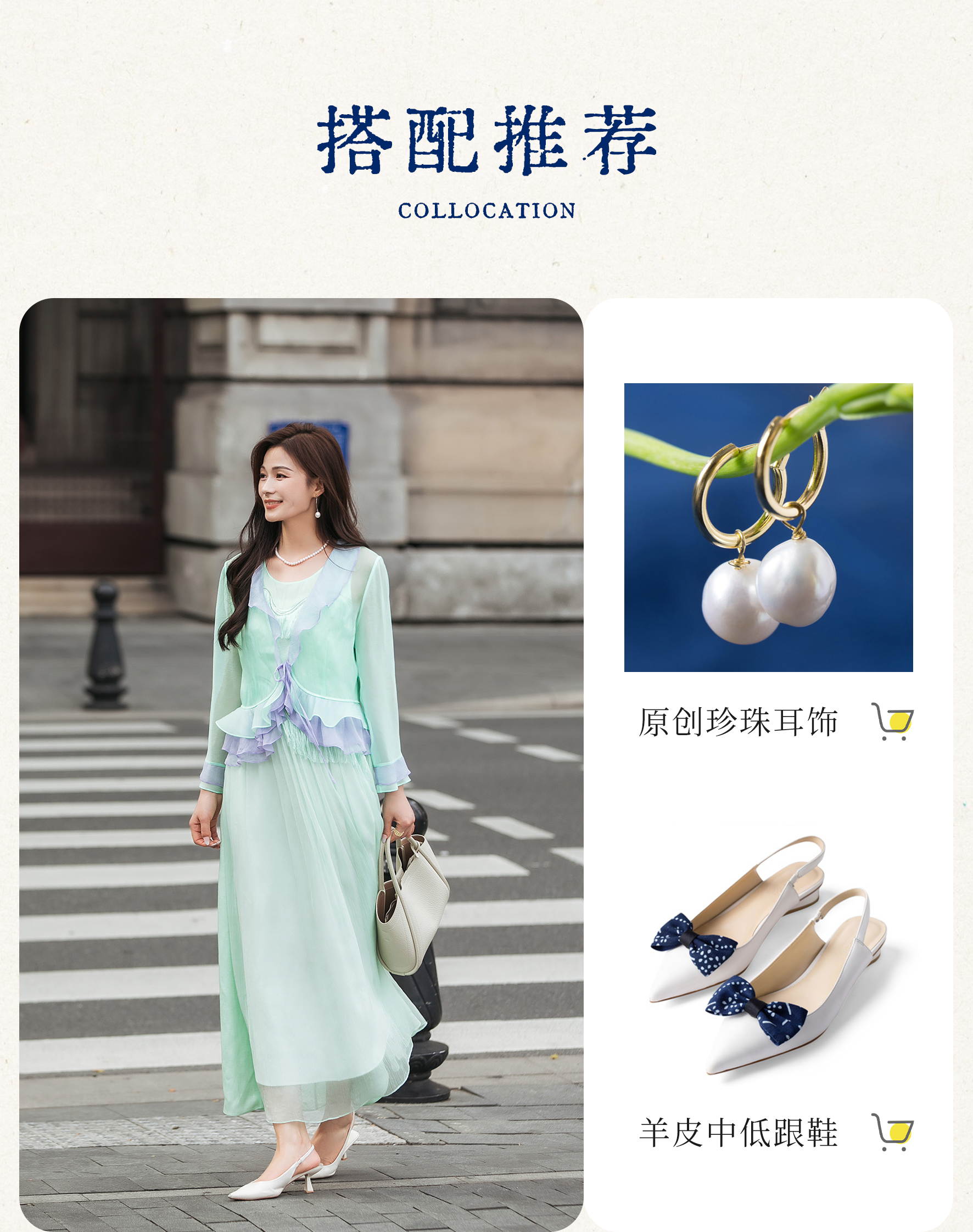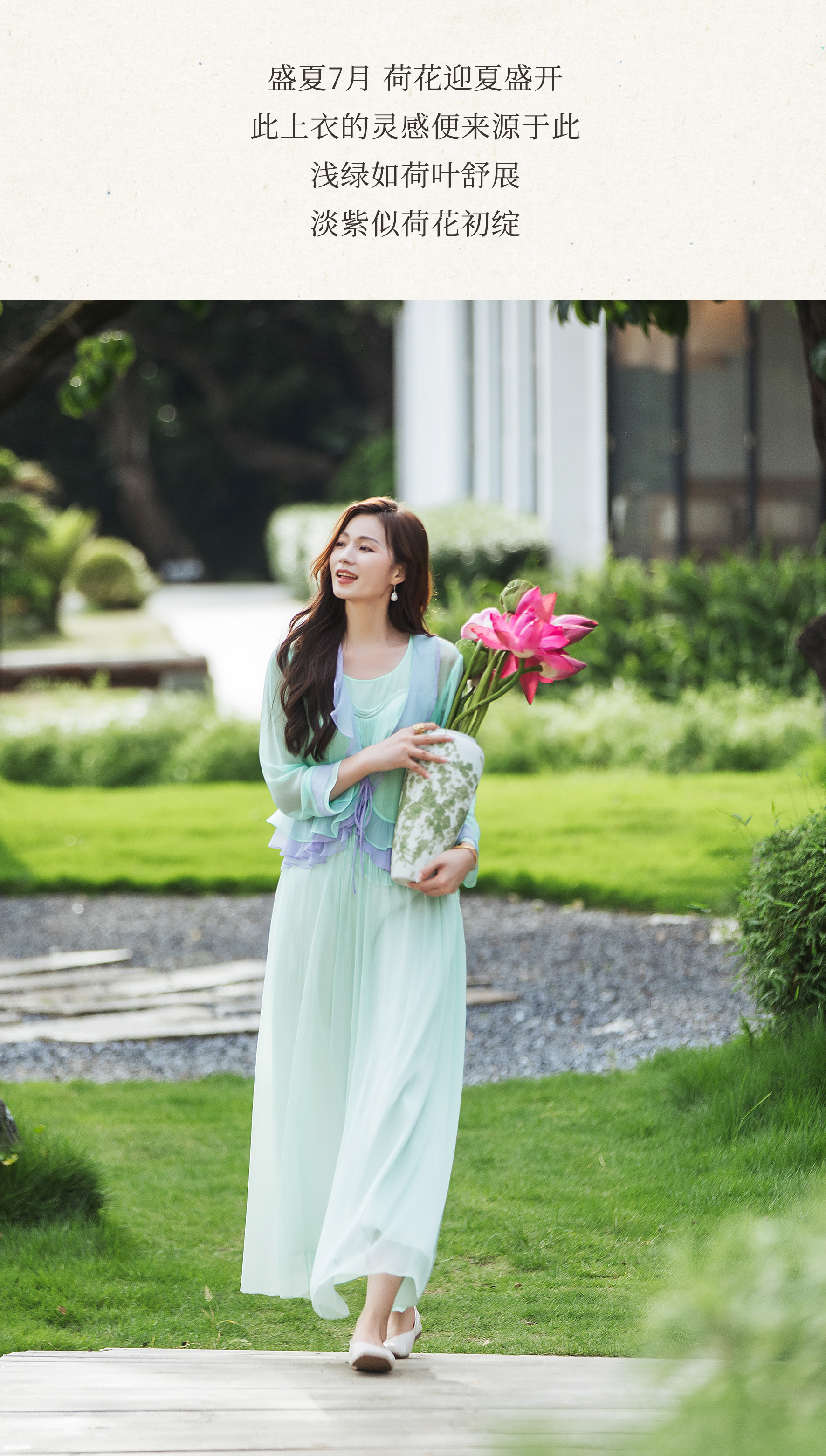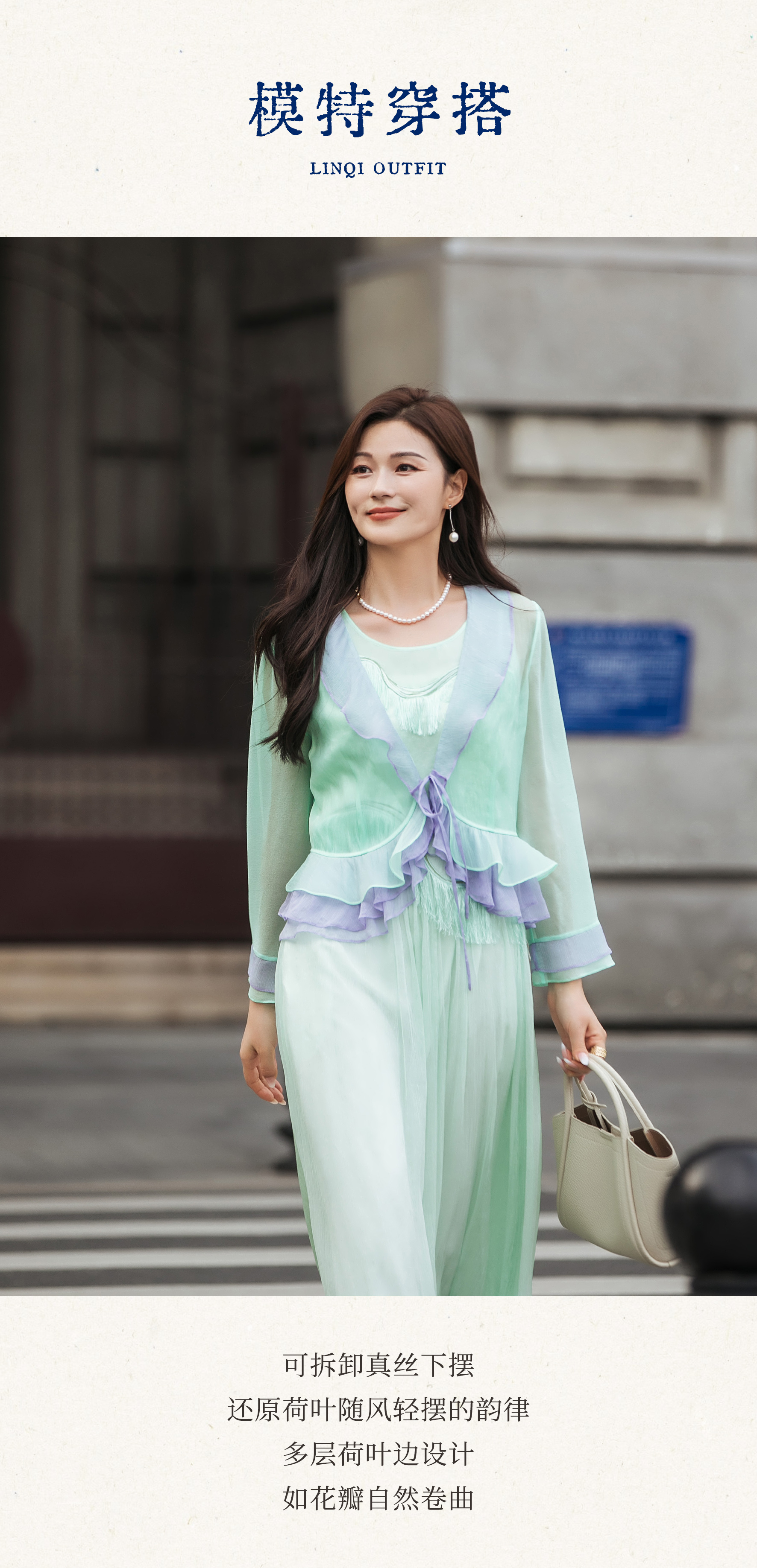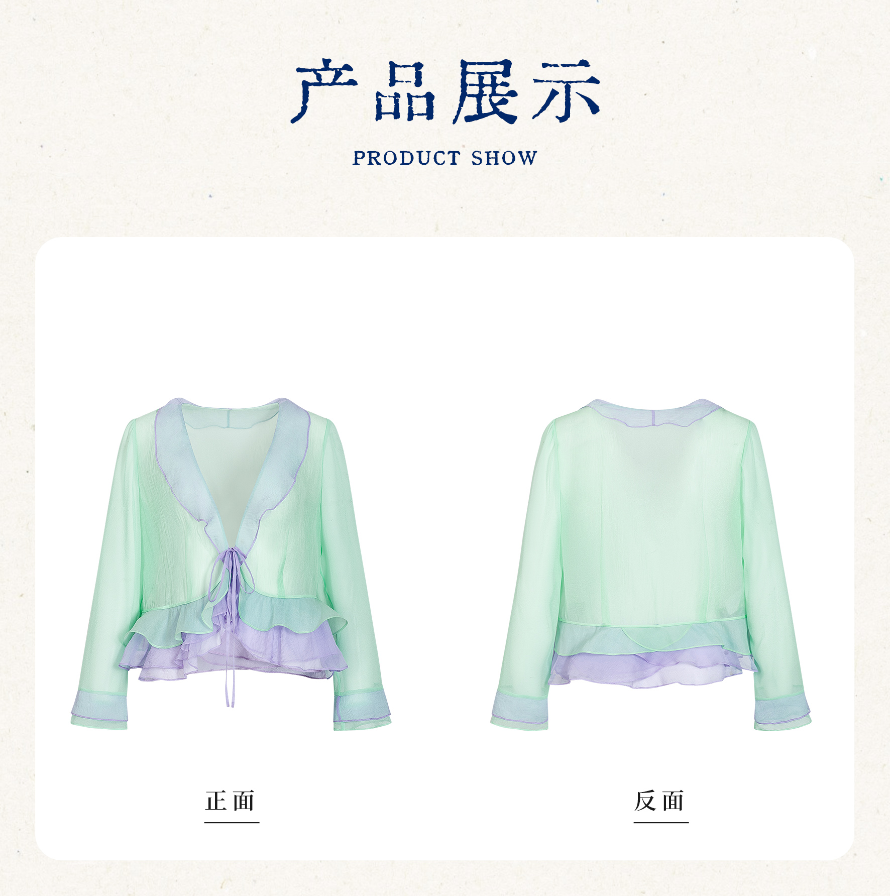 【林栖设计小店】【林栖推荐】2025夏季新品紫绿色拼真丝开衫外套女N1953122