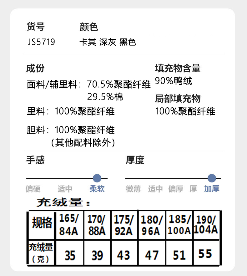 情侣款羽绒服JS5719