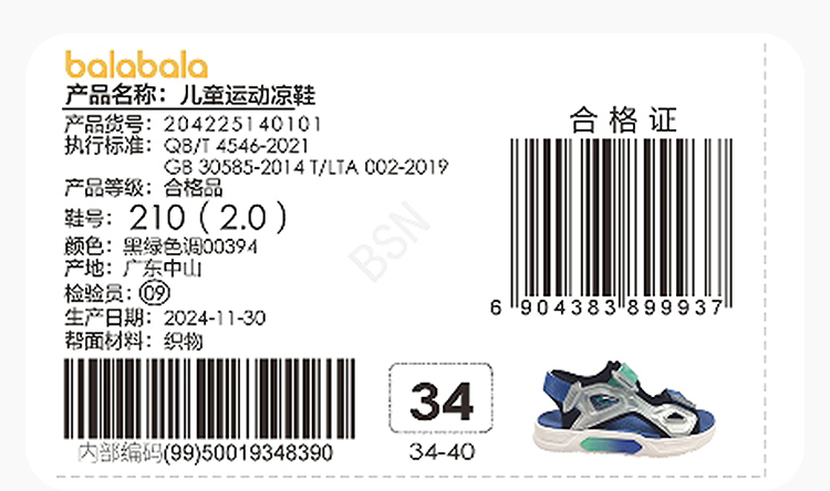 【商场同款】巴拉巴拉童鞋儿童运动凉鞋男童沙滩鞋透气2025夏新款