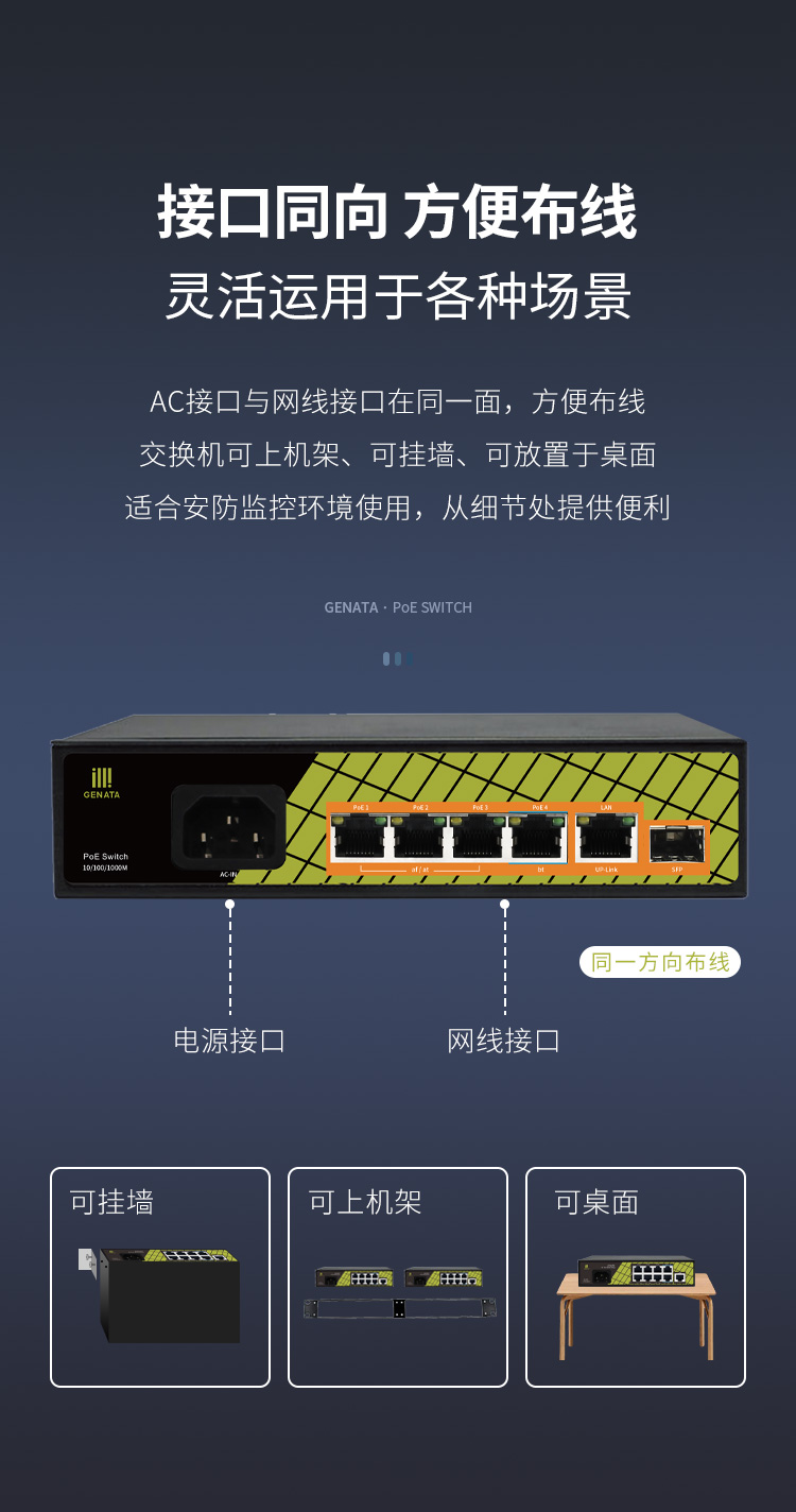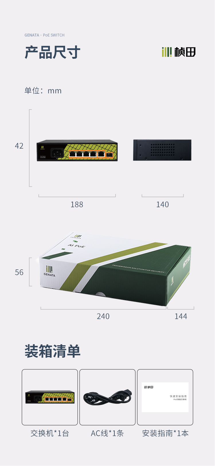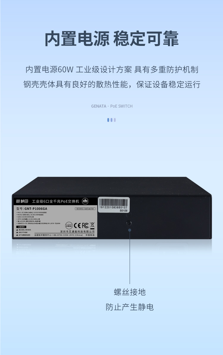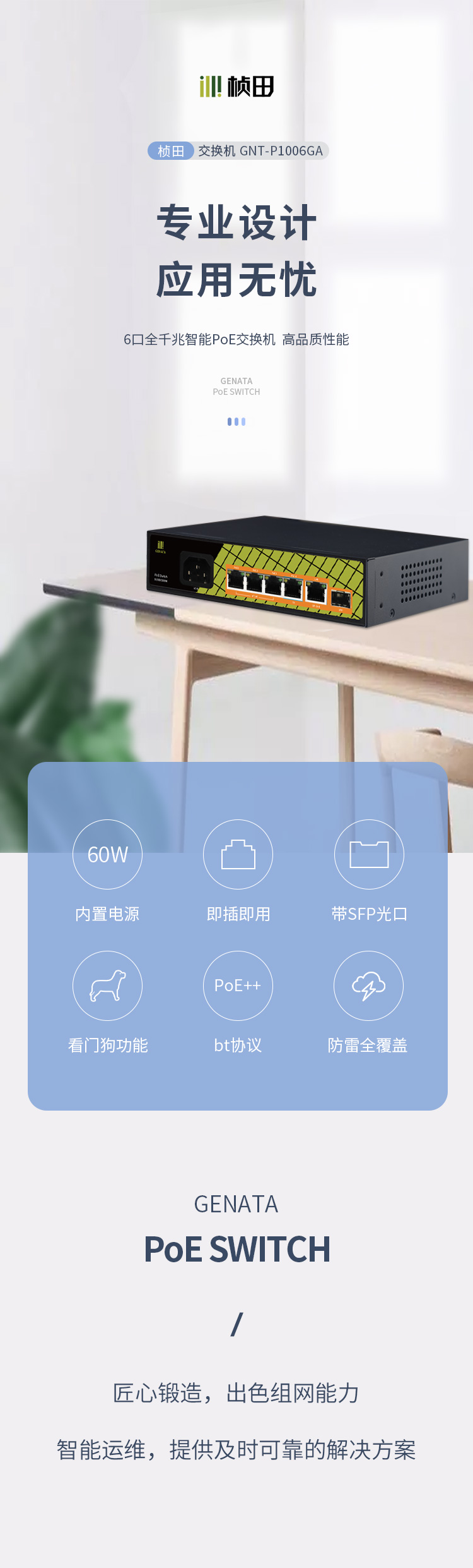 1光5电全千兆智能POE交换机带光口内置电源P1006GA