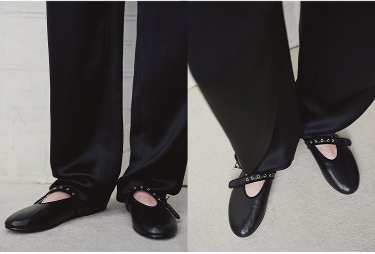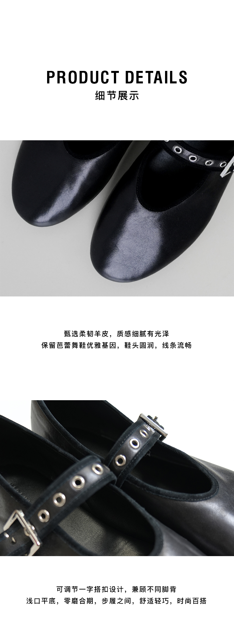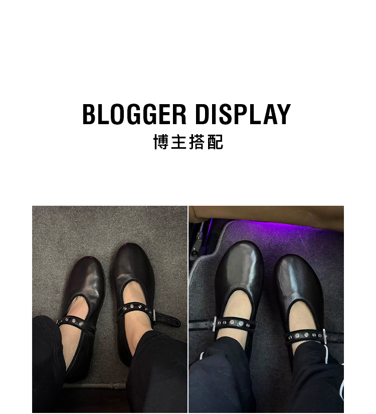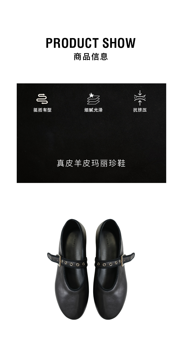 HIDEMI 真皮羊皮玛丽珍鞋浅口单鞋芭蕾舞鞋铆钉一字扣平底鞋