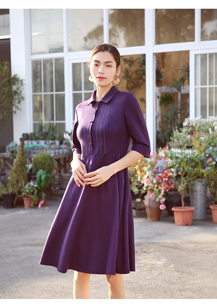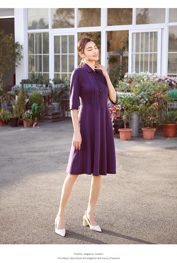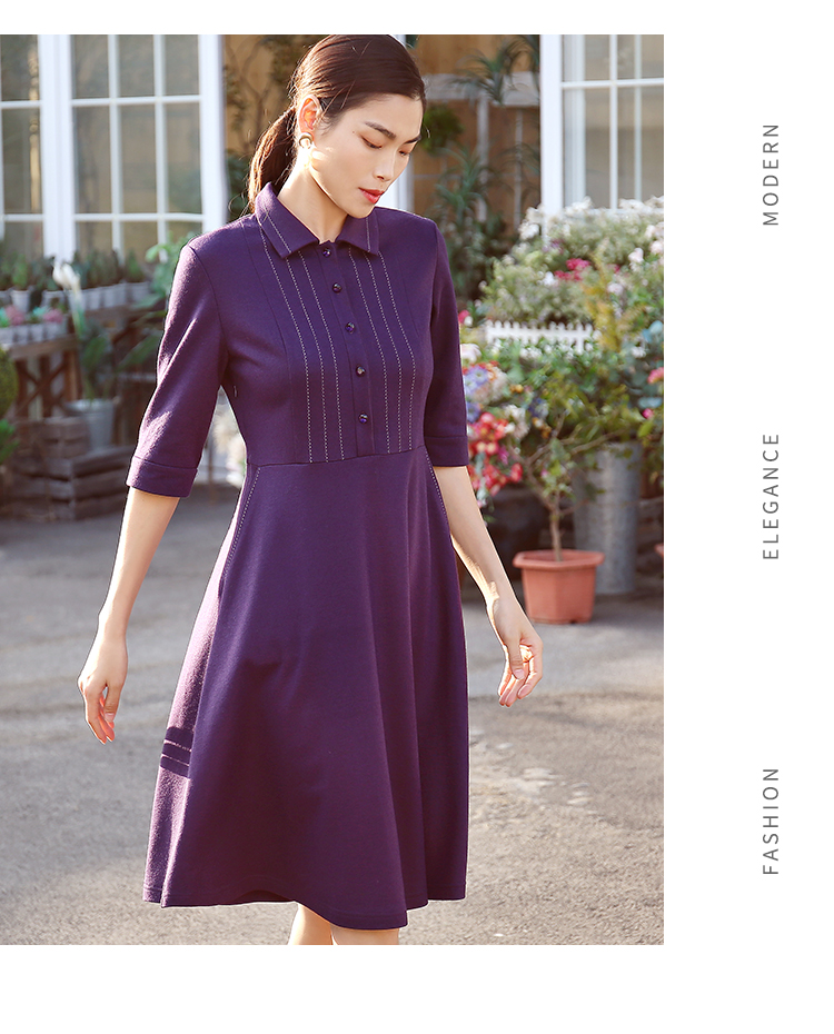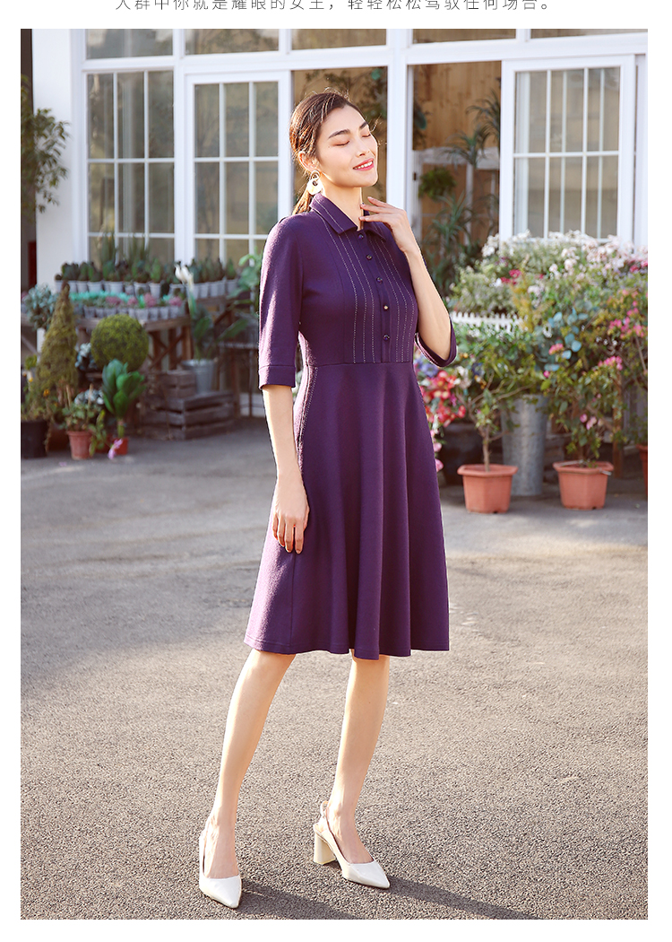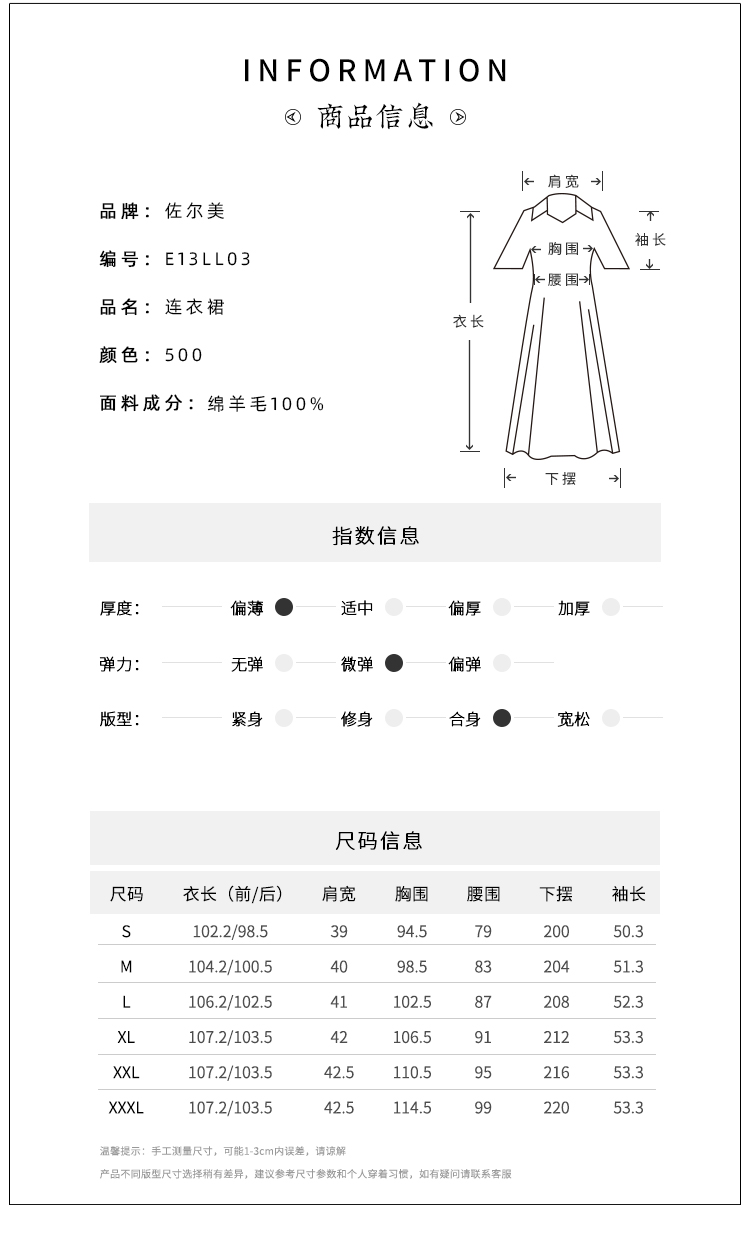 佐尔美2021年秋季新款 绵羊毛知性气质修身中袖连衣裙E13LL03