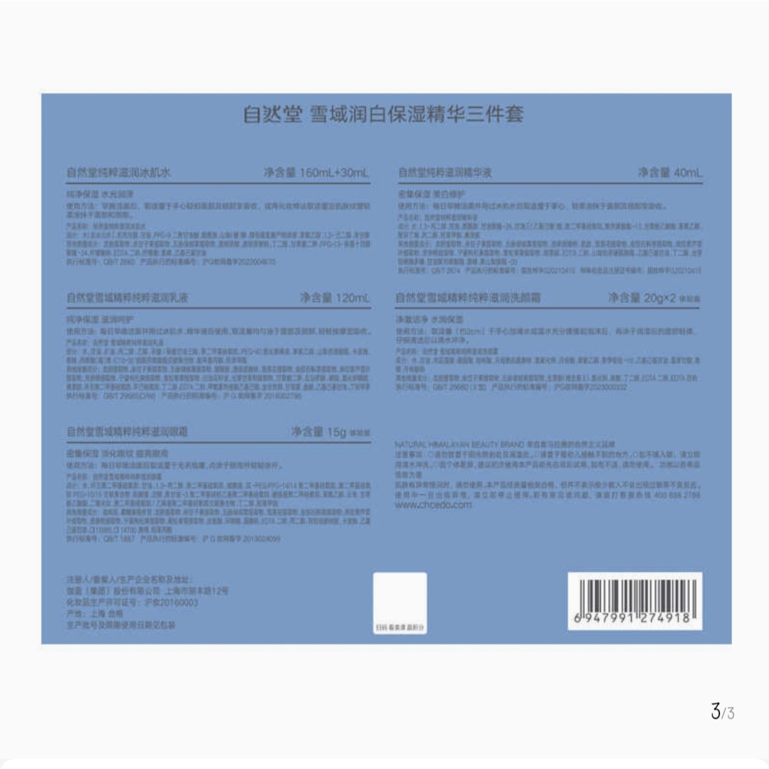 自然堂雪域润白保湿精华三件套(水乳精套)(240602)
