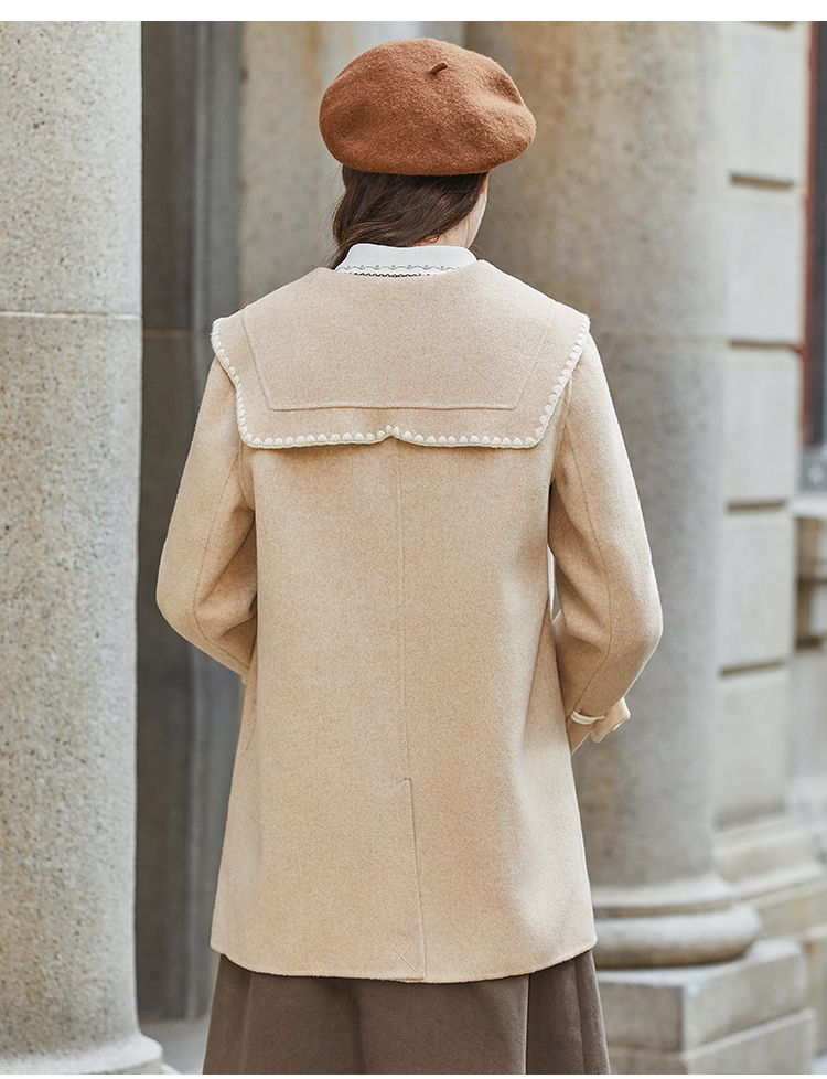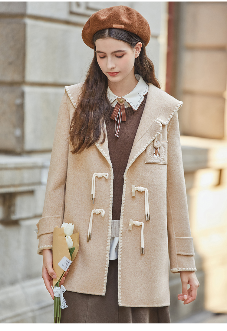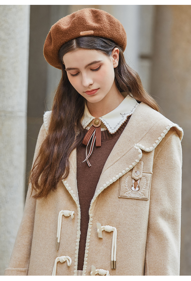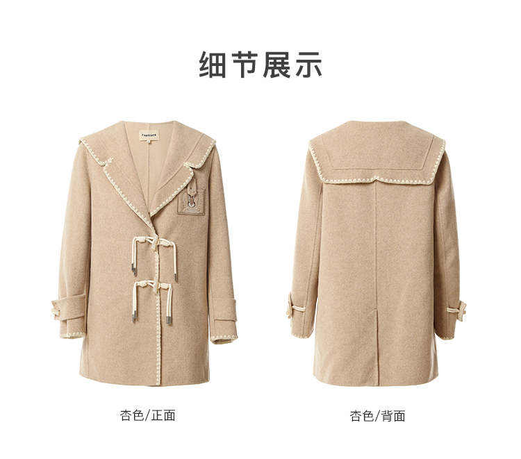 Famecoco兔子刺绣牛角扣学院风大衣外套女FAB8AS020