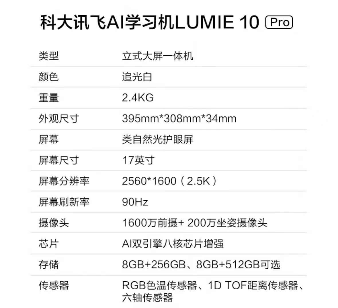 科大讯飞 Lumie10 Pro AI学习机 新款科大讯飞学习机
