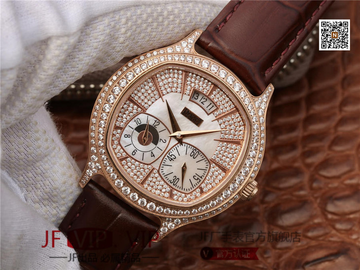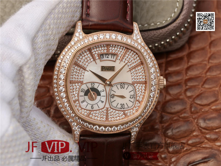 【机芯】采用稳定耐用的9015机芯改伯爵自产850P机芯。做工精湛的机芯不仅拥有时,分和小秒针显示。同时还具备能区分昼夜和第二地时间的强大功能,并配有大型日期显示窗。百分百还原正品功能。