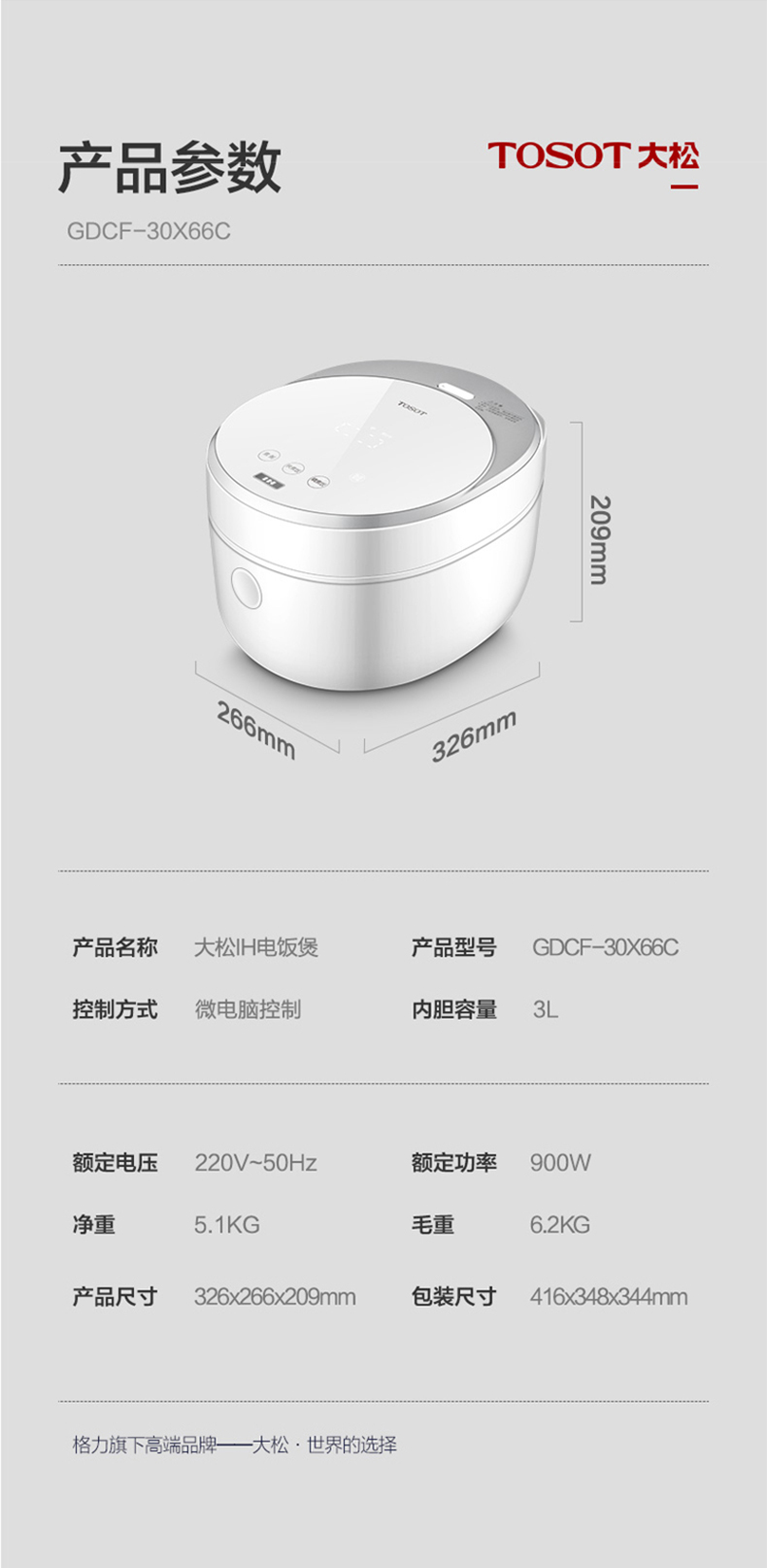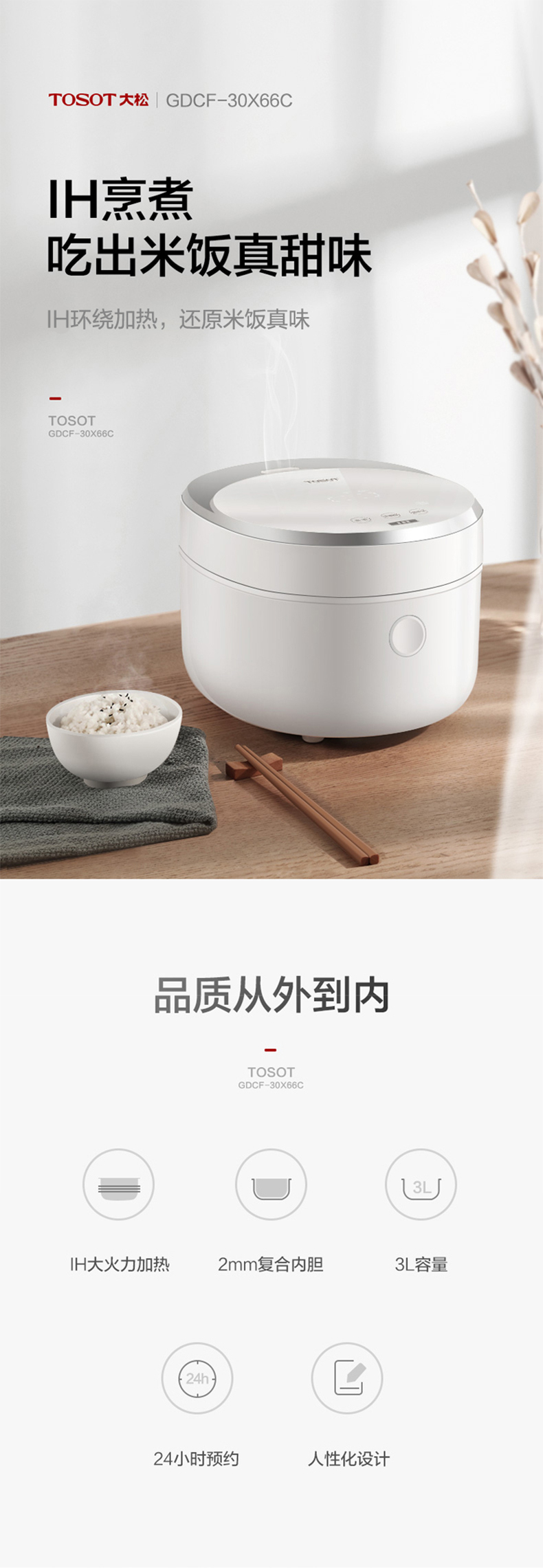 【预售】大松·IH智能电饭煲  GDCF-30X66C 白+银色 商品图3