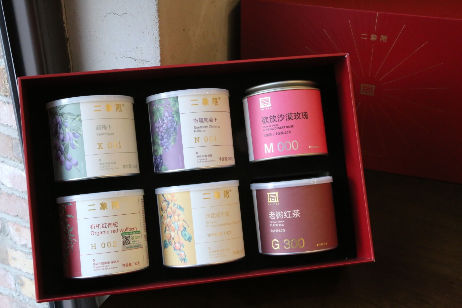 【礼盒A商务款】玫瑰红茶(36g/罐)+葡萄干(240g/罐)+新梅干(240g/罐)+有机枸杞中果(150g/罐)