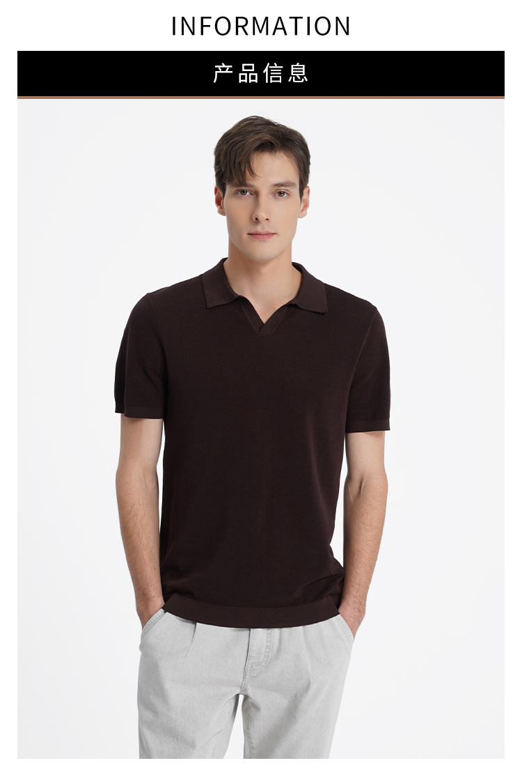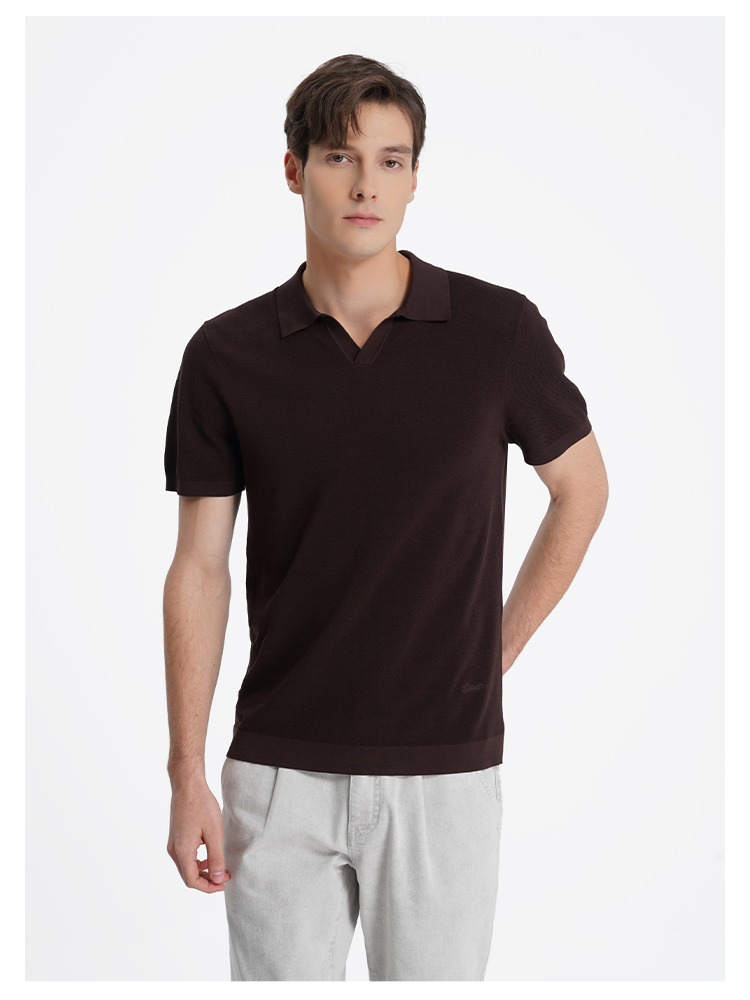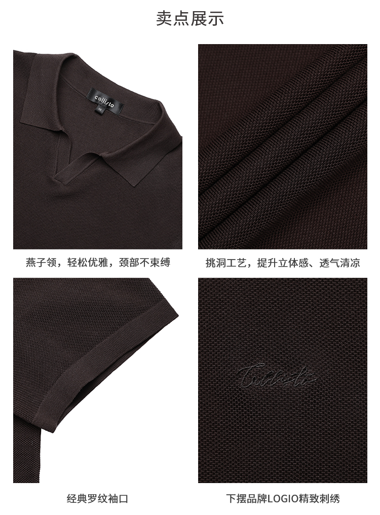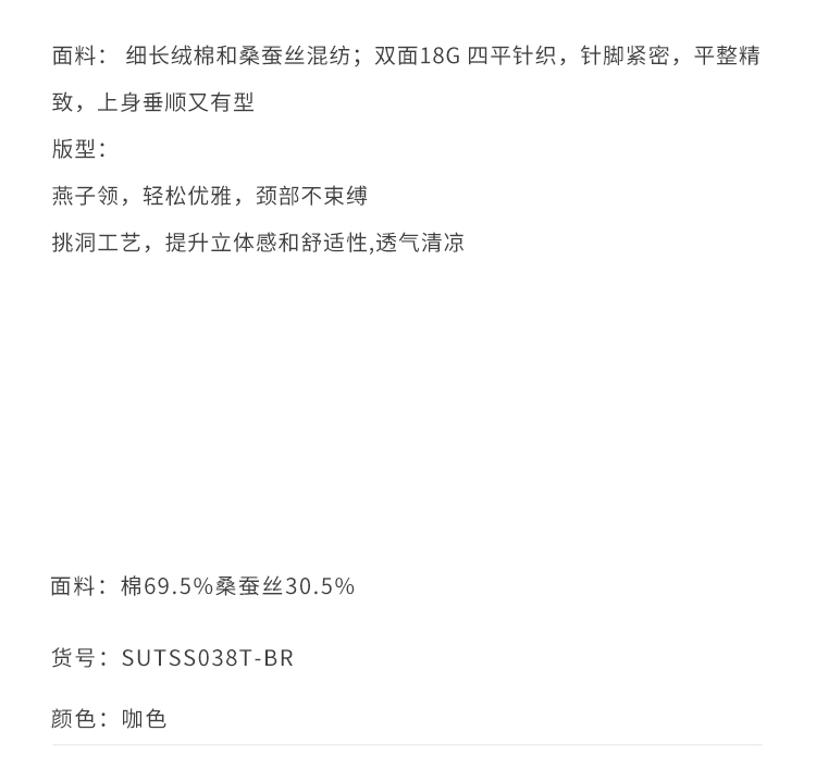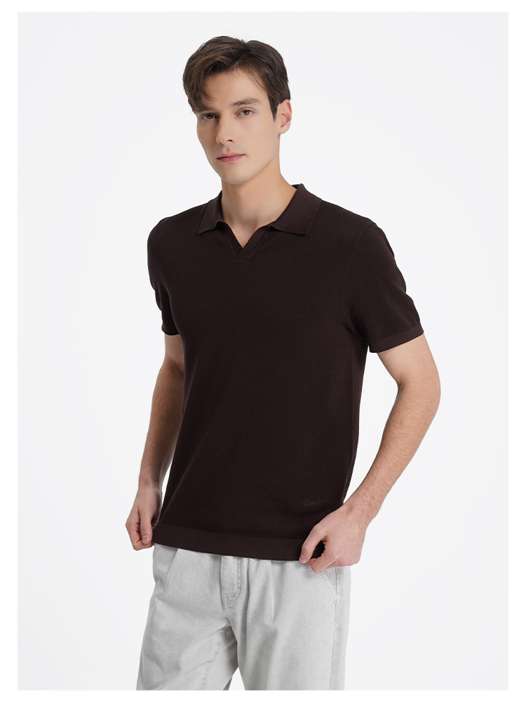 callisto咖色燕子领棉桑蚕丝混纺T恤