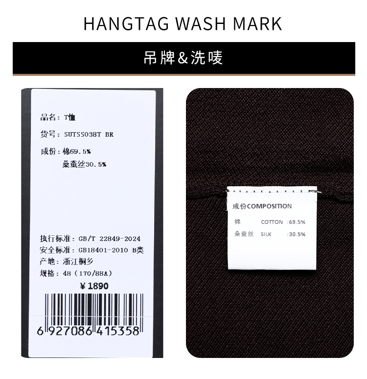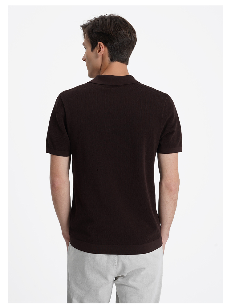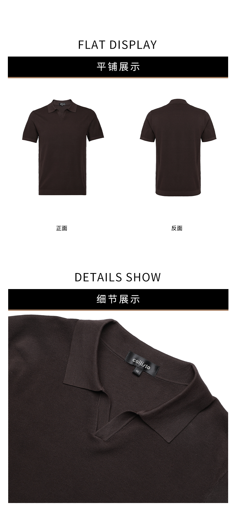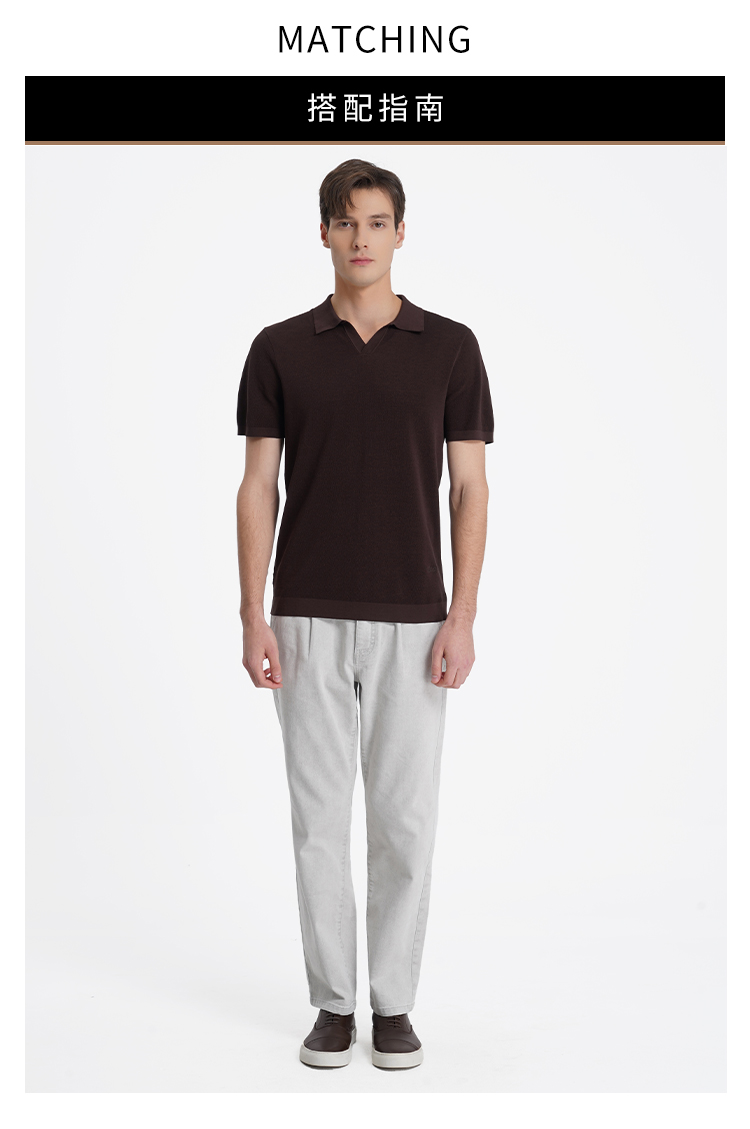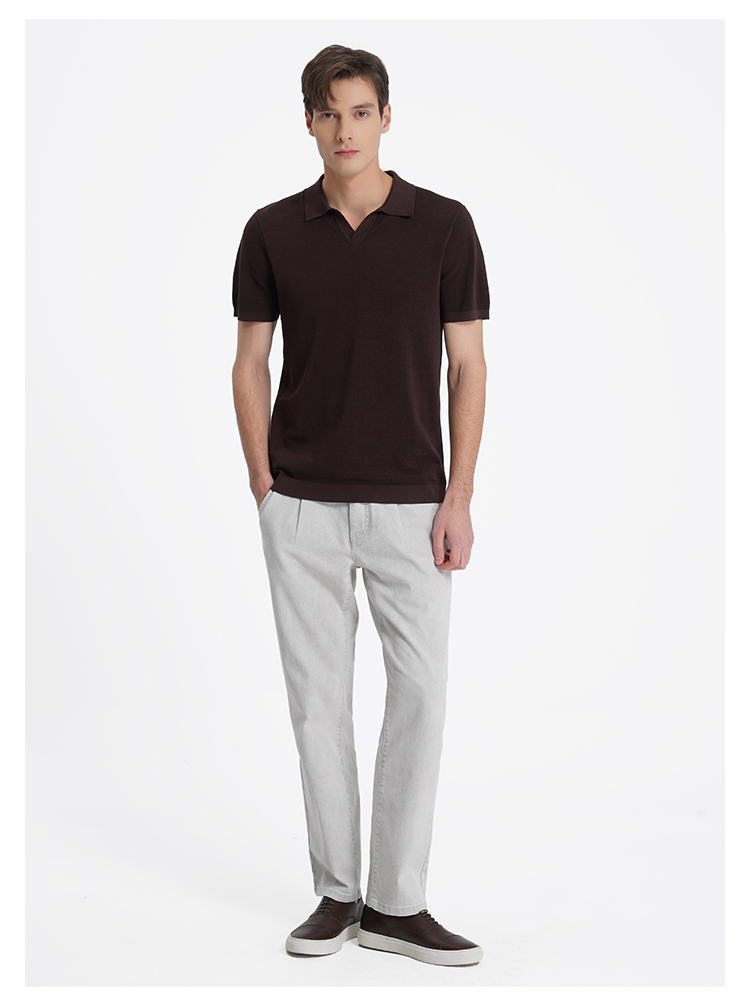 callisto咖色燕子领棉桑蚕丝混纺T恤