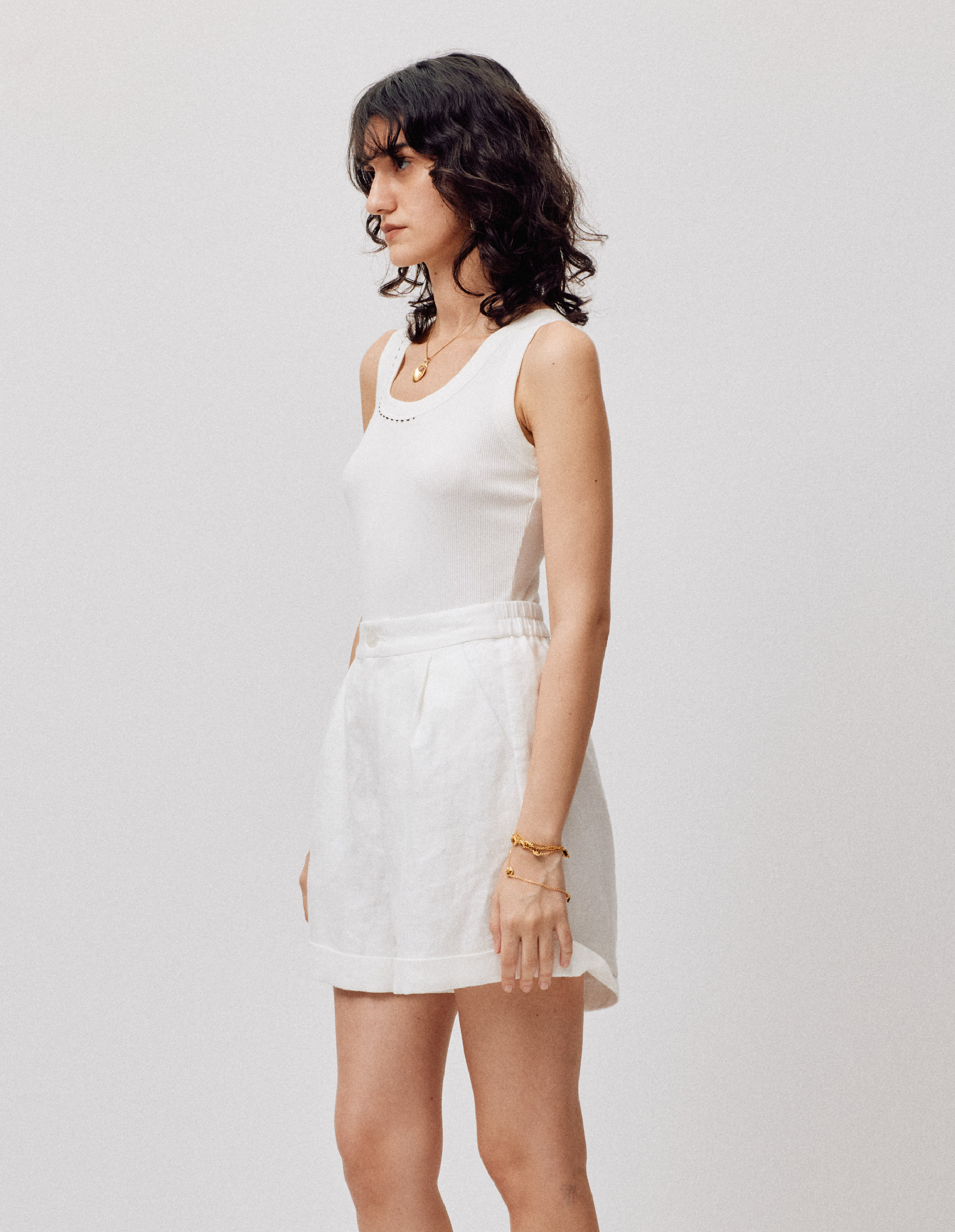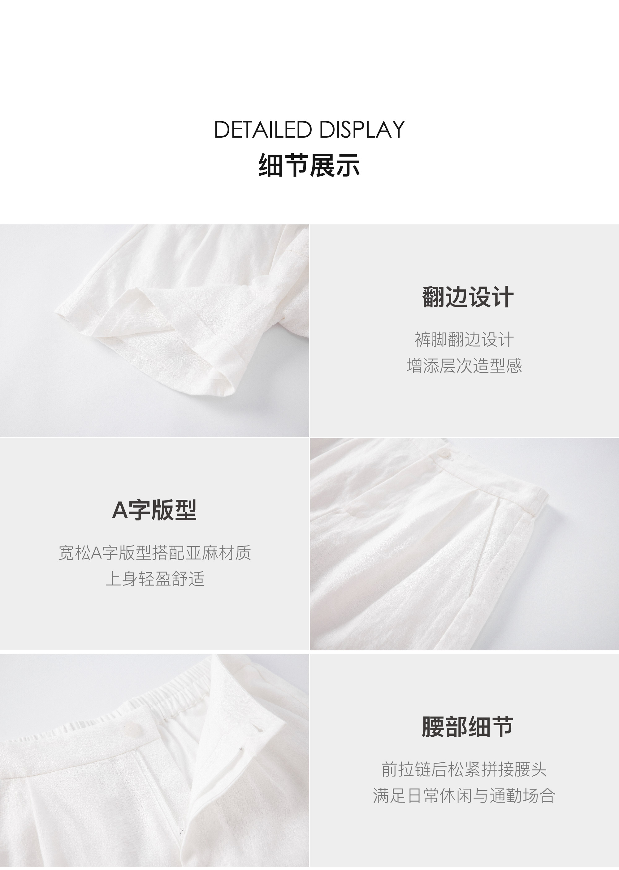 LIYIHAN亘云麻 | 25夏亚麻翻边短裤白色宽松裤子舒适透气百搭休闲