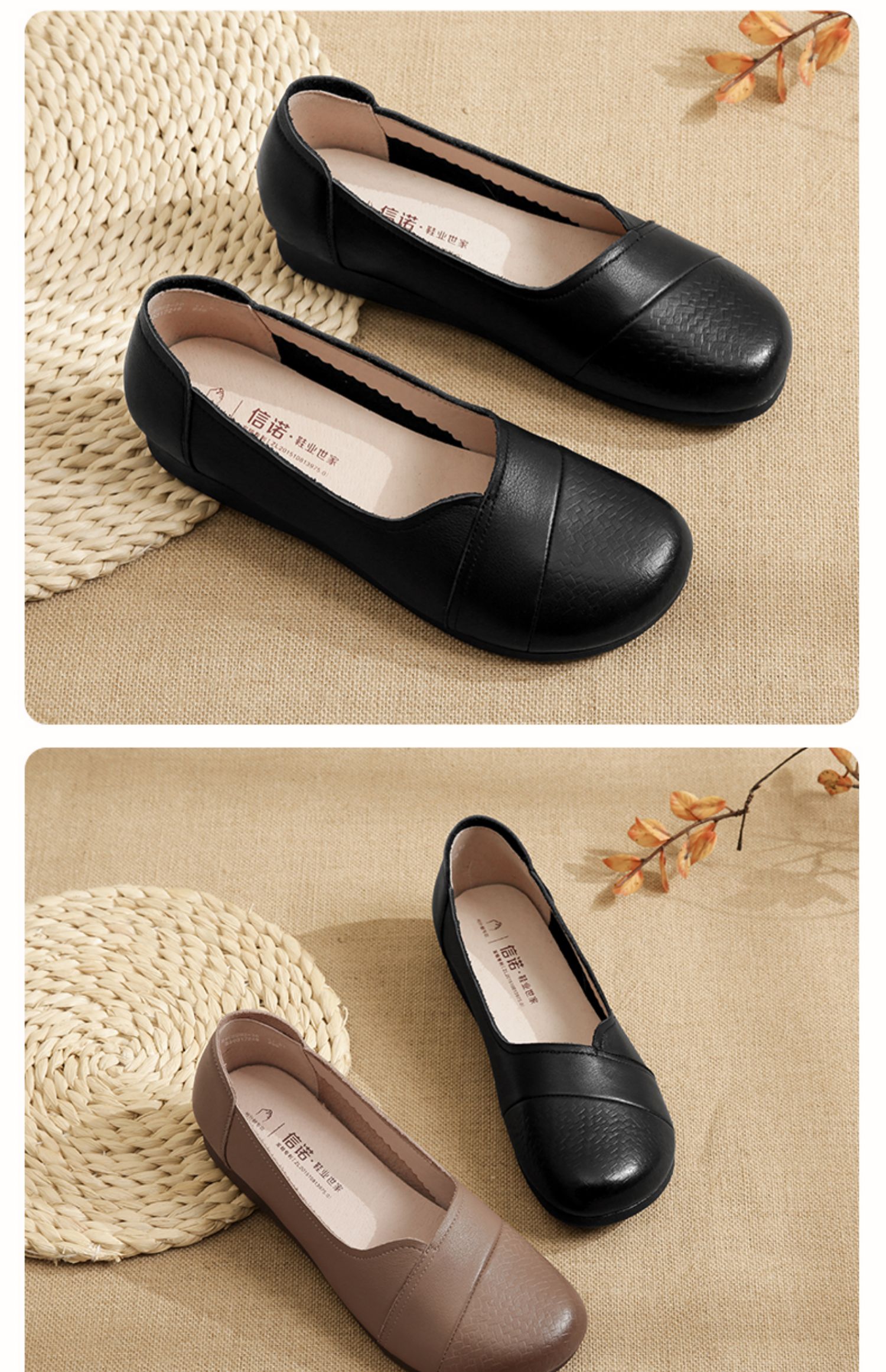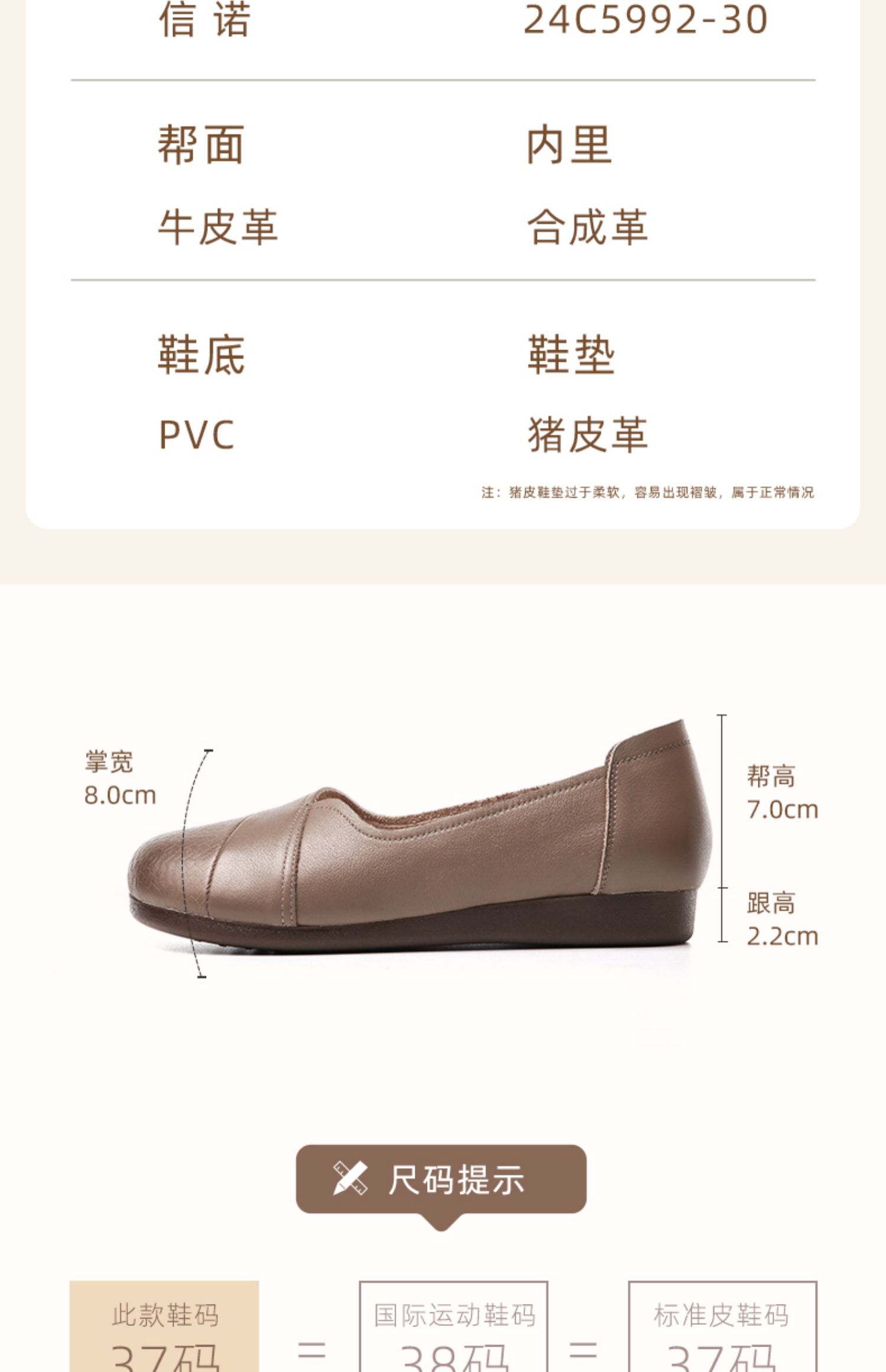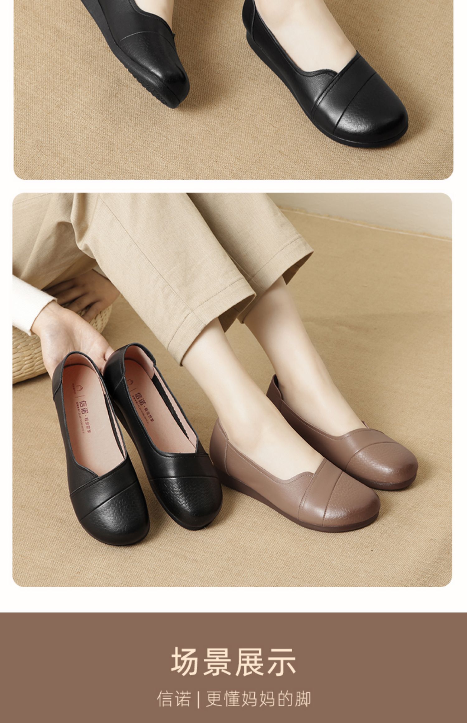 信诺真皮软底妈妈鞋2024新款春季拇外翻大脚骨女皮鞋宽脚老人单鞋24C5992-30