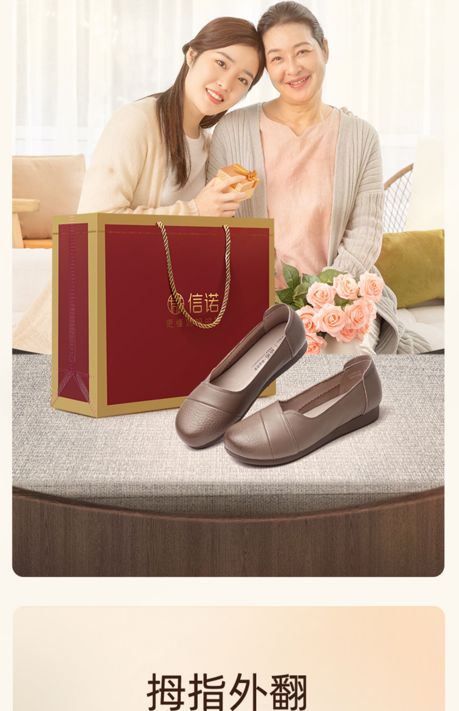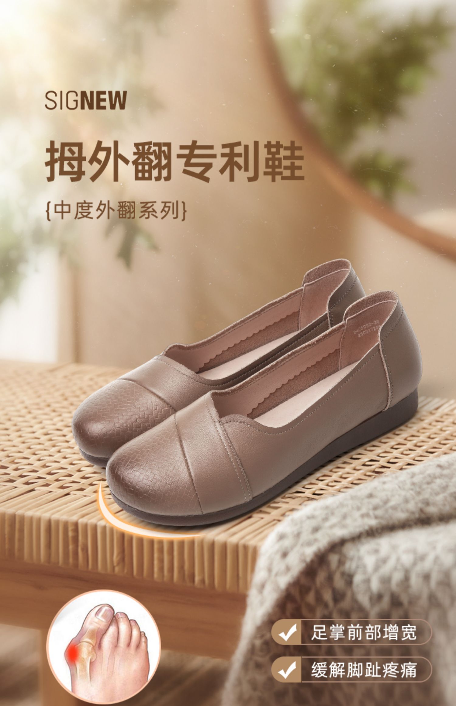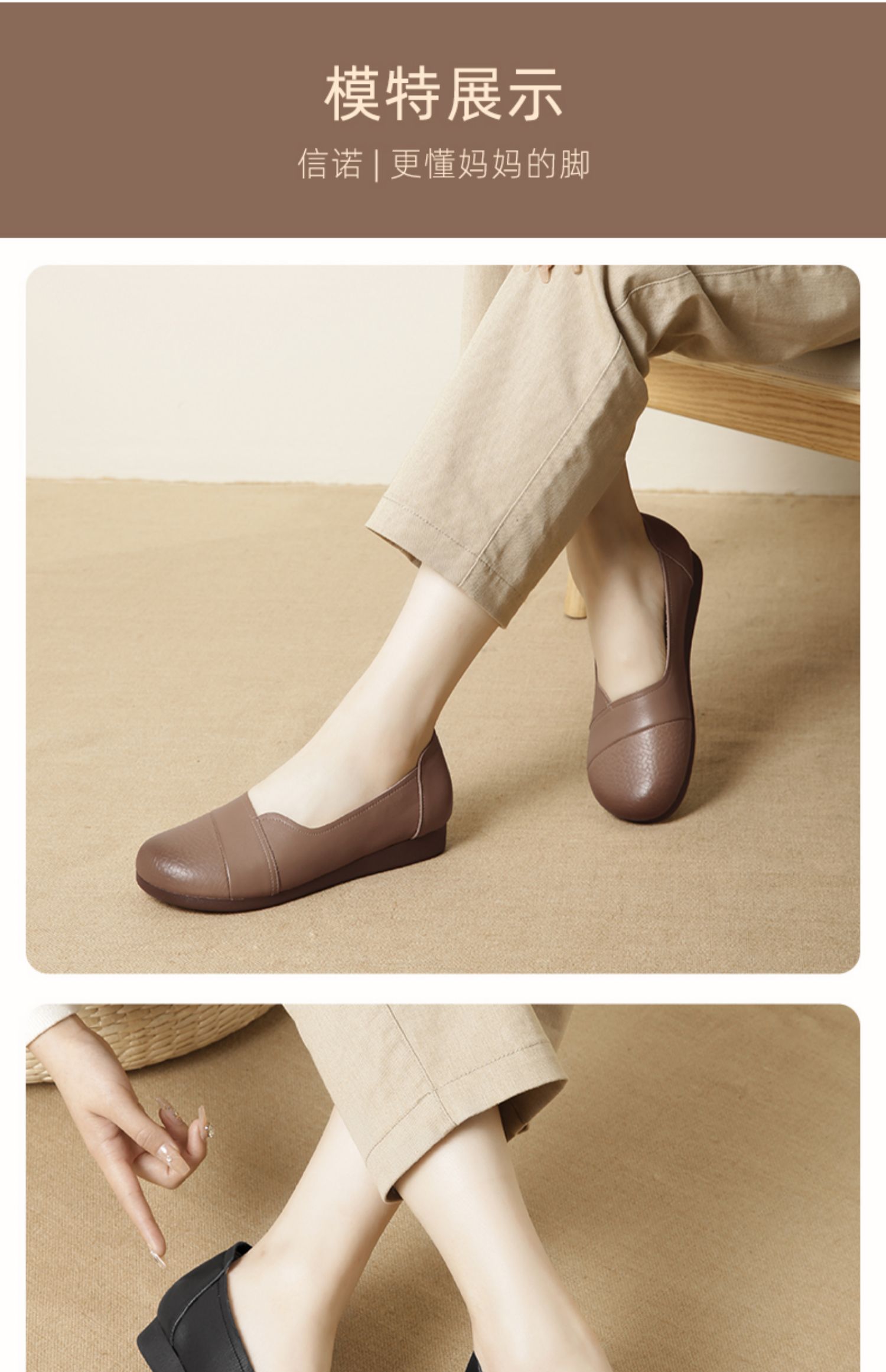 信诺真皮软底妈妈鞋2024新款春季拇外翻大脚骨女皮鞋宽脚老人单鞋24C5992-30