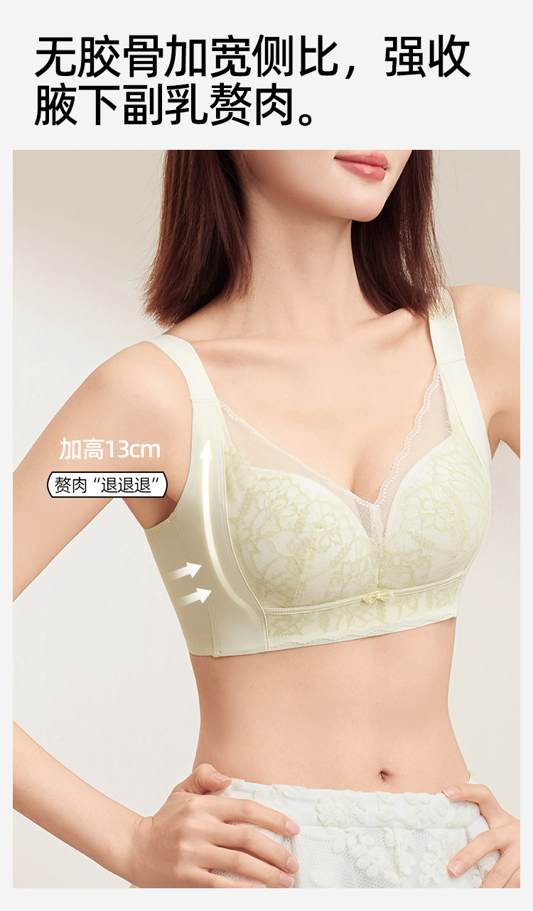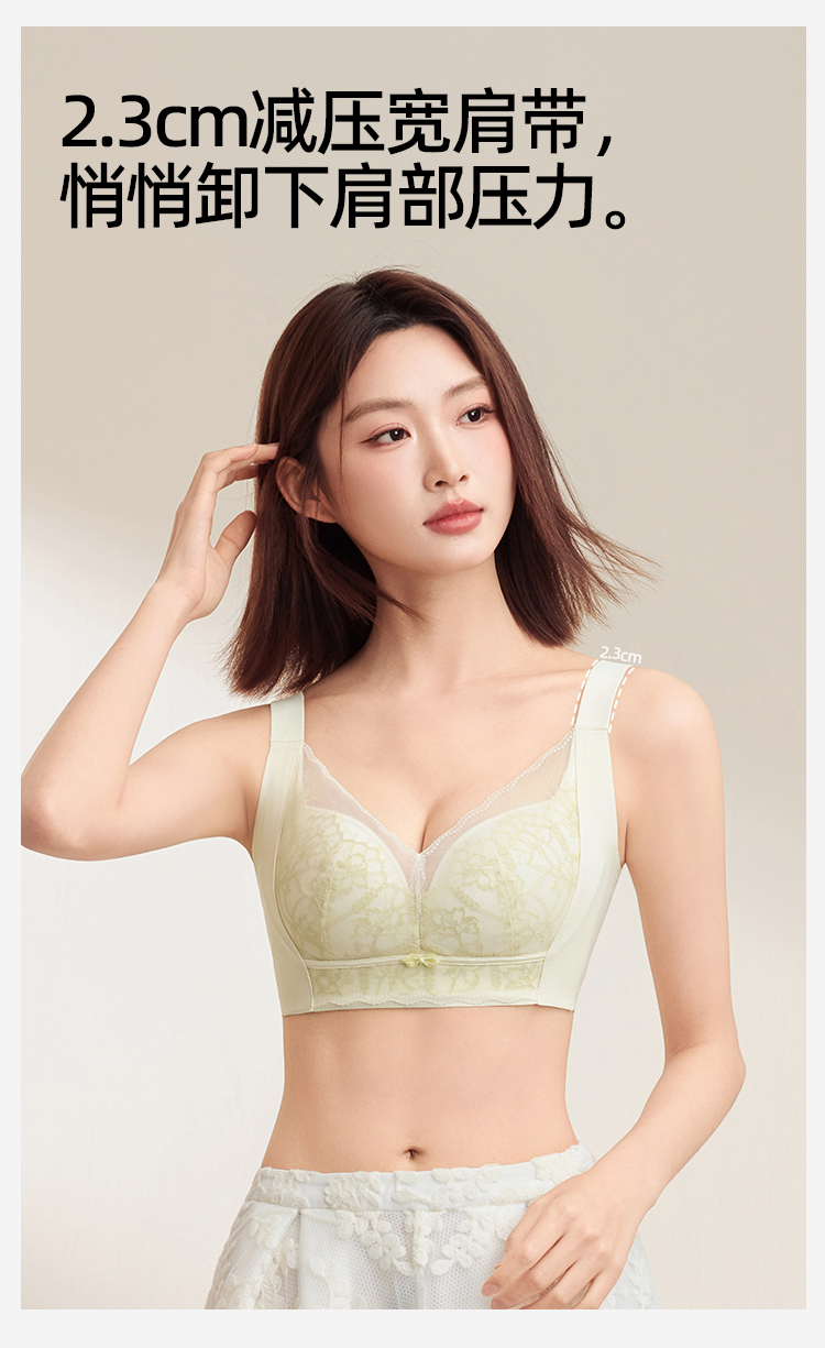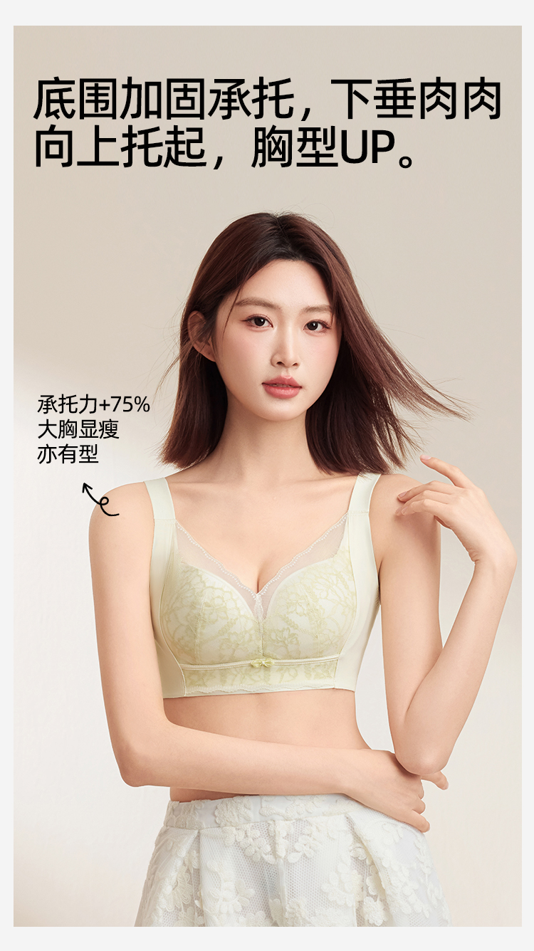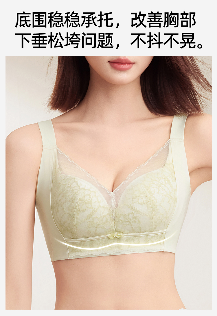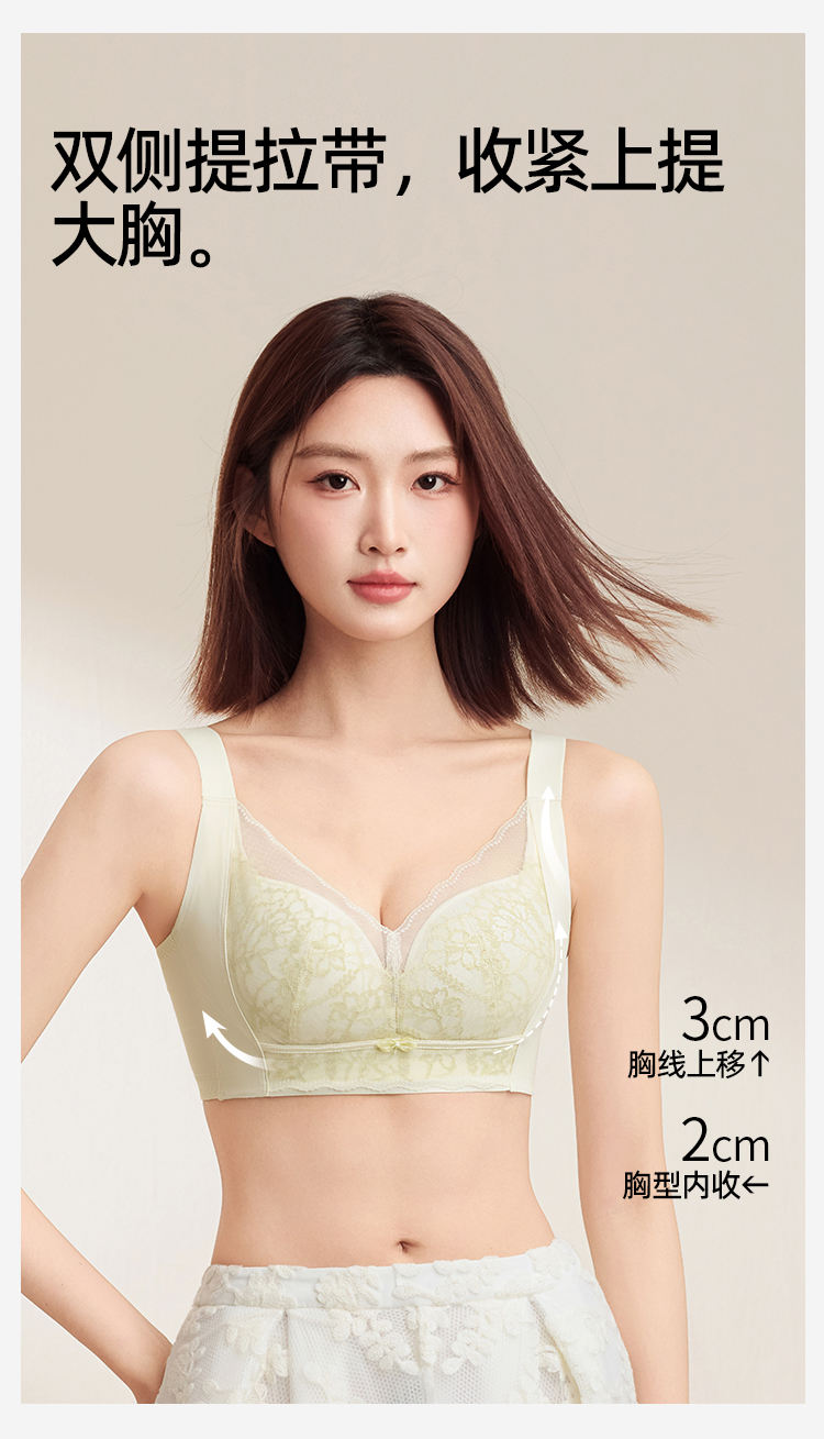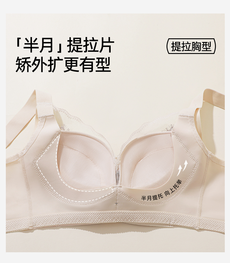 熳洁儿 大胸显小文胸聚拢提拉轻薄无钢圈内衣睫毛蕾丝云感棉25261508