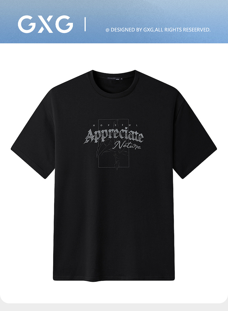 GXG男装【100%棉】26夏季创意哥特字母日常通勤圆领男式短袖T恤K&C
