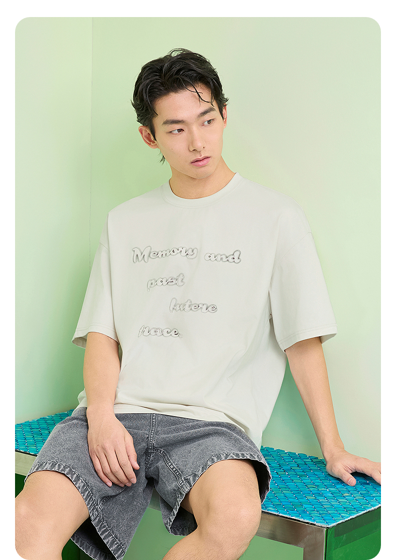 GXG男装 圆领T恤字母印花上衣凉感短袖针织 2025夏季热卖