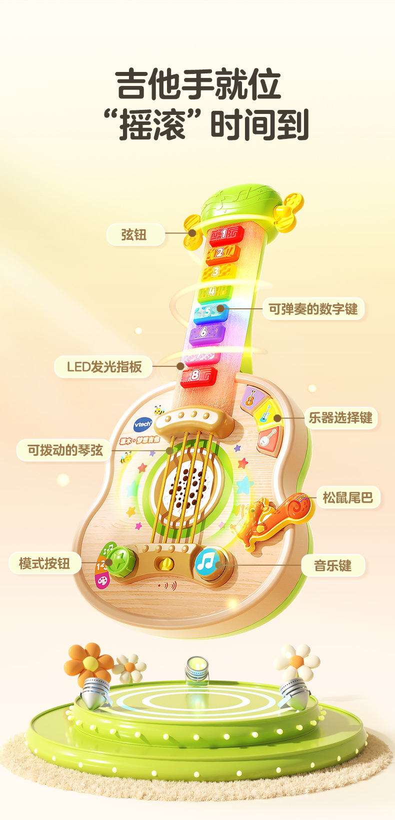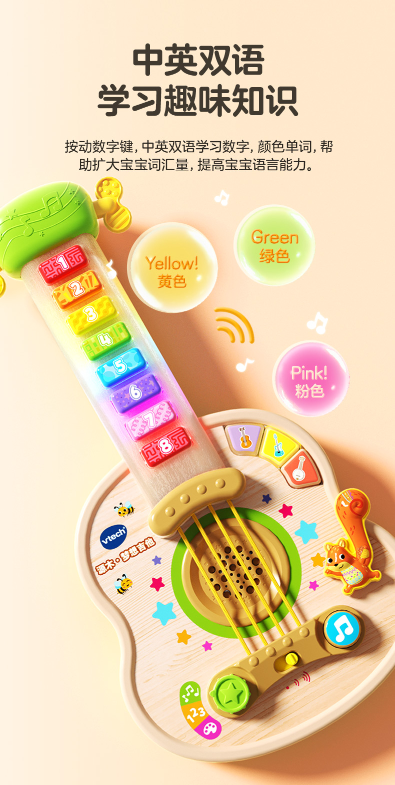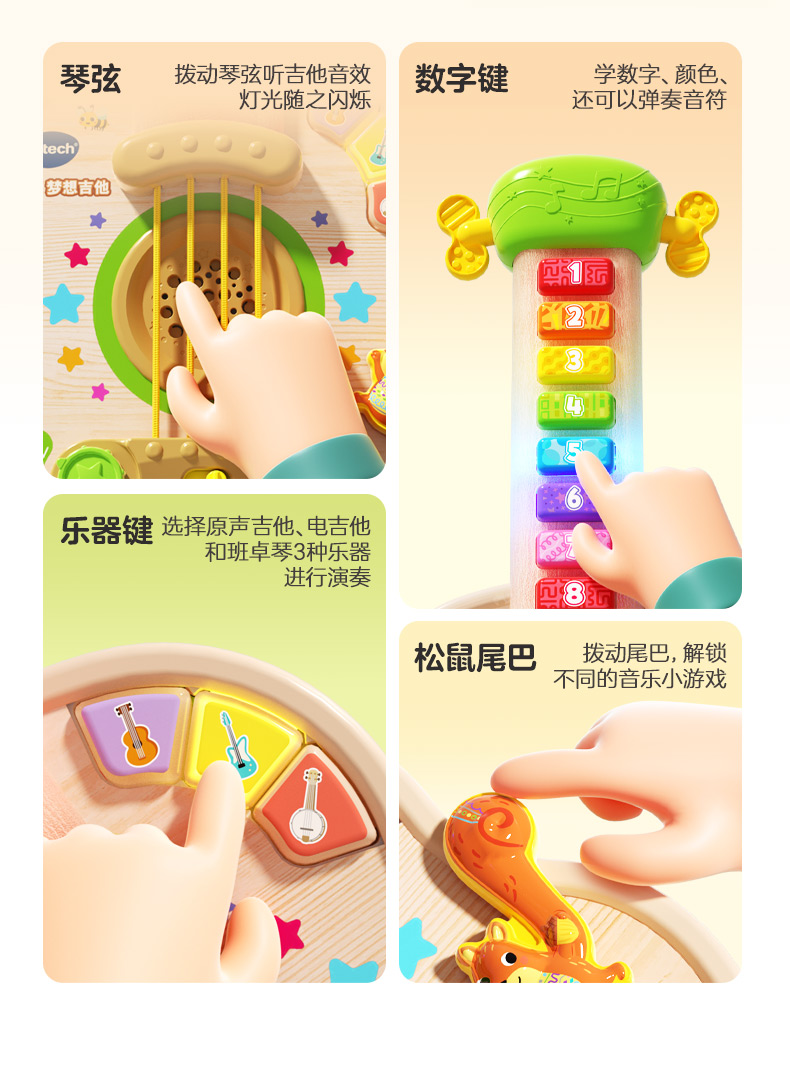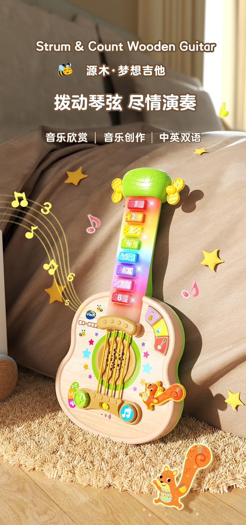 新品伟易达源木梦想吉他儿童乐器启蒙早教电子琴音乐益智玩具吉他