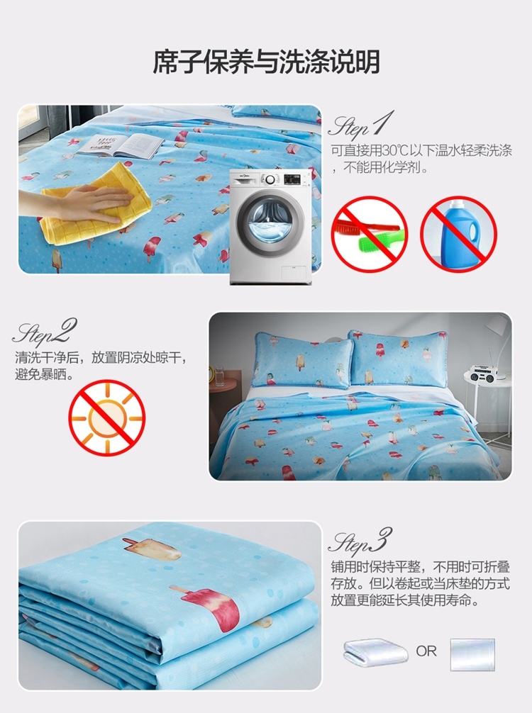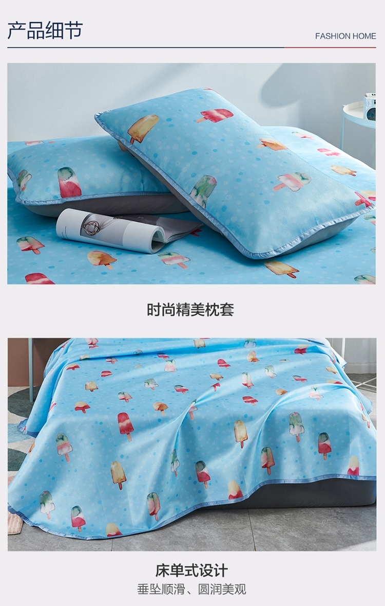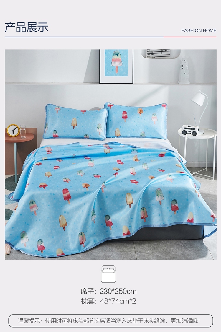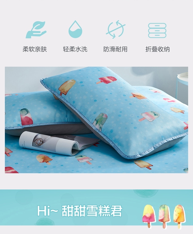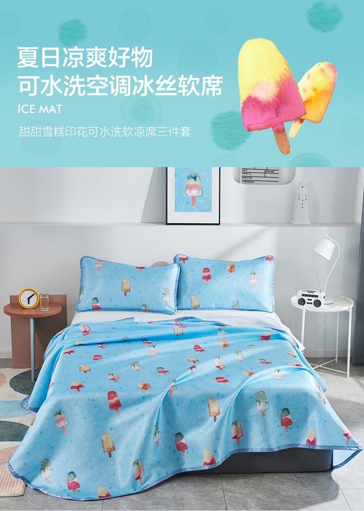 罗莱LOVO印花可水洗软凉席三件套甜甜雪糕VGW327