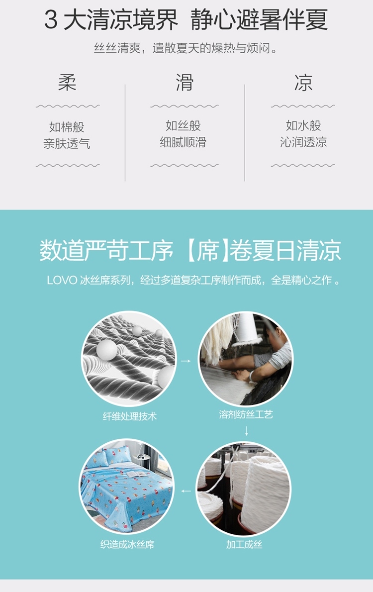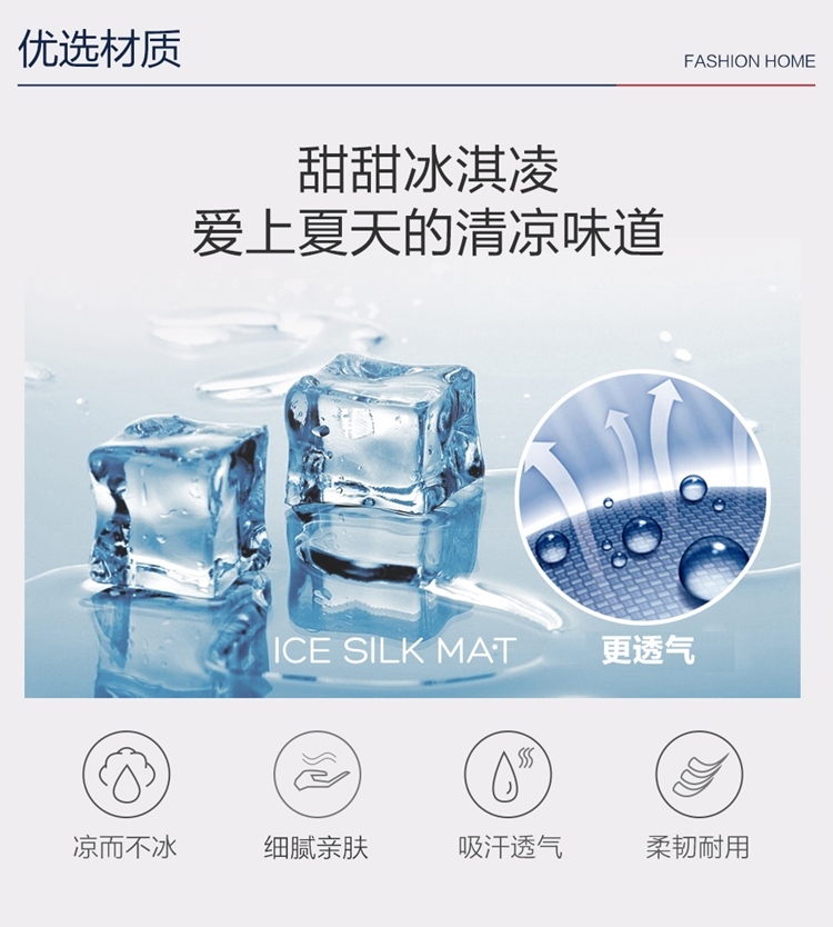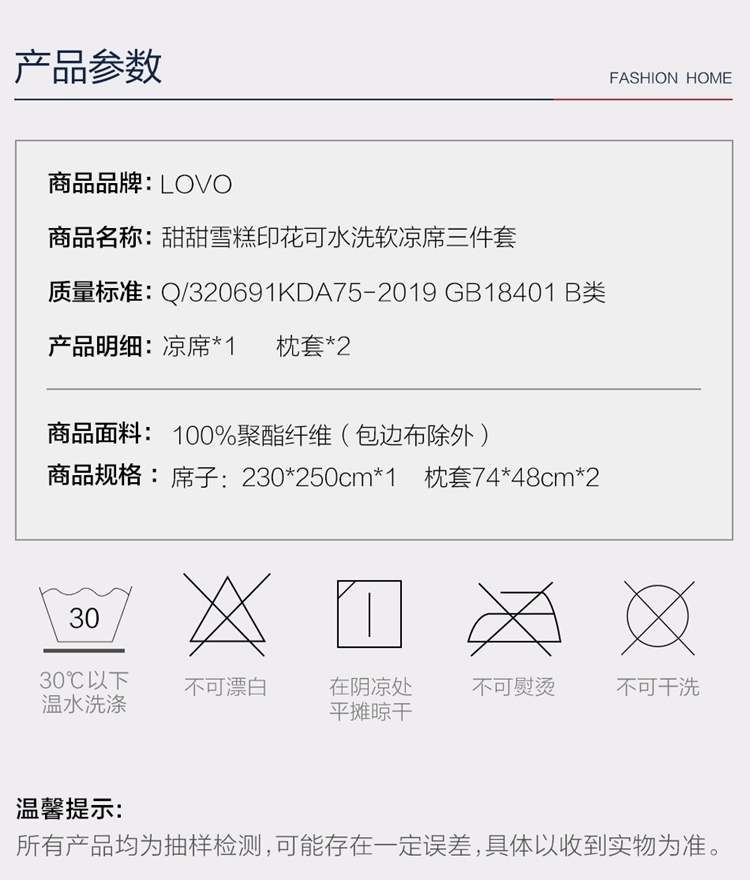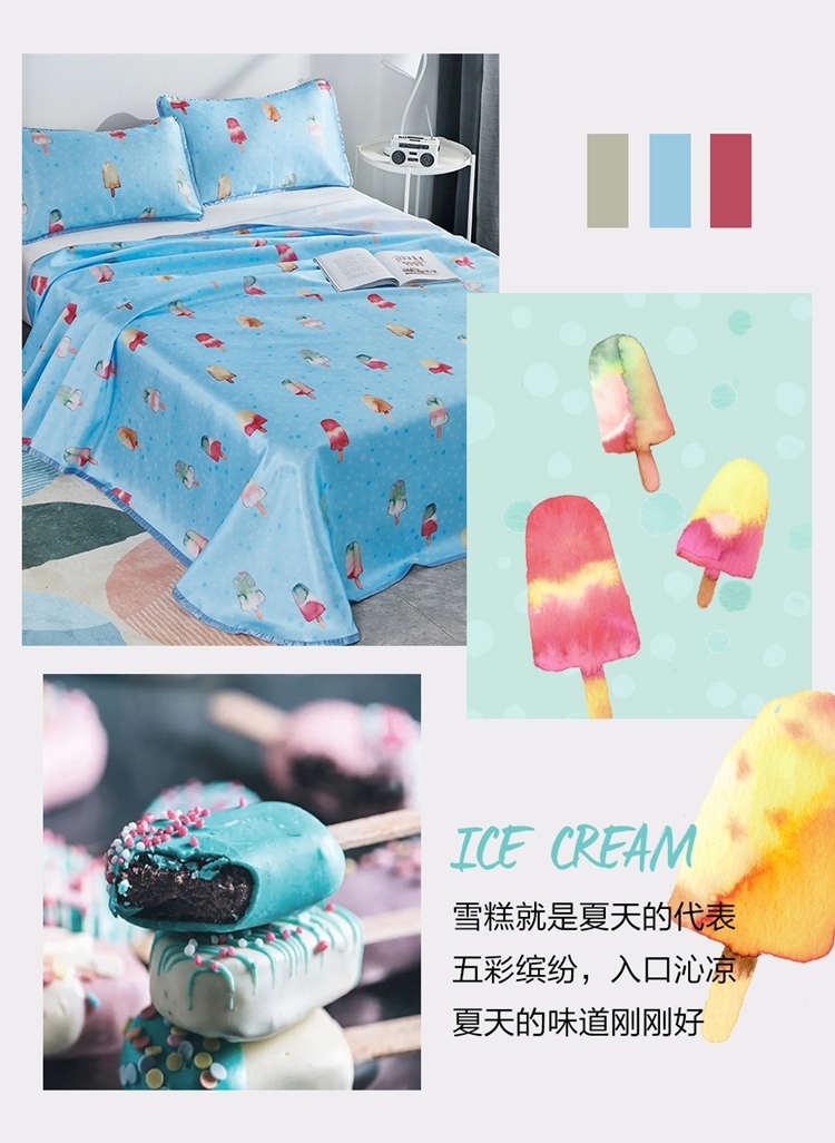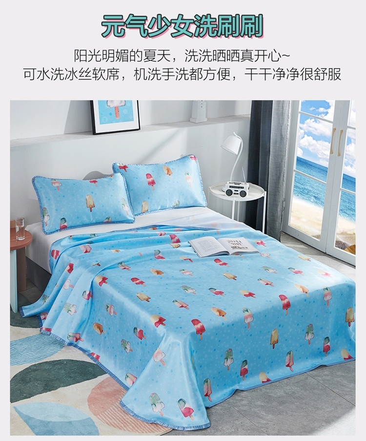 罗莱LOVO印花可水洗软凉席三件套甜甜雪糕VGW327