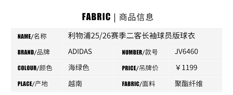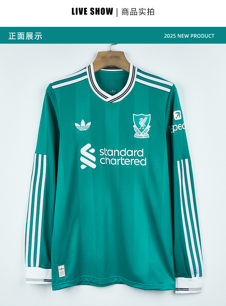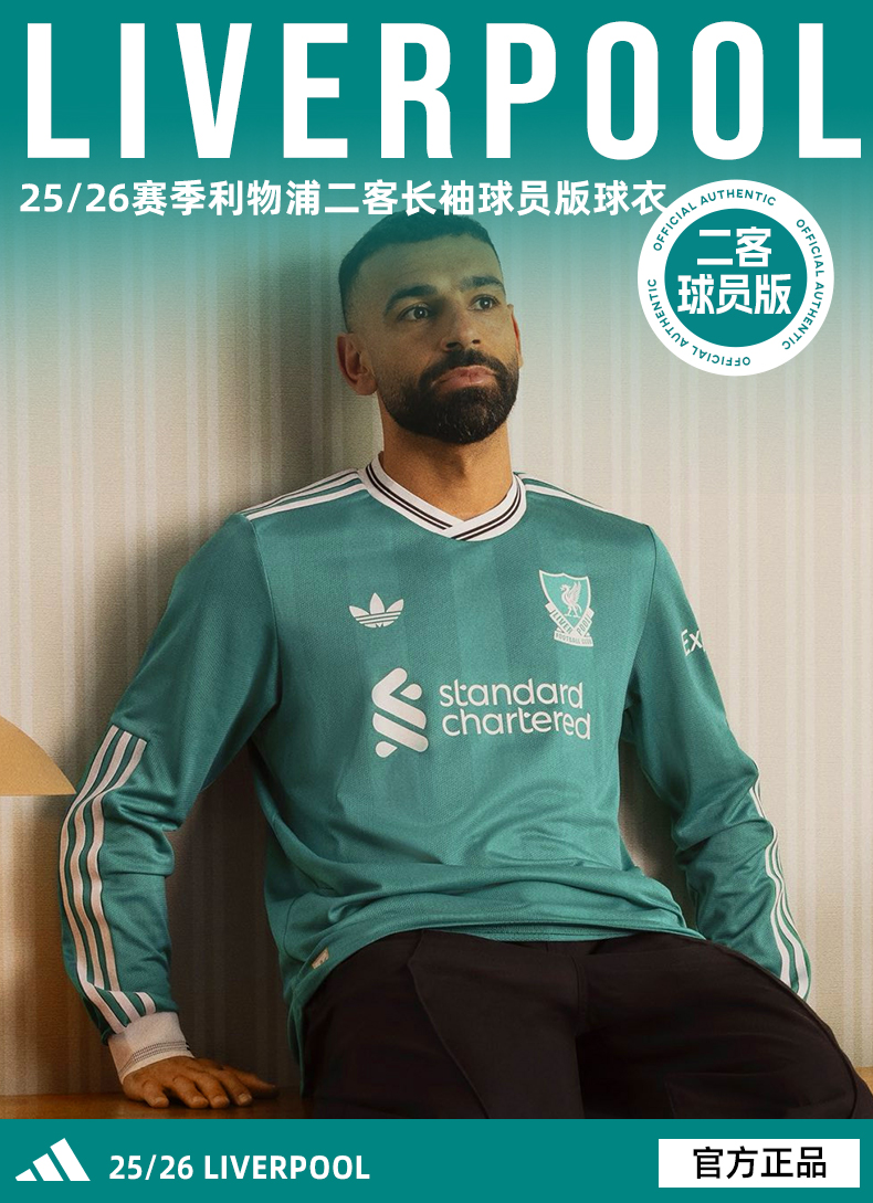 SFS Adidas阿迪达斯25/26赛季利物浦三叶草二客长袖球员版球衣JV6460