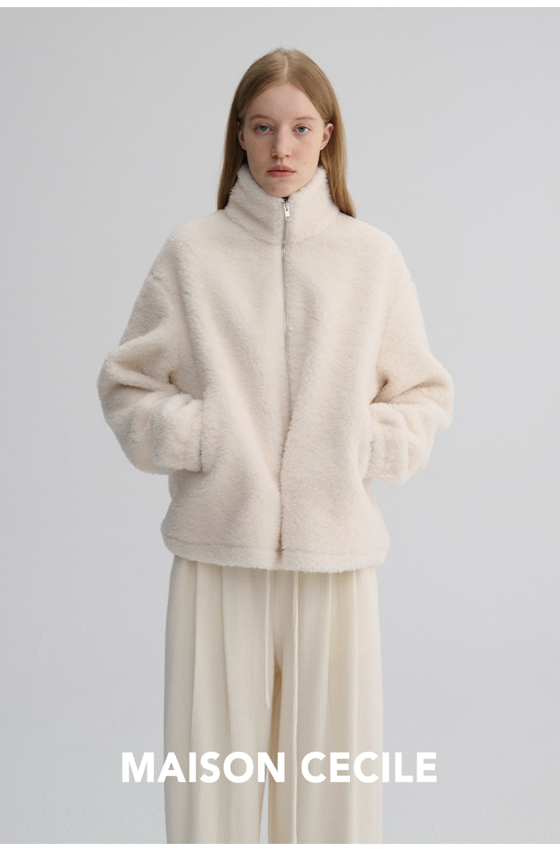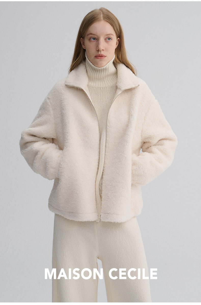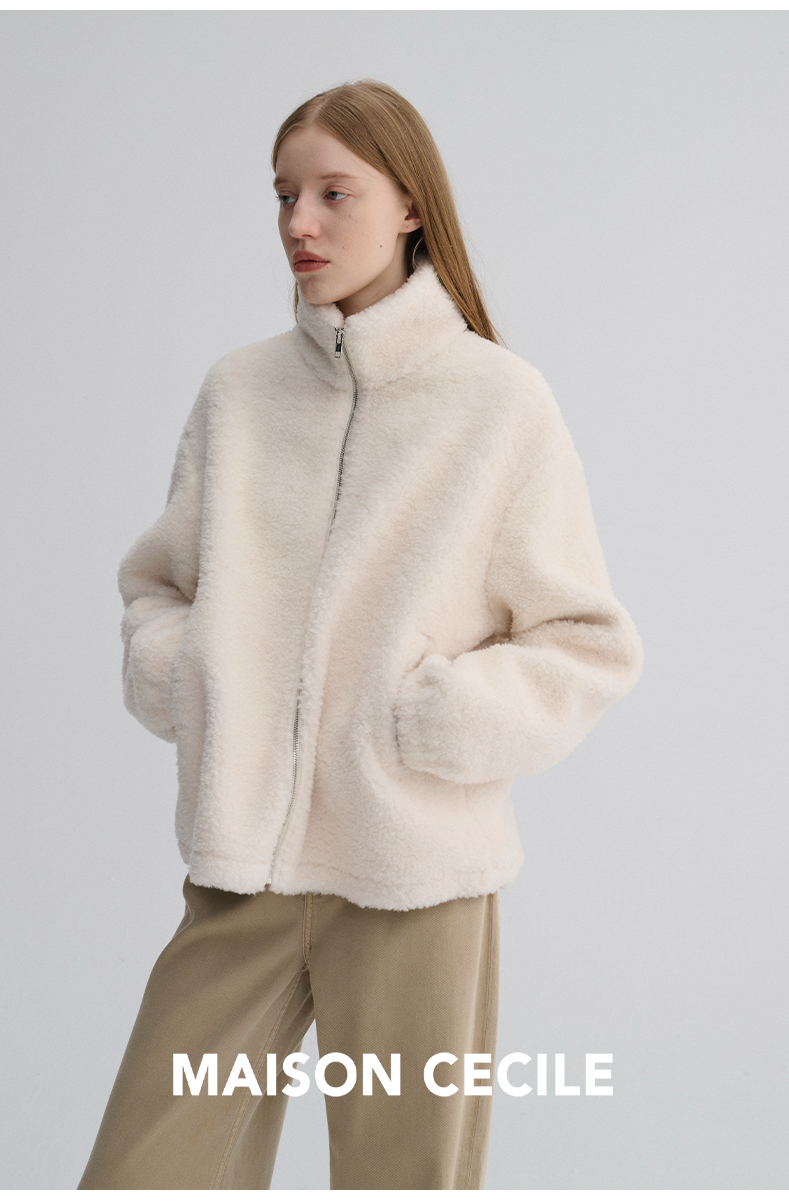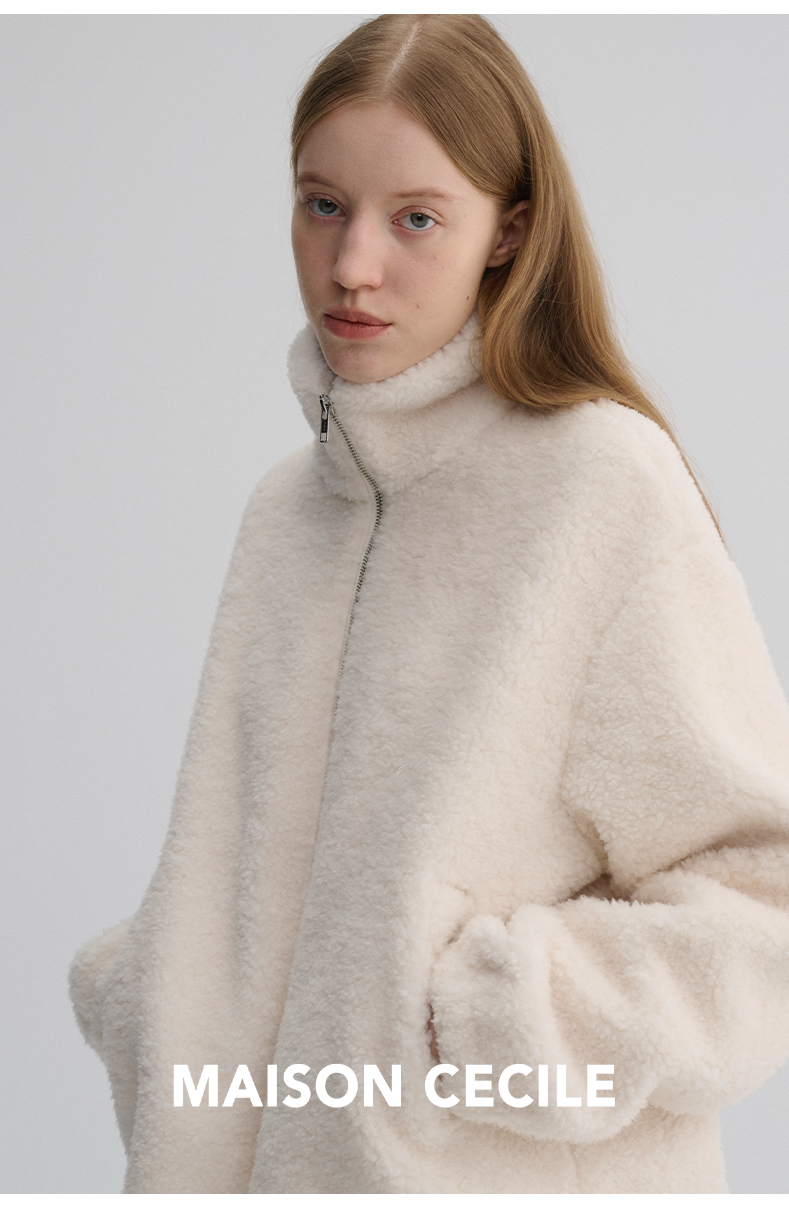 MAISON CECILE 重磅颗粒羊毛厚实软糯保暖廓形百搭翻领拉链外套