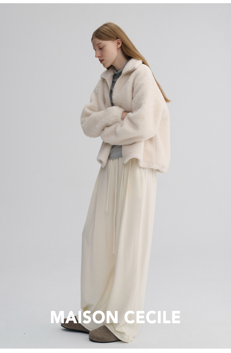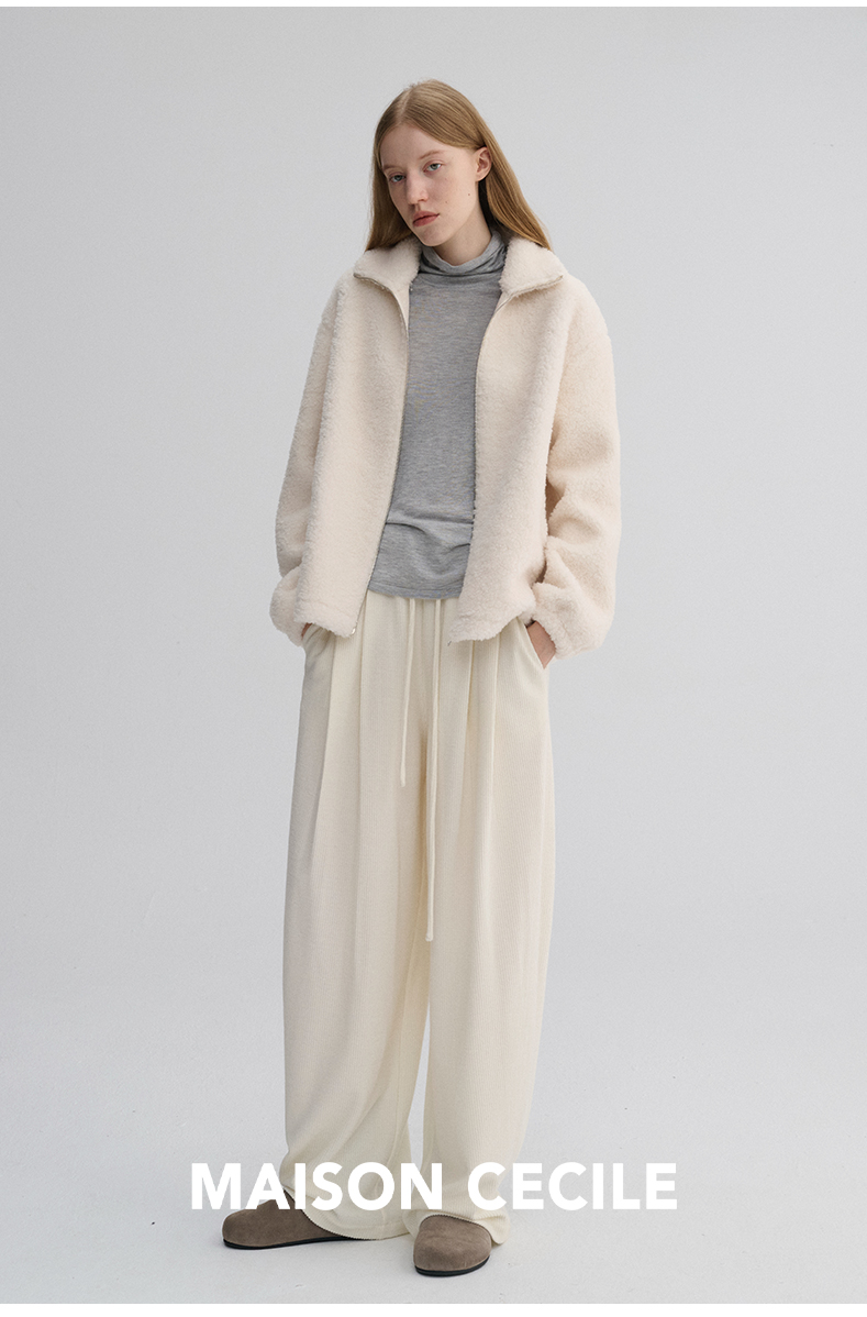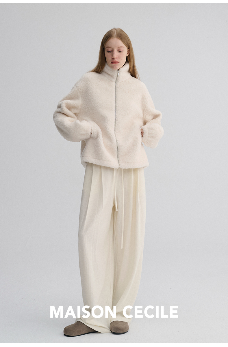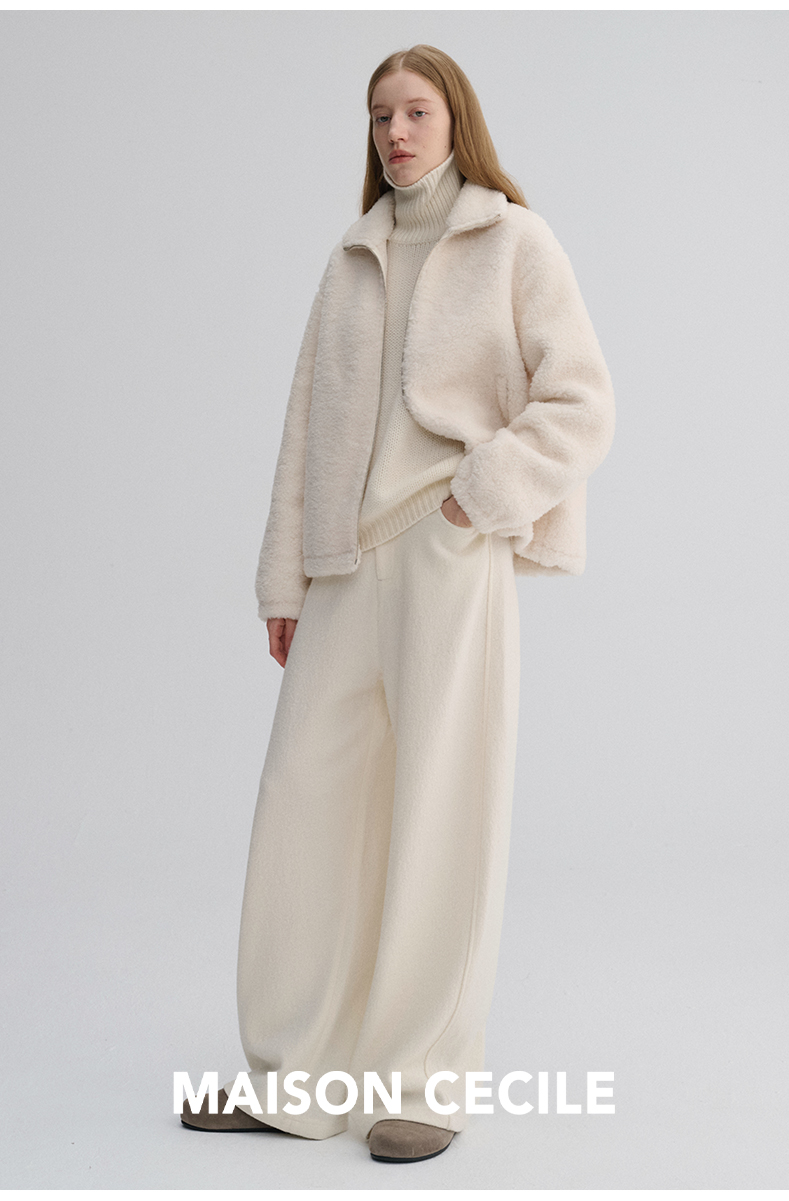 MAISON CECILE 重磅颗粒羊毛厚实软糯保暖廓形百搭翻领拉链外套