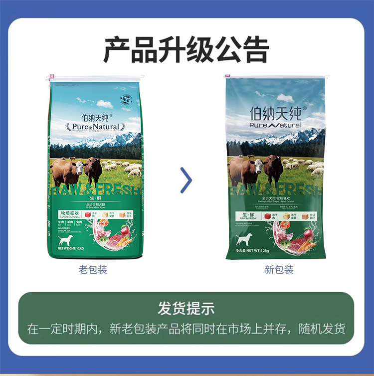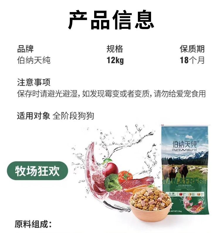 【正品】伯纳天纯牧场狂欢全价全期犬粮12kg牛肉羊肉兔肉冻干生鲜狗粮24斤