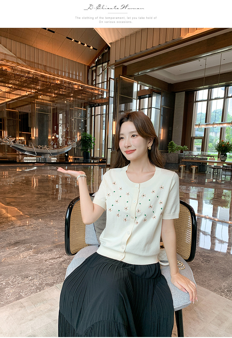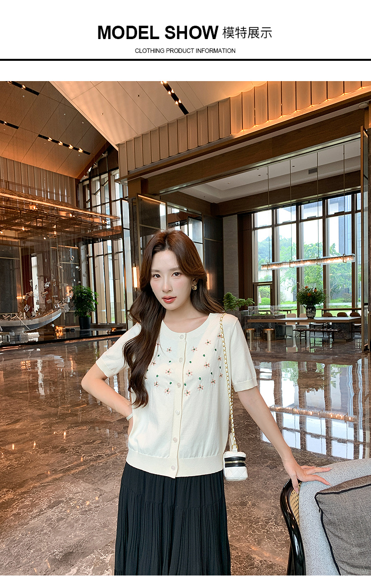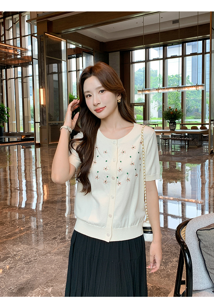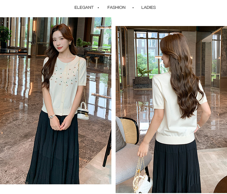 奢姿大码女装2025夏季减龄绣花图案时尚针织衫胖妹妹圆领百搭上衣9652621788