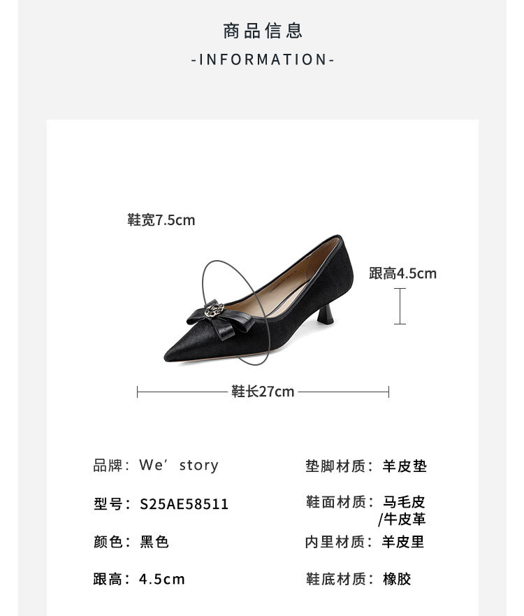Westory2025年春季猫跟尖头通勤百搭浅口单鞋S25AE58511