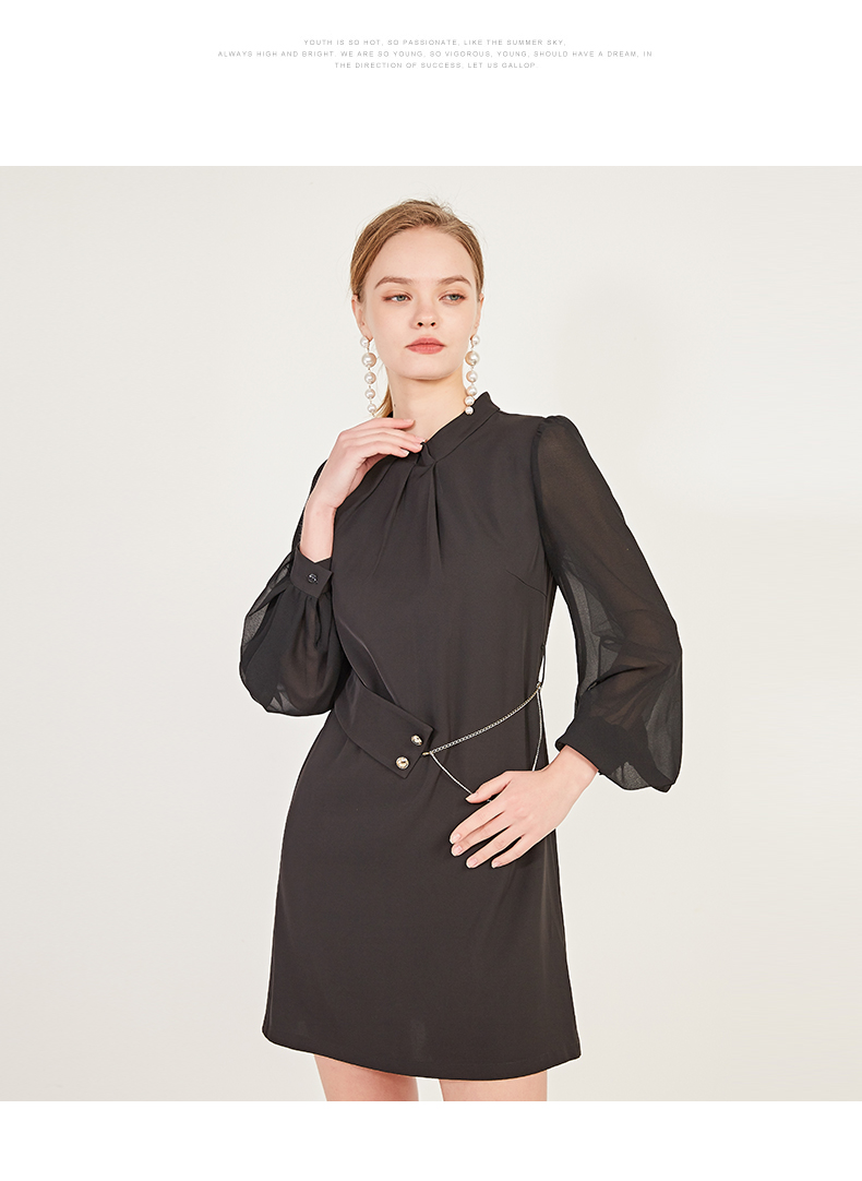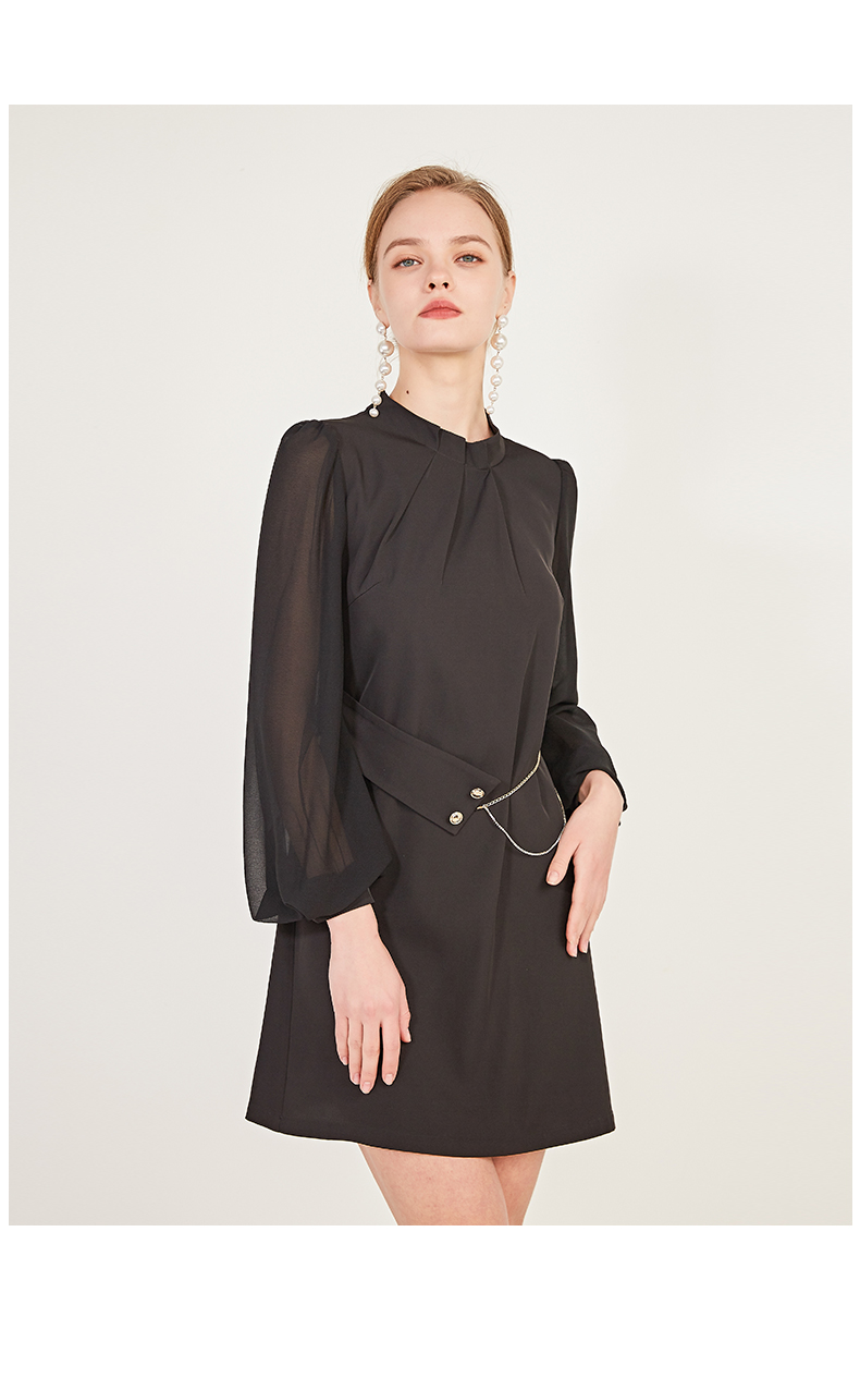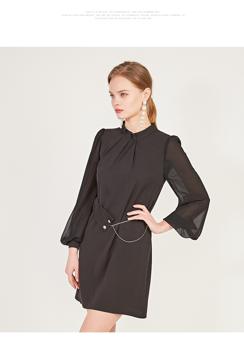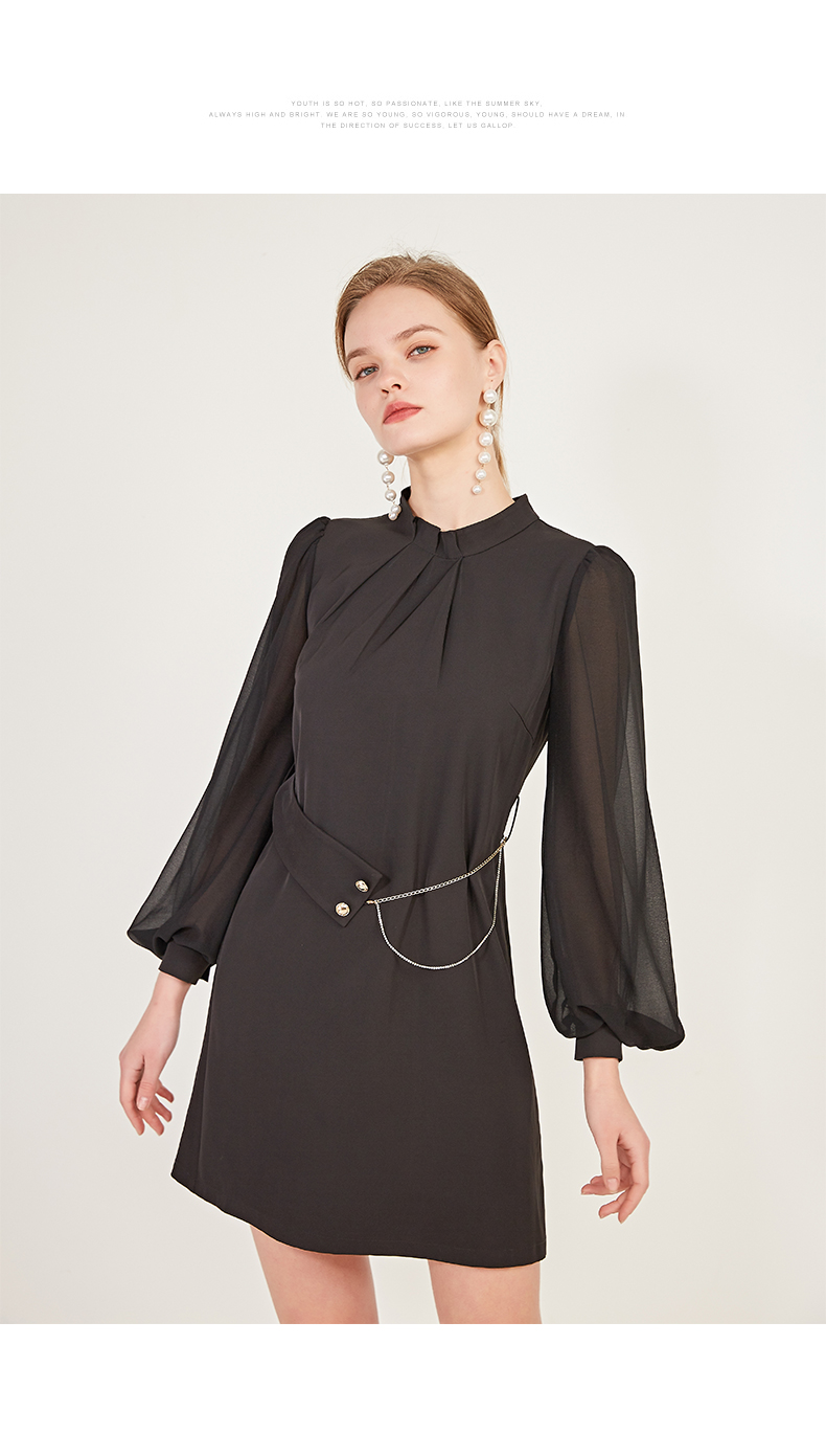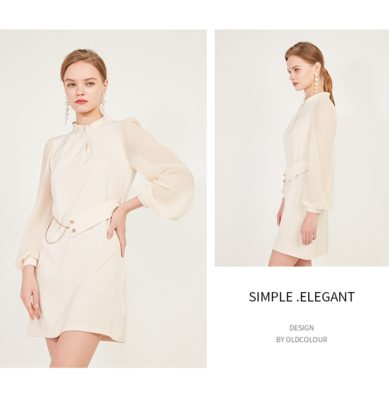 oldcolour春季新款灯笼袖高贵气质设计感长袖连衣裙N11103174