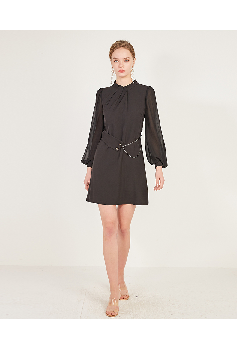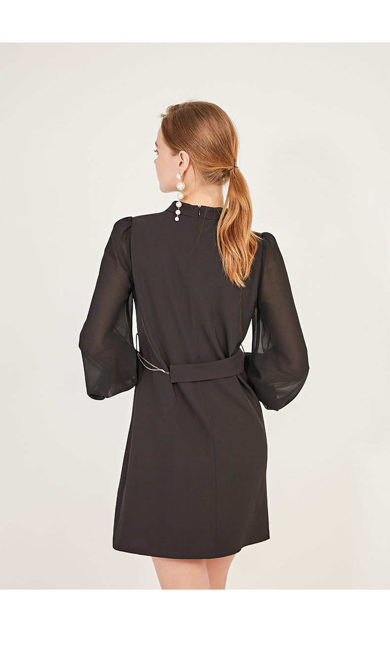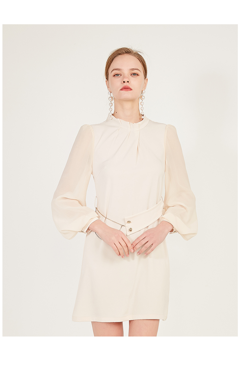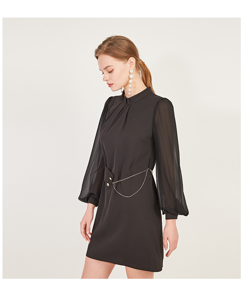 oldcolour春季新款灯笼袖高贵气质设计感长袖连衣裙N11103174