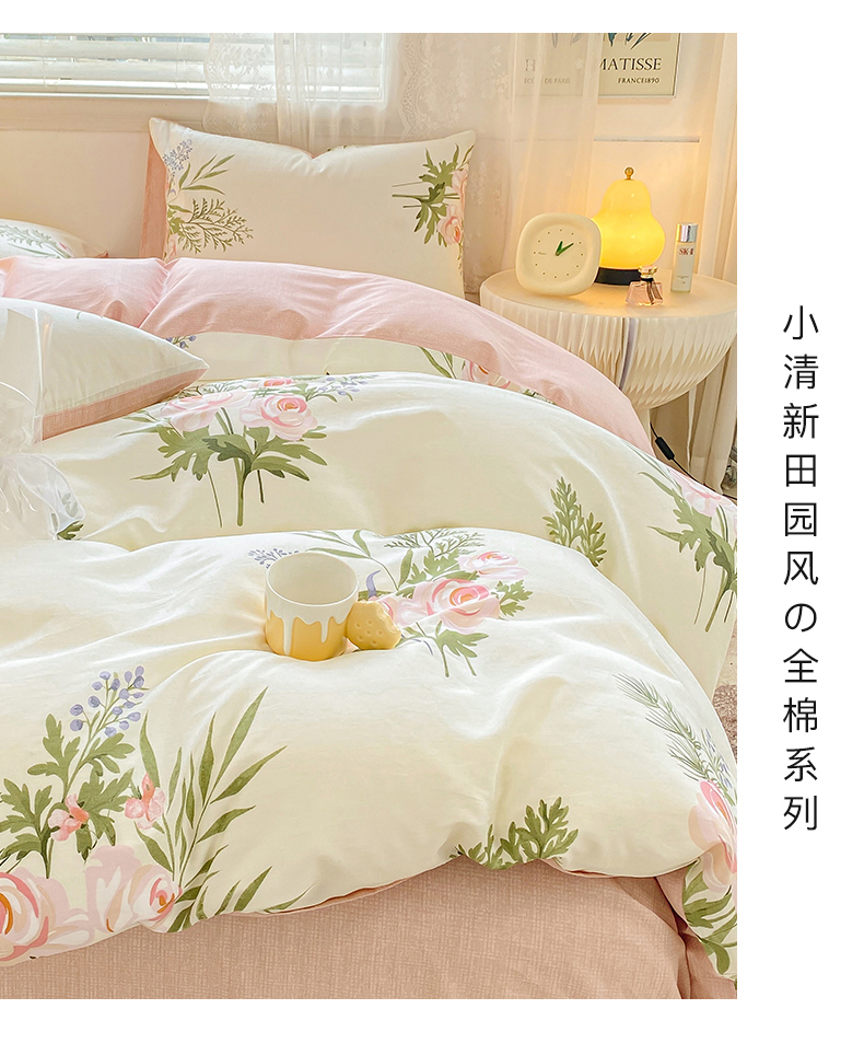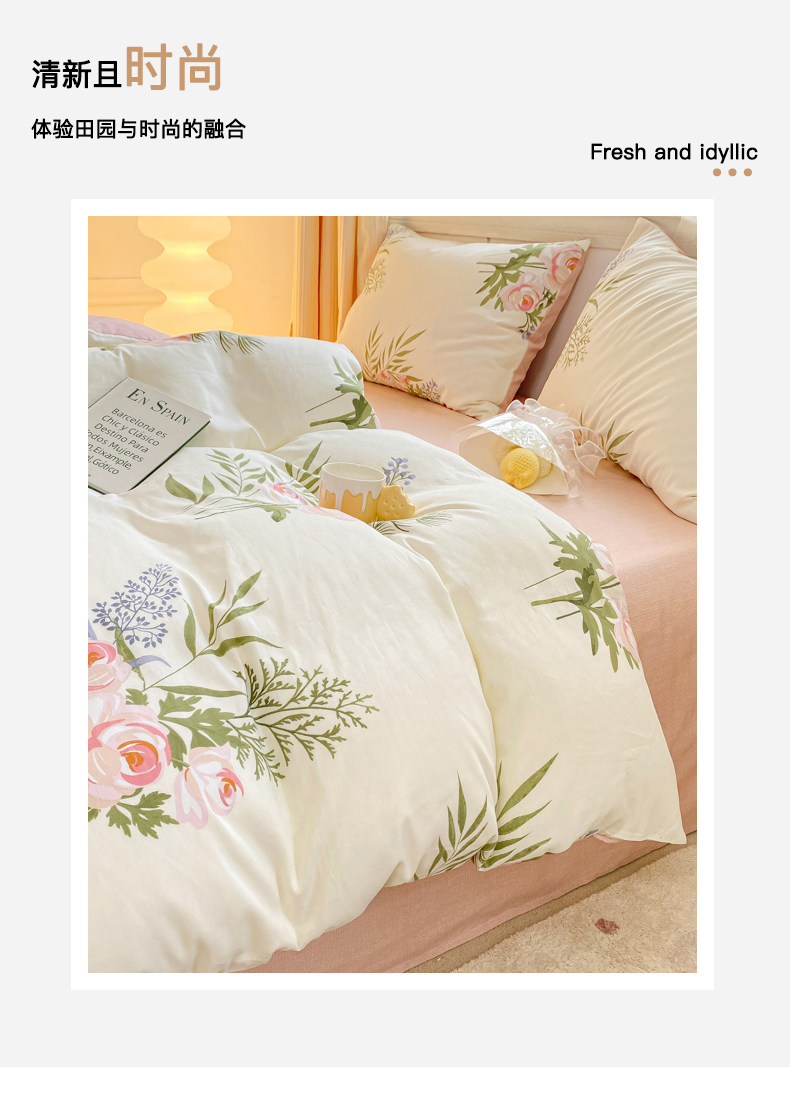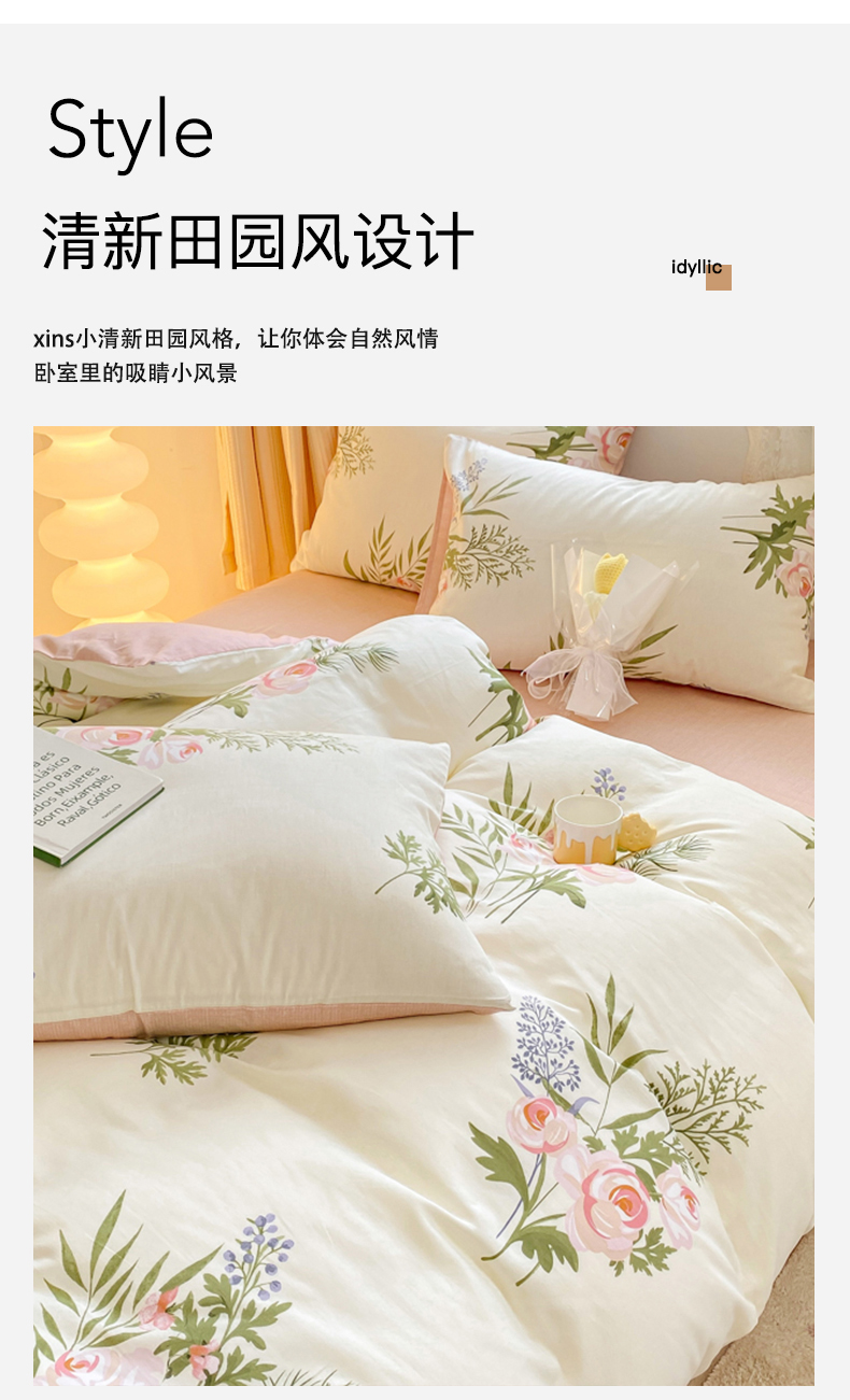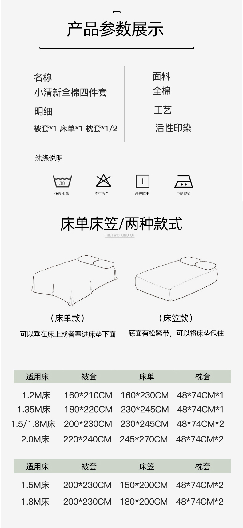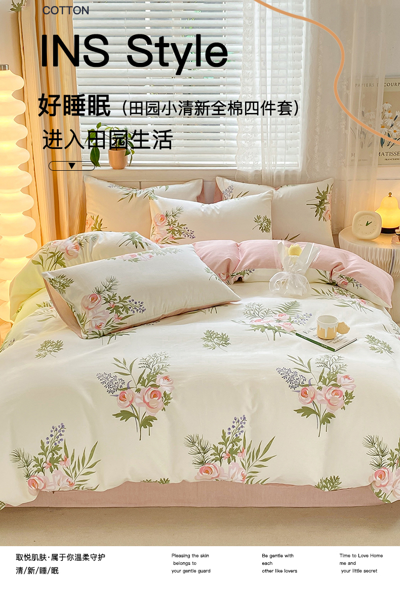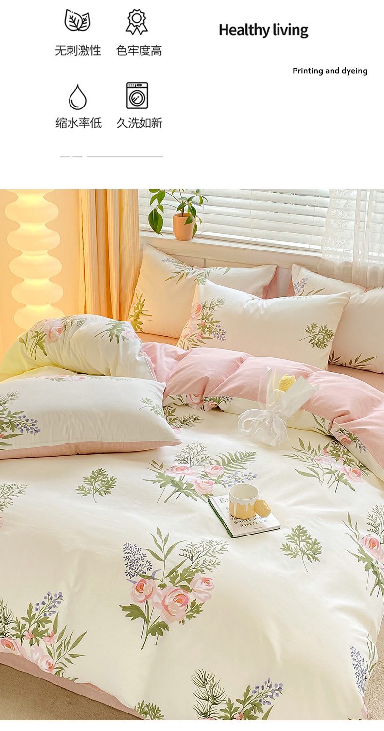 全棉印花AB版清新印花风格纯棉学生宿舍三/四件套床上用品可机洗