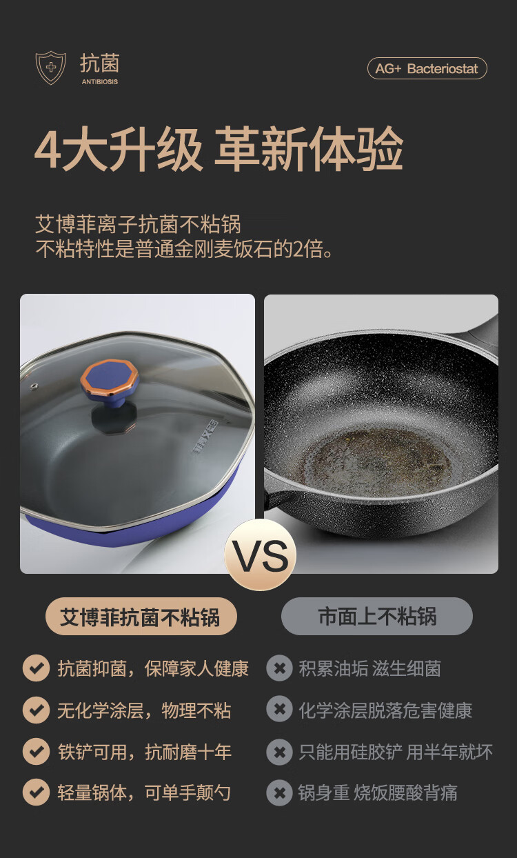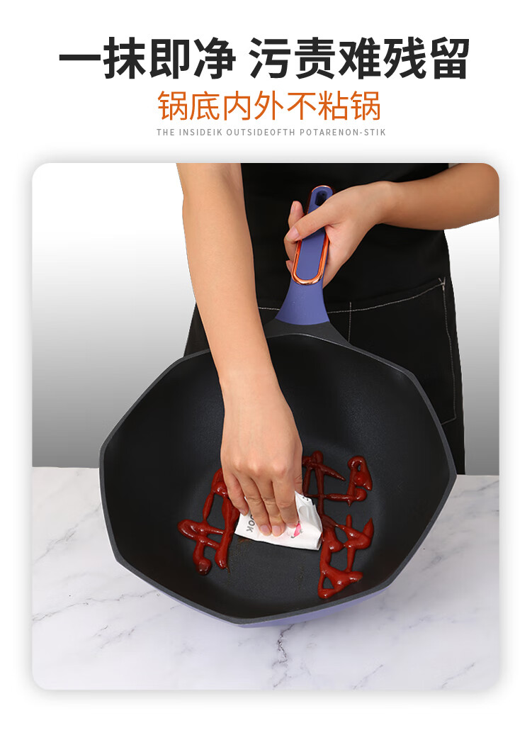 艾博菲八角不粘炒锅带可视化玻璃盖 紫色