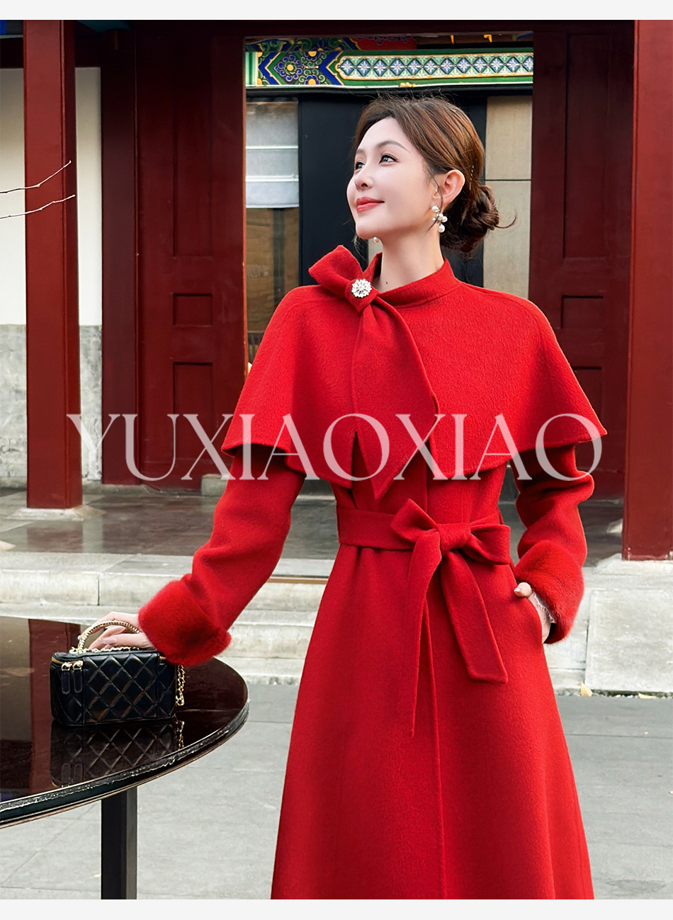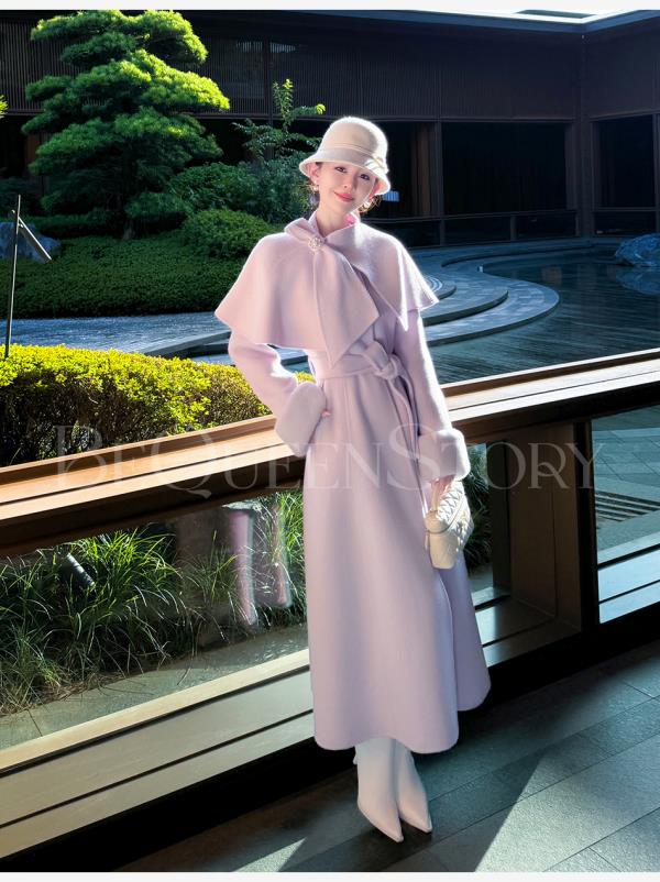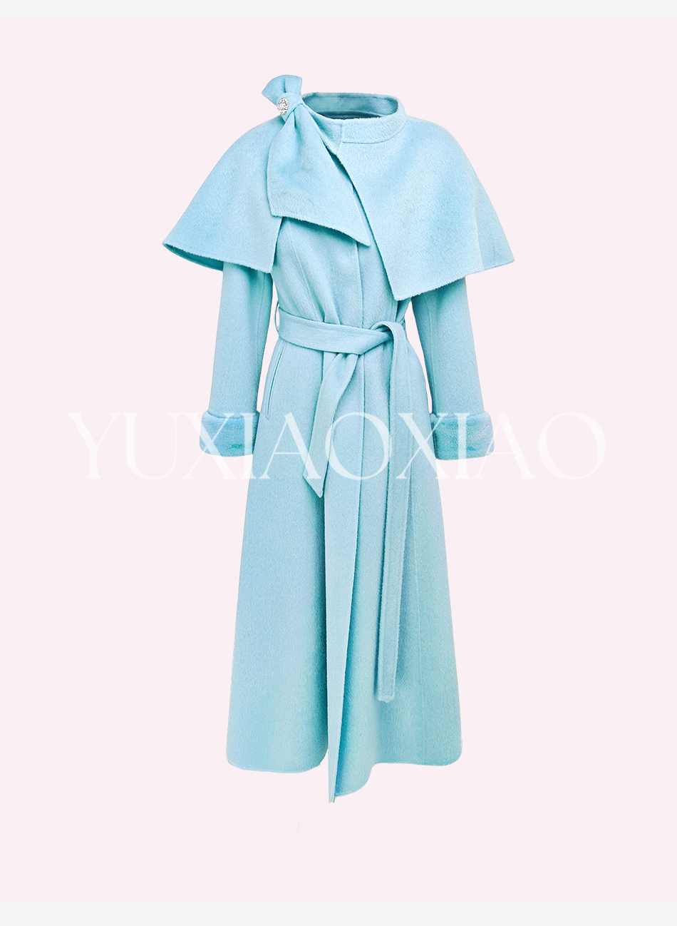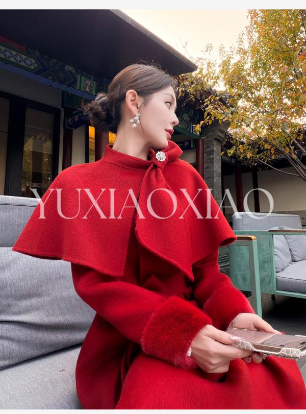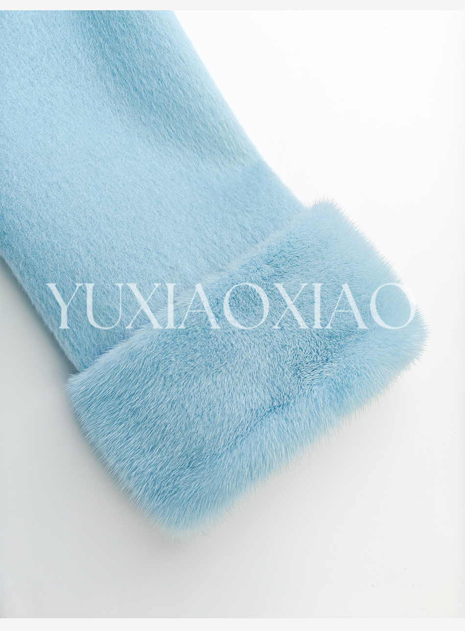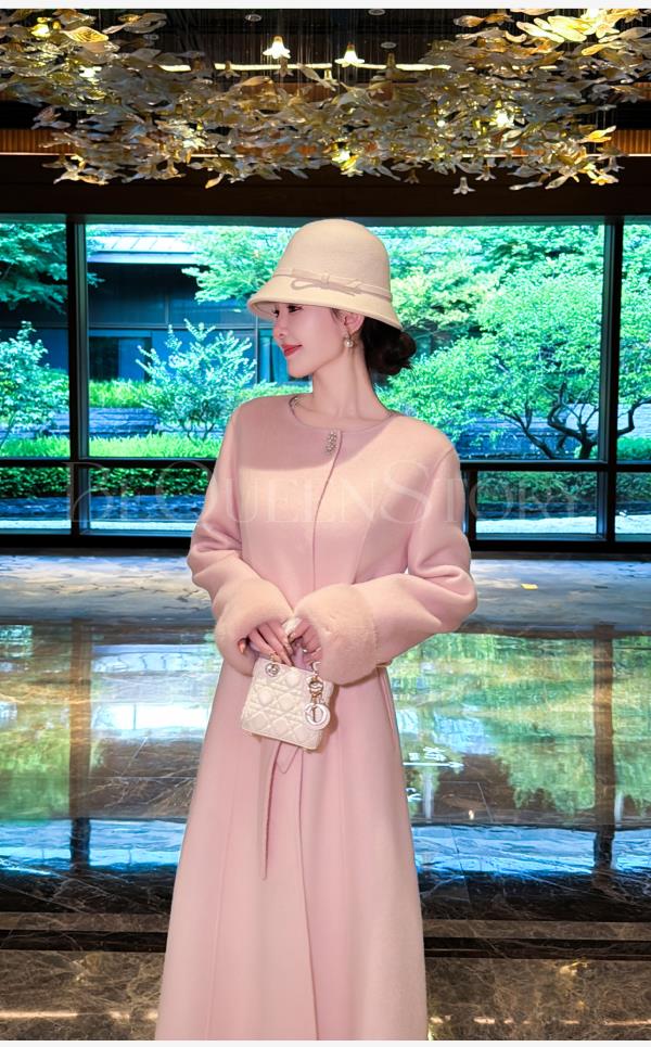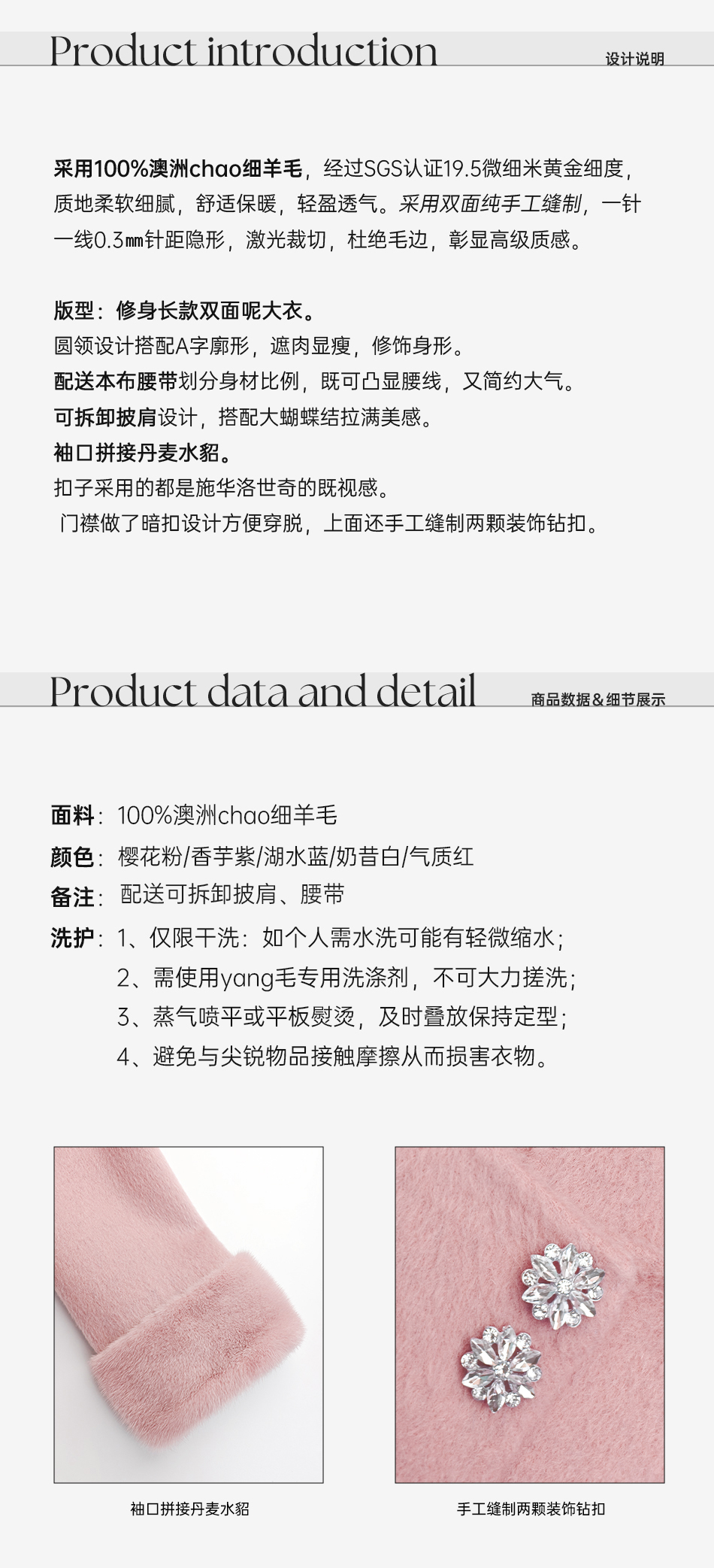 余潇潇【伊莎贝尔礼赞】轻奢100绵羊毛拼接水貂毛袖口A字双面呢大衣