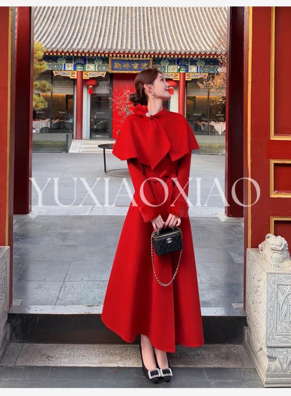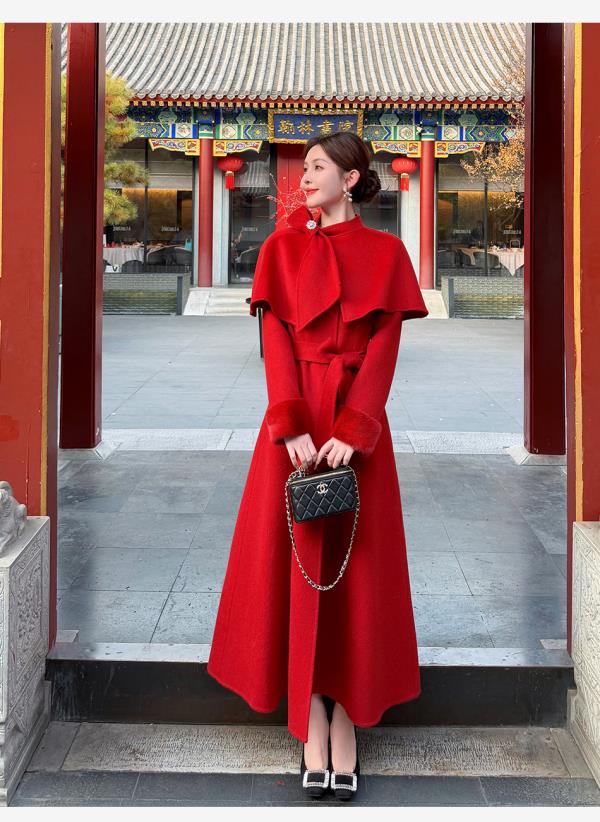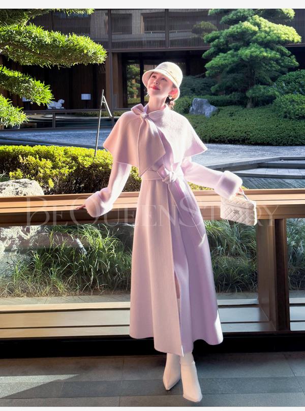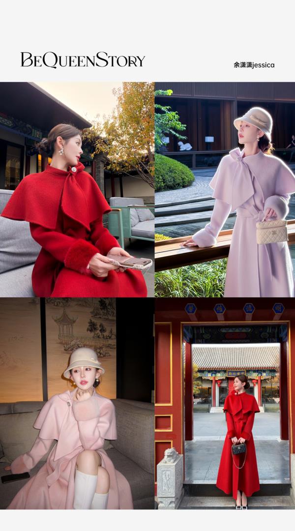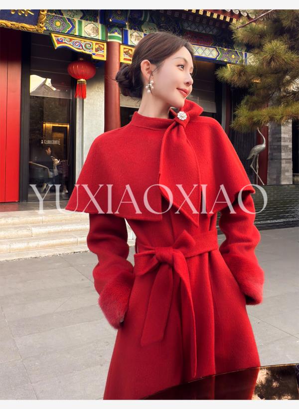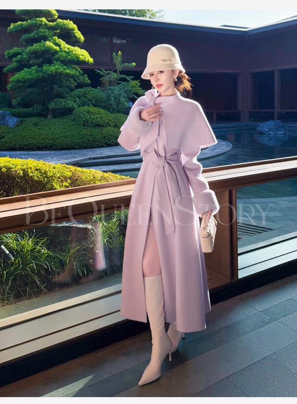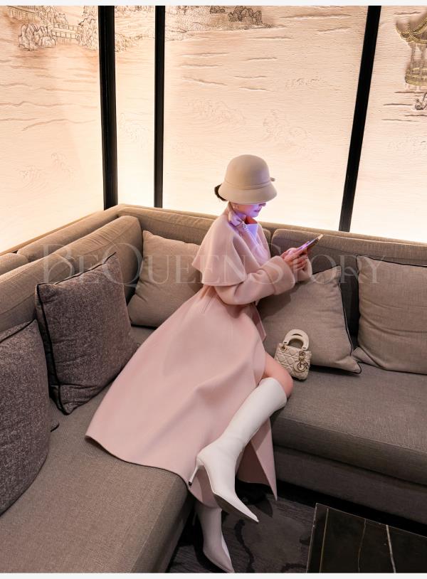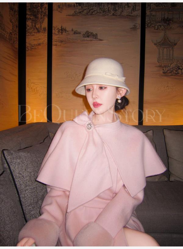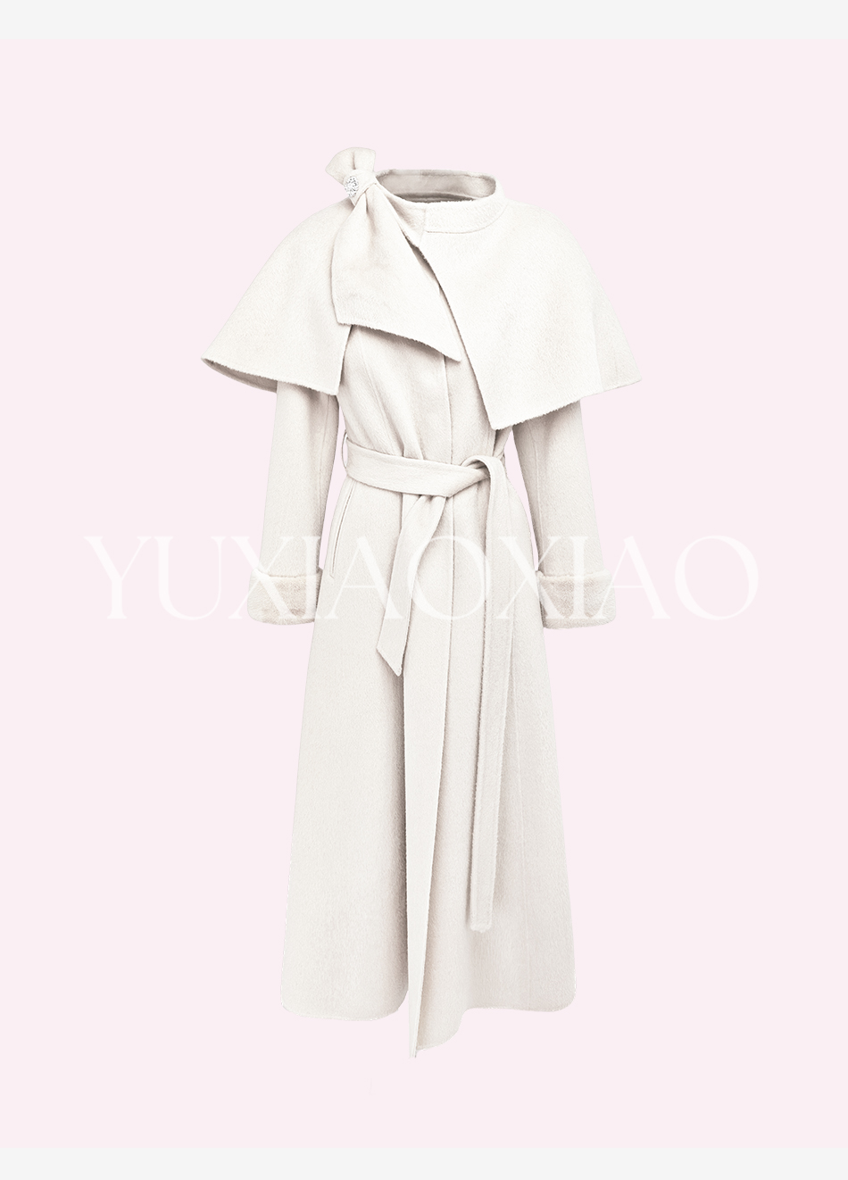 余潇潇【伊莎贝尔礼赞】轻奢100绵羊毛拼接水貂毛袖口A字双面呢大衣
